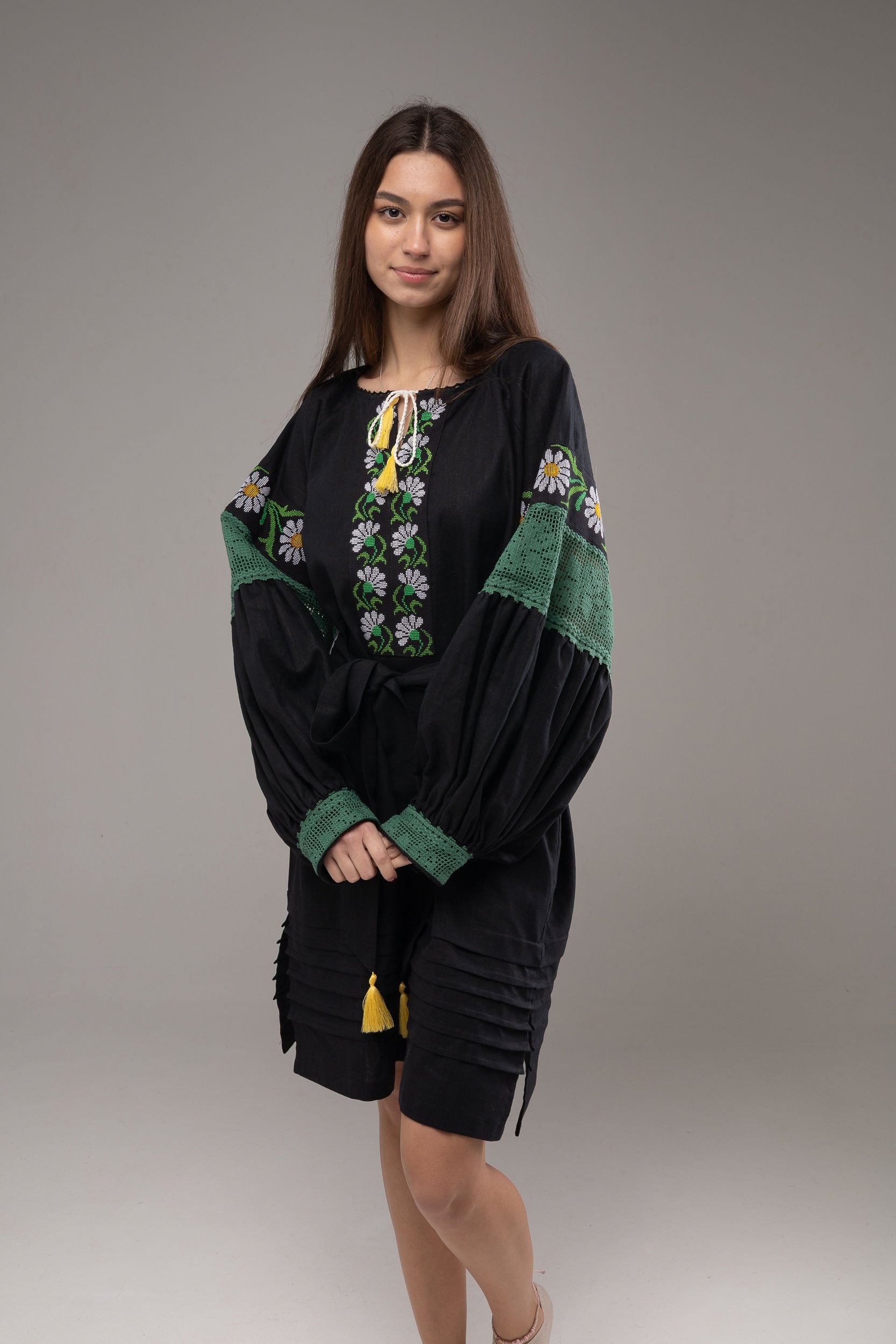 この作品は、ウクライナの伝統と美しさを象徴するヴィシヴァンカの刺繍を採用しています。過度な派手さを追求せず、日本の日常生活に自然に溶け込むデザインとなっております。しかし、それでいて洗練された高級感とカジュアルな雰囲気を両立させ、見る人を魅了する一着となっています。