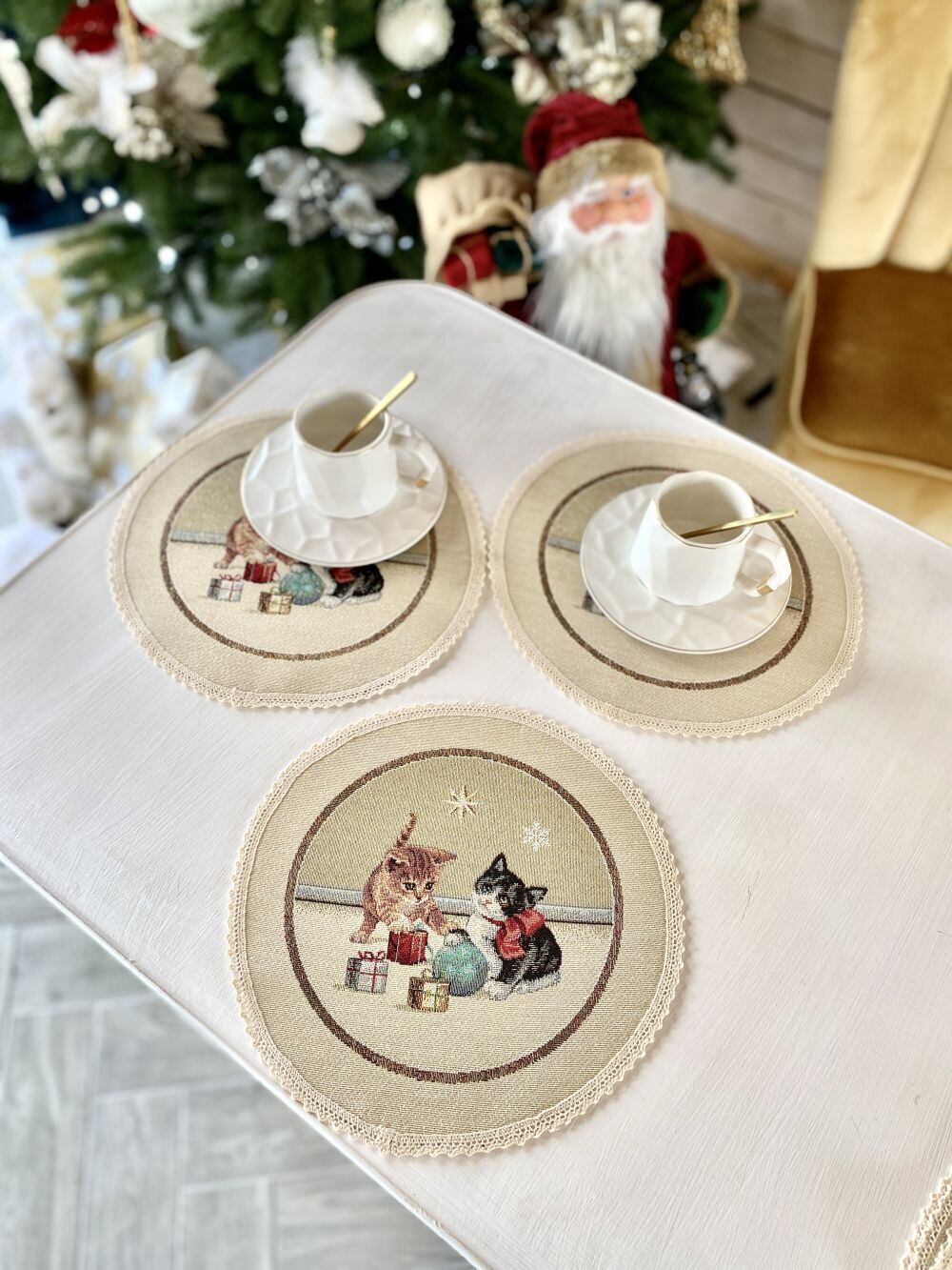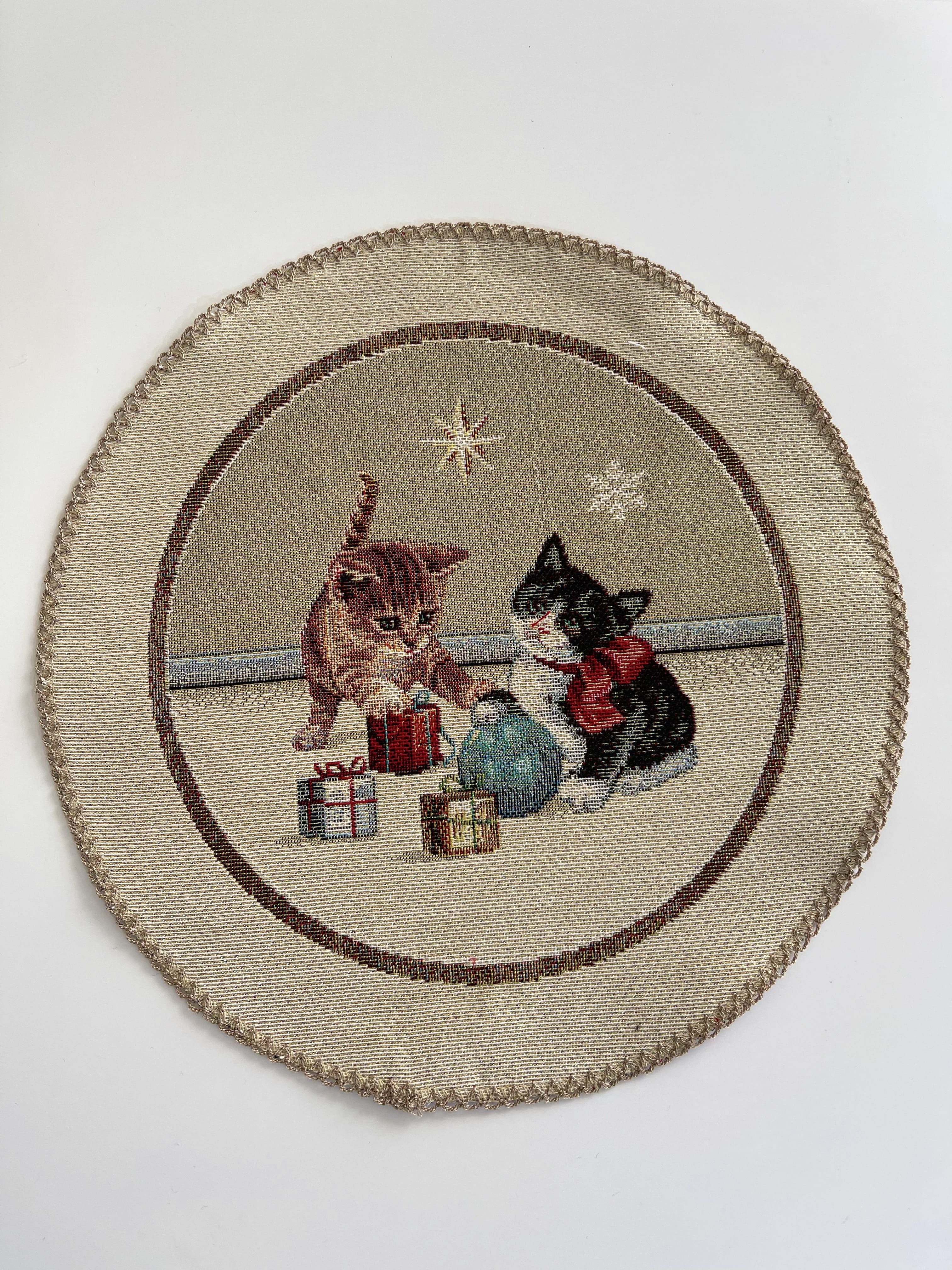 タペストリーラウンドマット25cmウクライナ製 猫
