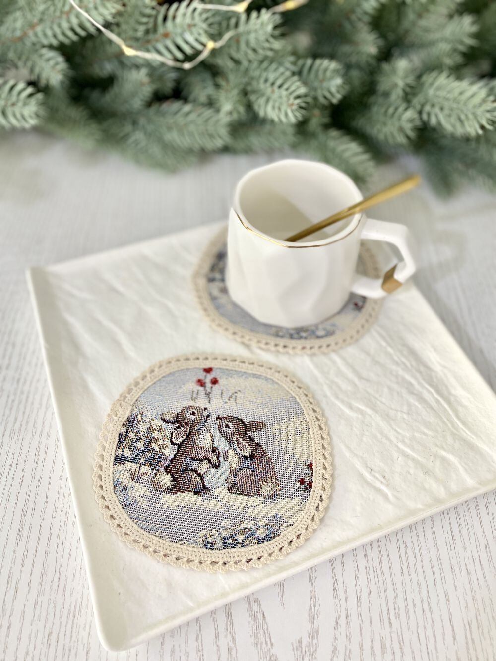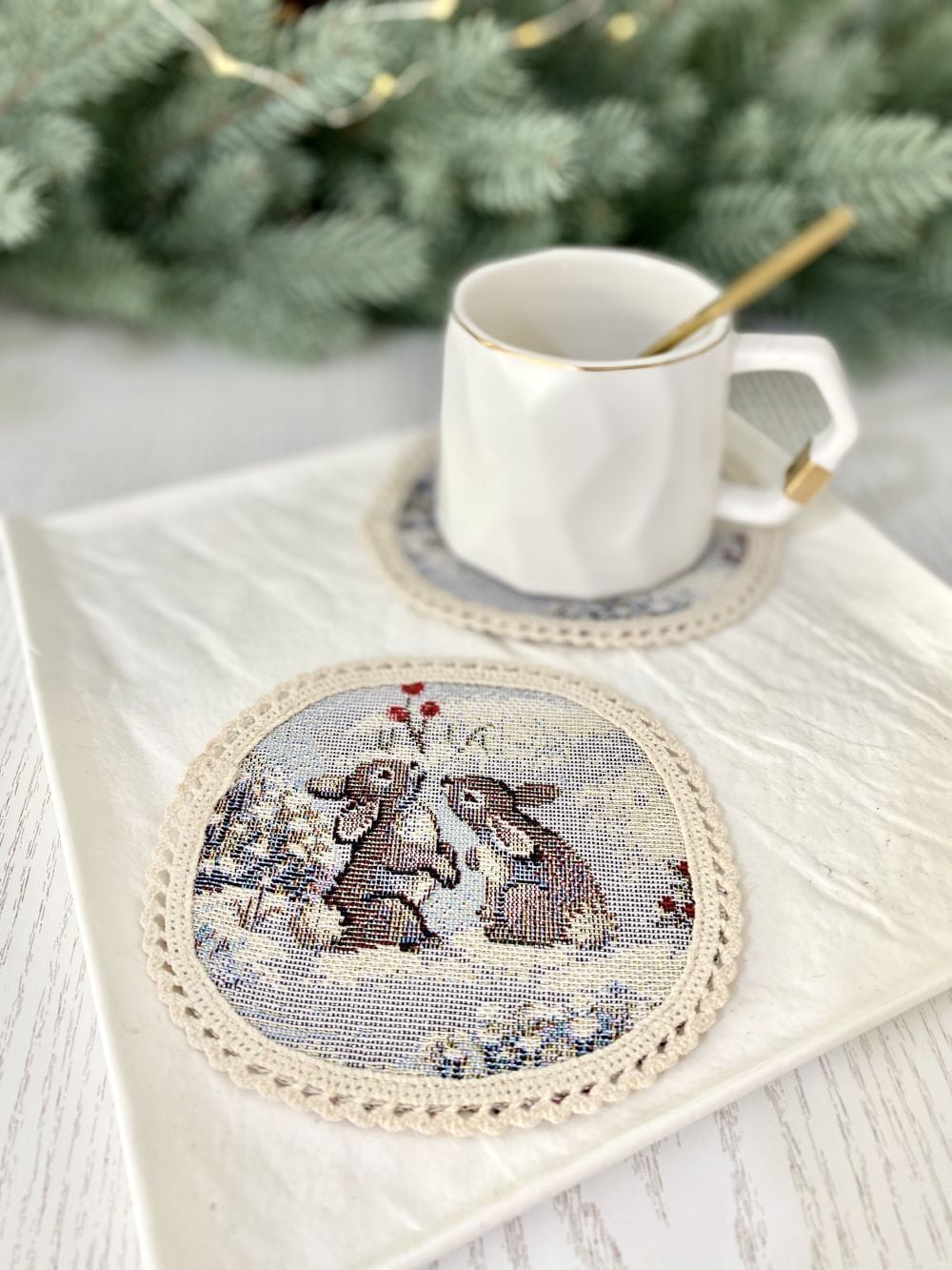 タペストリーラウンドコースター 10cm ウクライナ製 うさぎ