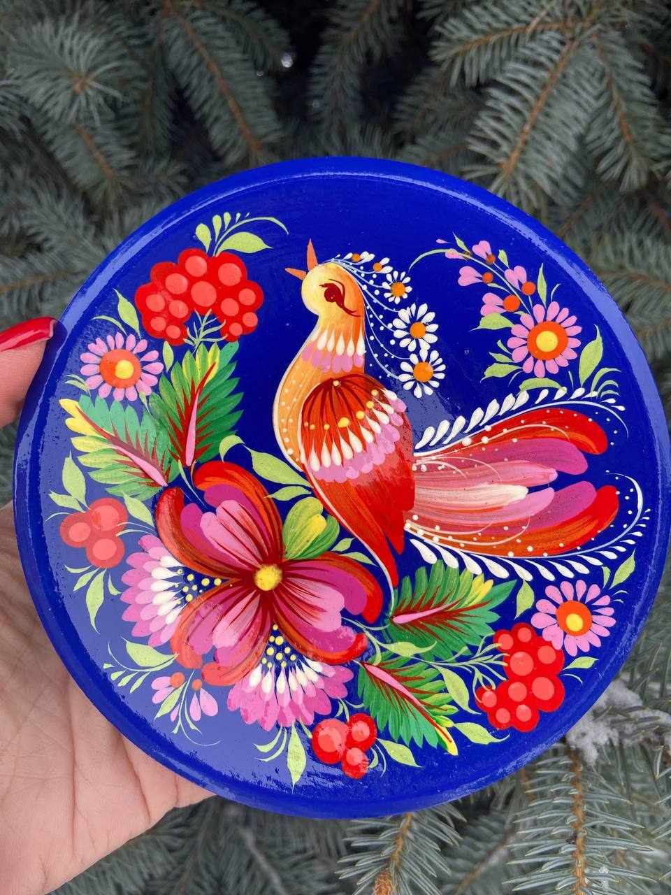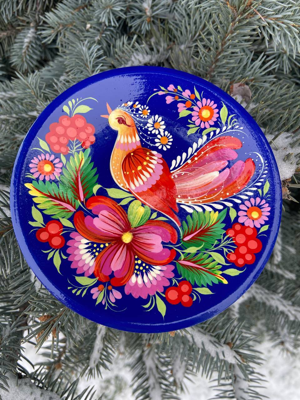 ペトリキウカ塗りのプレート(ティモシェンコ作)13cm