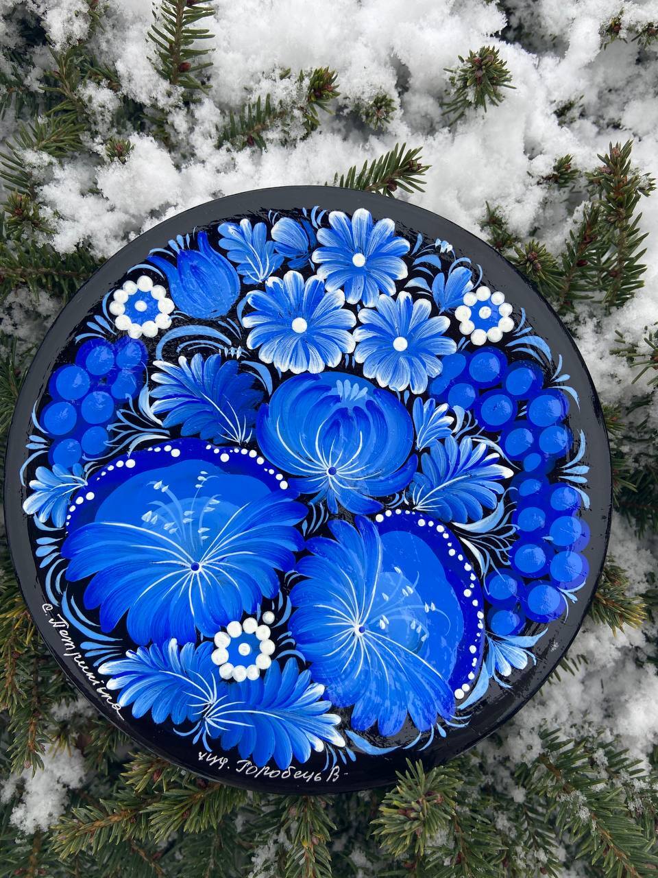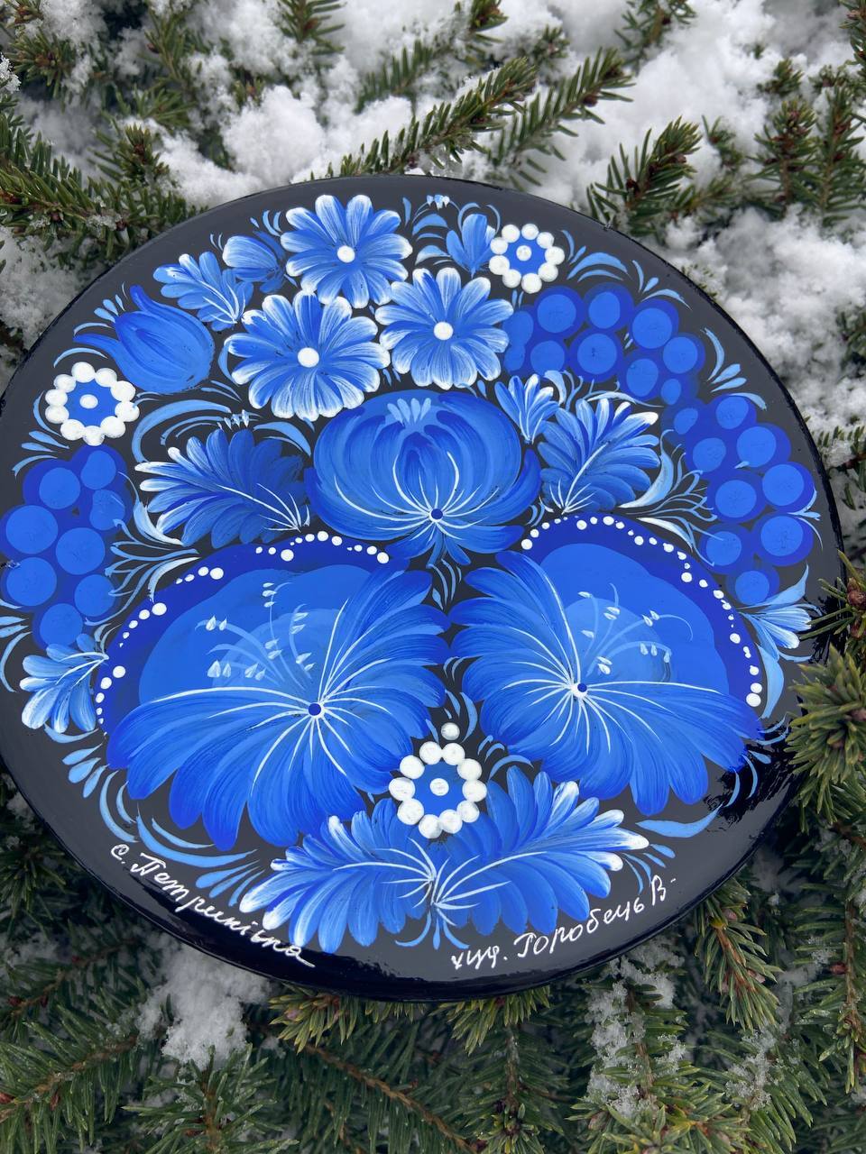 詳細:ペトリキフカ・プレートは、ウクライナの伝統的な芸術、ペトリキフカ塗りの精粋を表現する逸品です。この芸術は、ドニプロ近郊のペトリキフカ村にてユネスコ無形文化遺産登録の際にウクライナ国家名誉職人として任命されたホロベッツによって描かれています。