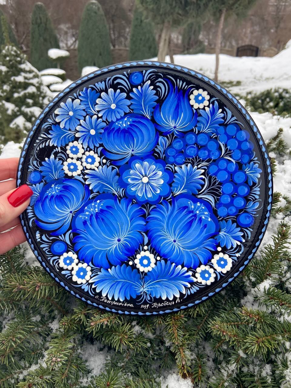 詳細:ペトリキフカ・プレートは、ウクライナの伝統的な芸術、ペトリキフカ塗りの精粋を表現する逸品です。この芸術は、ドニプロ近郊のペトリキフカ村にてユネスコ無形文化遺産登録の際にウクライナ国家名誉職人として任命されたヴァレンティナ・ホロベッツによって描かれています。