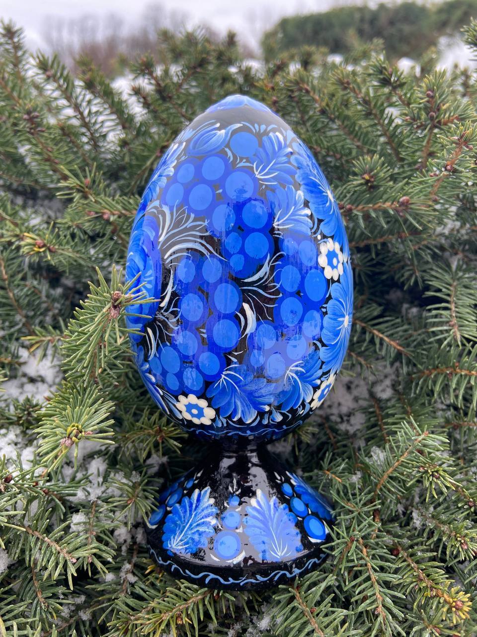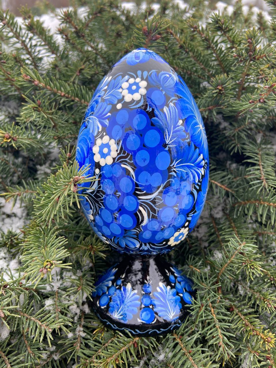 当店のプィサンカは、ウクライナのドニプロに位置するペトリキフカ村で、熟練の職人によってハンドペイントで制作されたイースターエッグです。スタンド付きでシーンを選ばずすぐに飾ることが可能です。