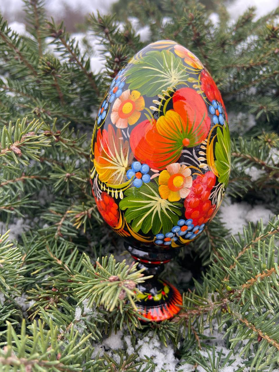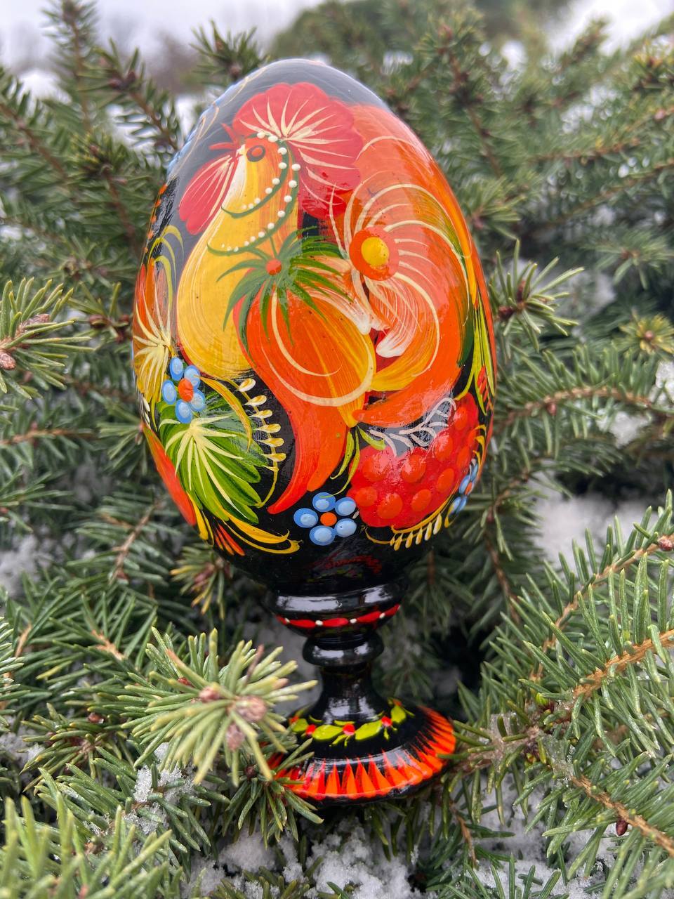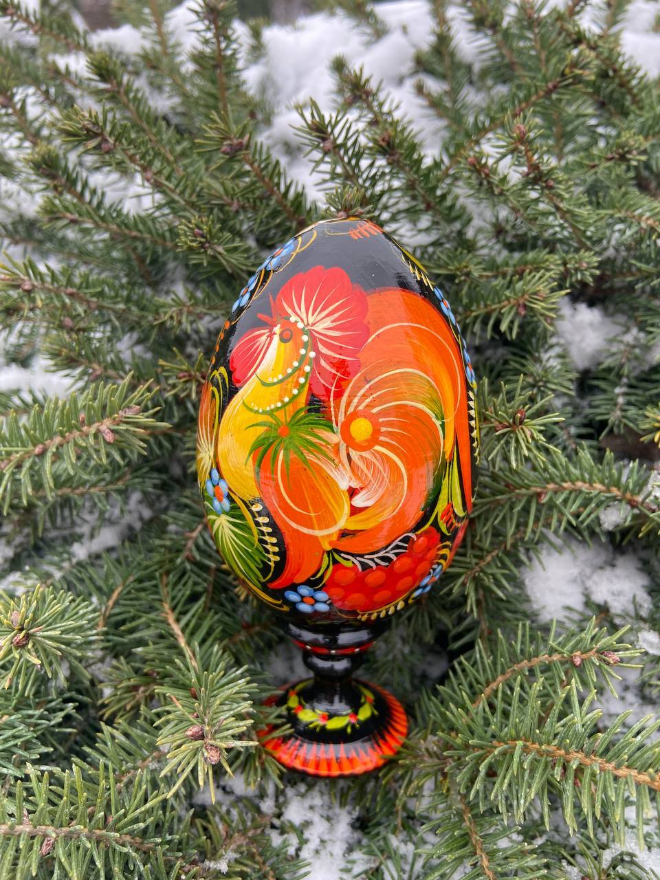 当店のプィサンカは、ウクライナのドニプロに位置するペトリキフカ村で、熟練の職人によってハンドペイントで制作されたイースターエッグです。スタンド付きでシーンを選ばずすぐに飾ることが可能です。
