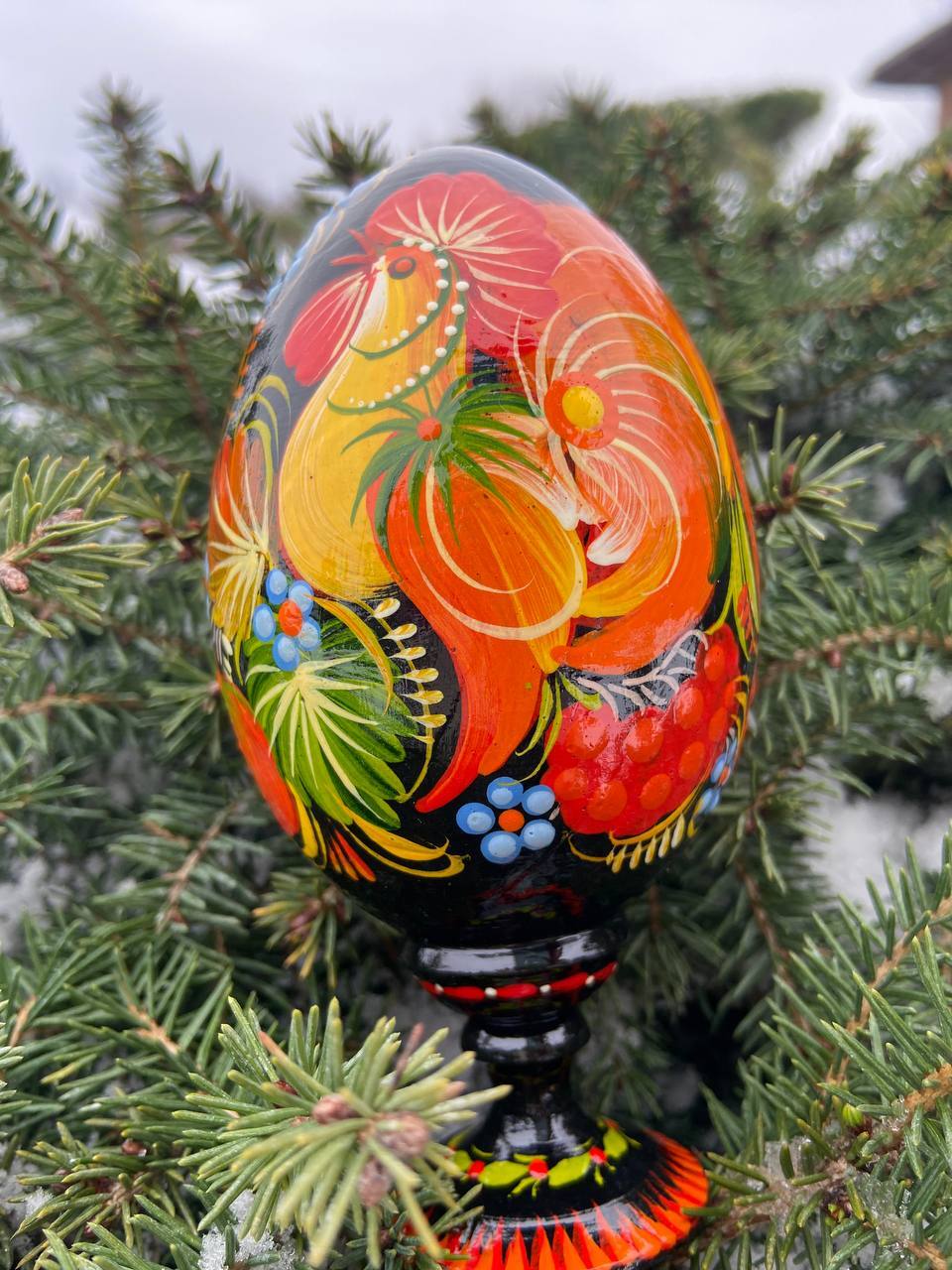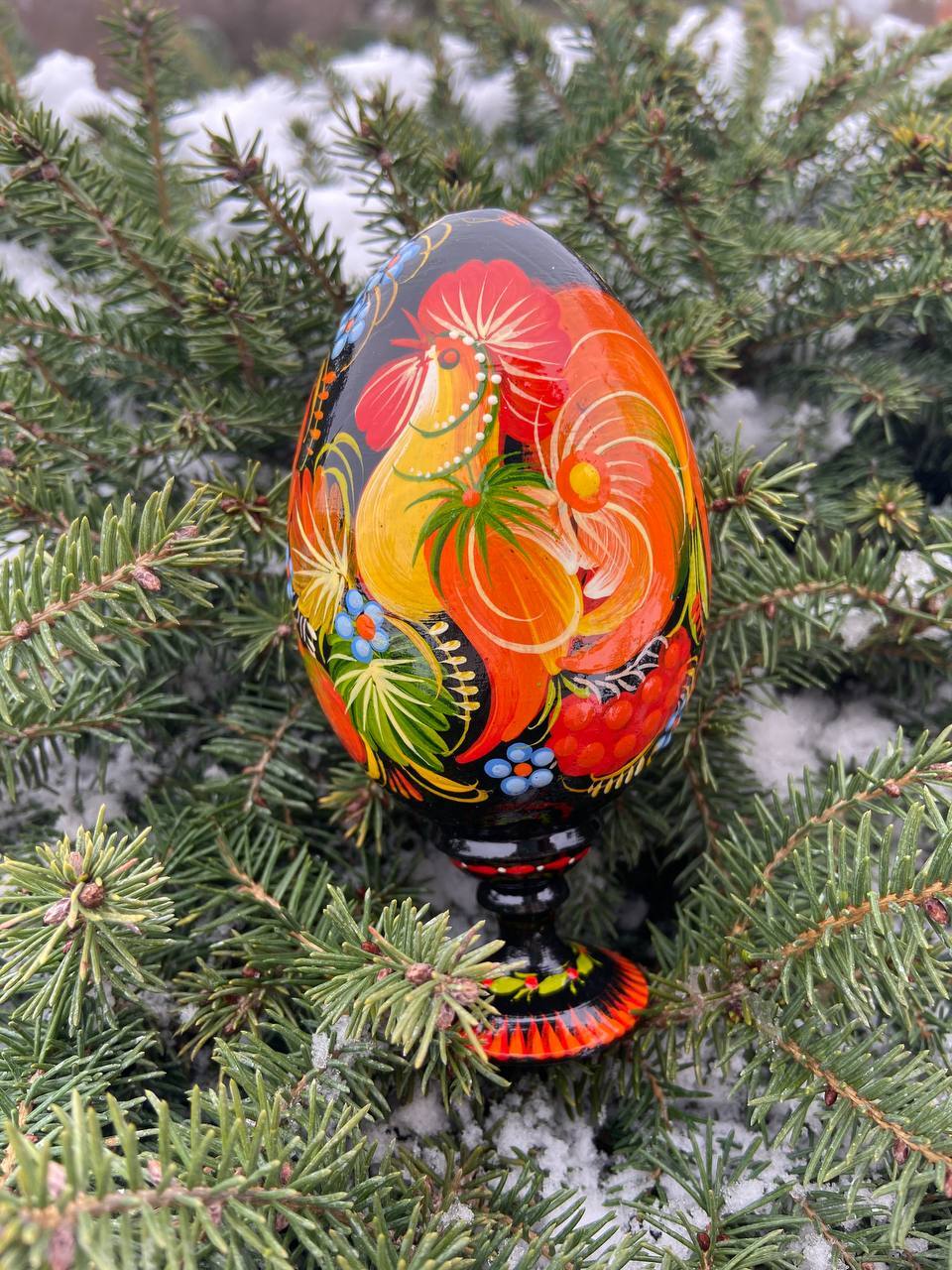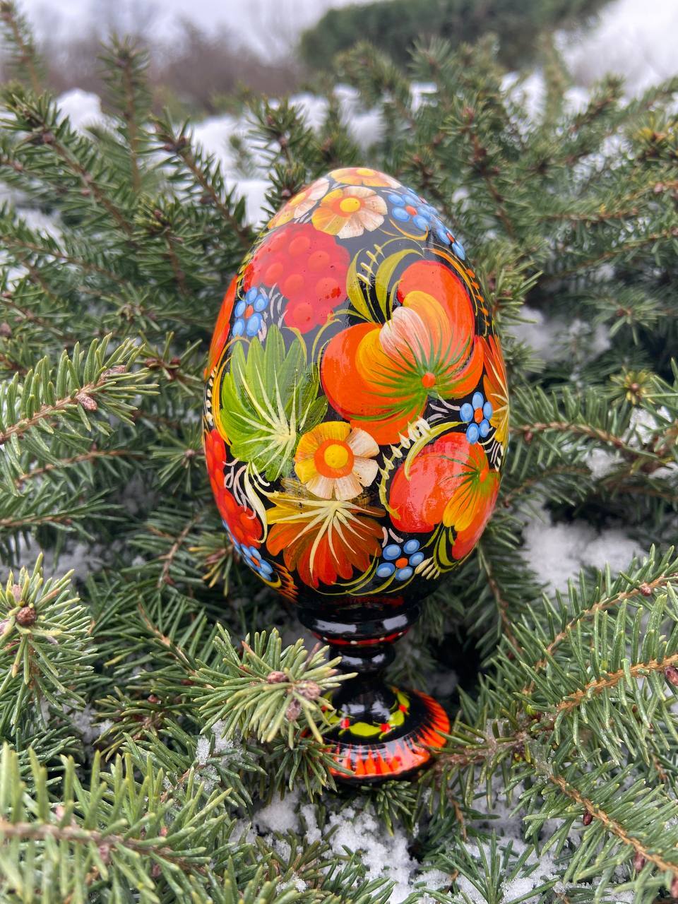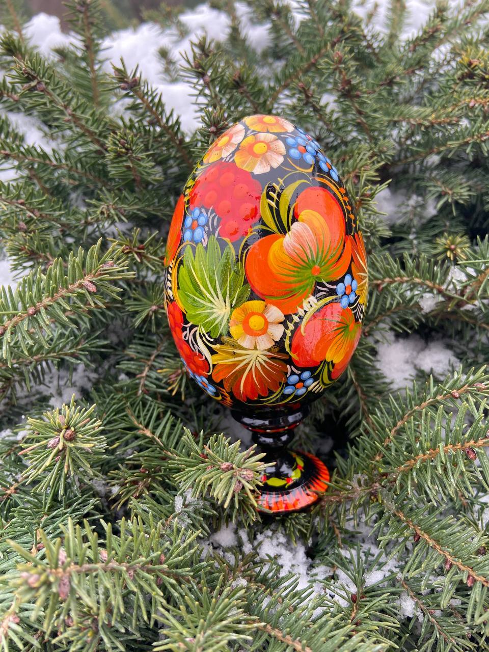 当店のプィサンカは、ウクライナのドニプロに位置するペトリキフカ村で、熟練の職人によってハンドペイントで制作されたイースターエッグです。スタンド付きでシーンを選ばずすぐに飾ることが可能です。