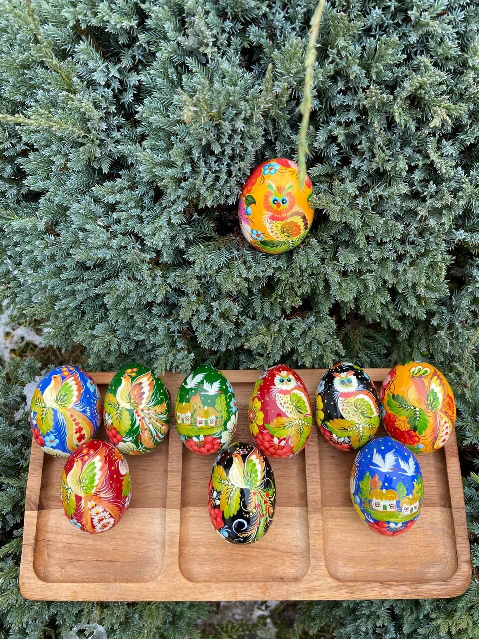 詳細:当店のイースタエッグは、ウクライナのドニプロに位置するペトリキフカ村で、熟練の職人によってハンドペイントで制作されたイースターエッグです。300年の歴史を持つユネスコ無形文化遺産「ペトリキウカ塗り」の国家認定職人であるホメンコ氏の作品です。伝統的なイースターの飾り付けをはじめ、年間屋内に飾ることで福を呼ぶとされています。