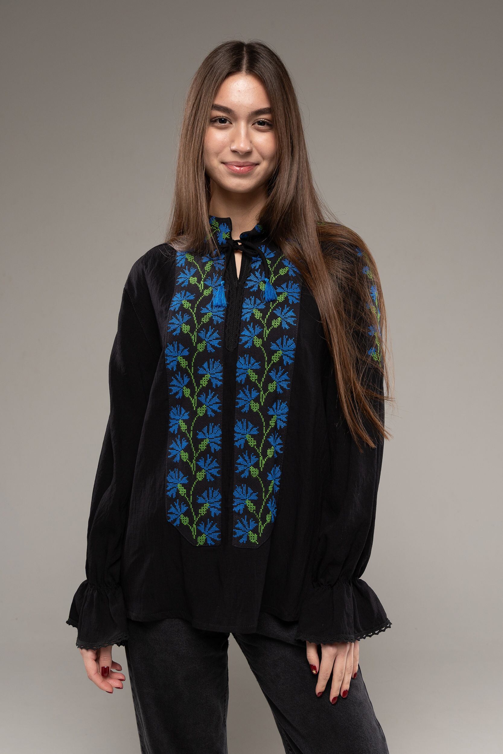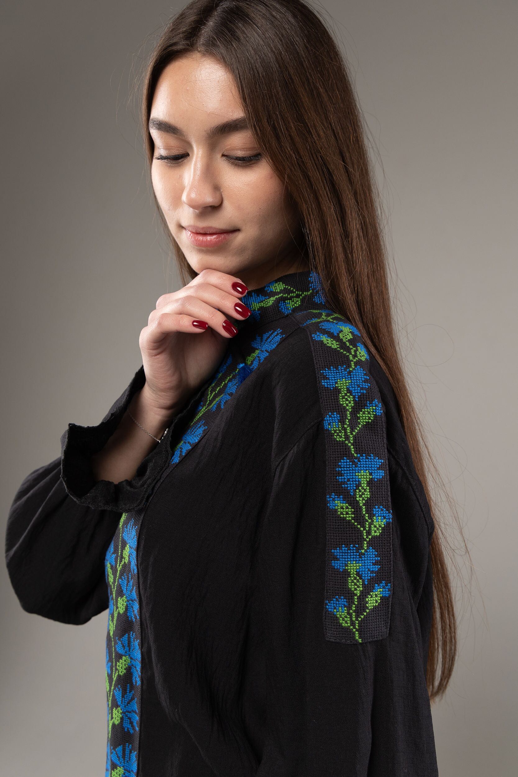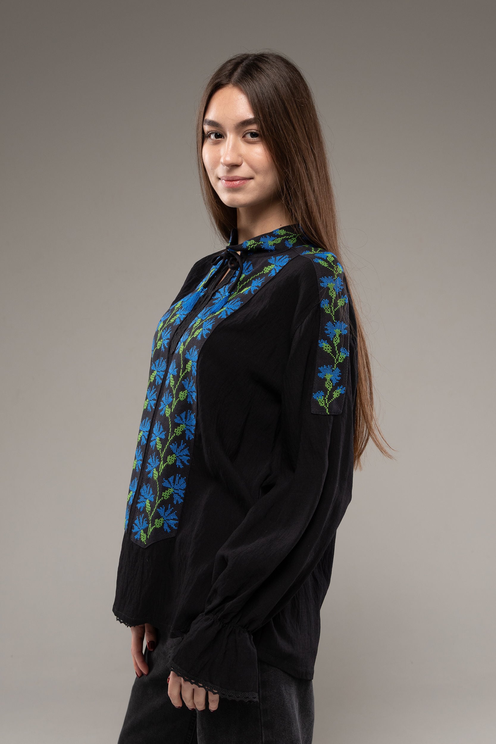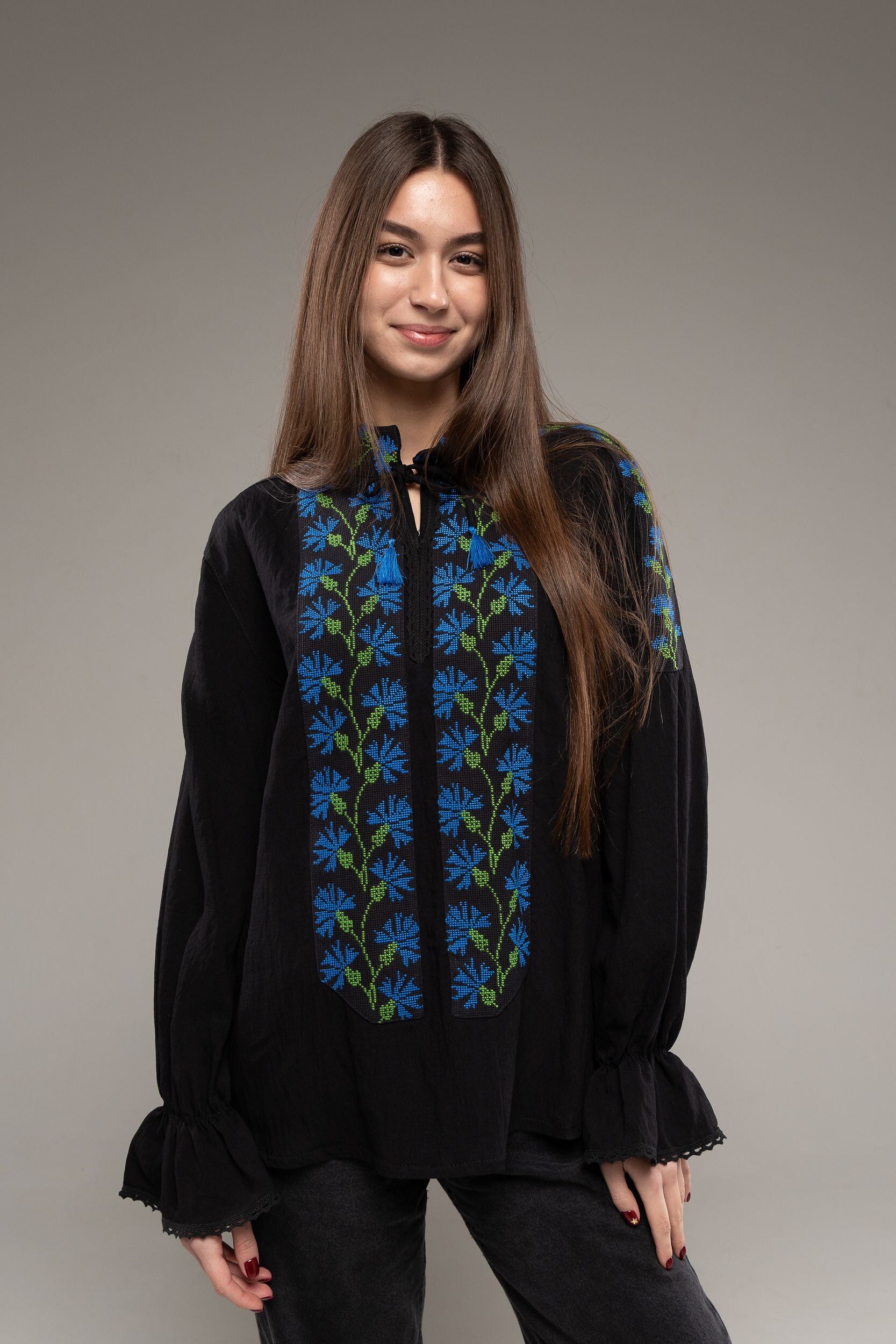 この作品は、ウクライナの伝統と美しさを象徴するヴィシヴァンカの刺繍を採用しています。過度な派手さを追求せず、日本の日常生活に自然に溶け込むデザインとなっております。しかし、それでいて洗練された高級感とカジュアルな雰囲気を両立させ、見る人を魅了する一着となっています。