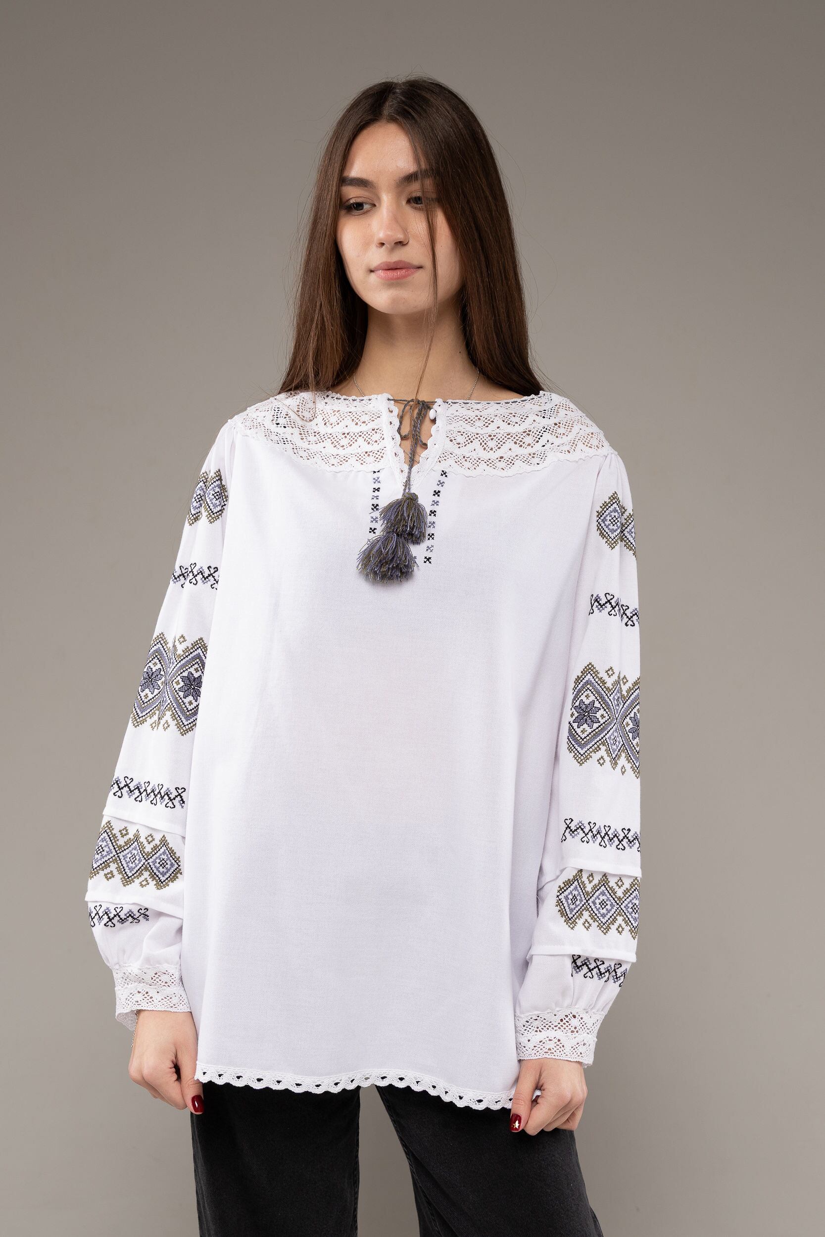 ウクライナ刺繍ヴィシヴァンカ・クラシック 手刺繍 麻 レディース・フリーサイズ