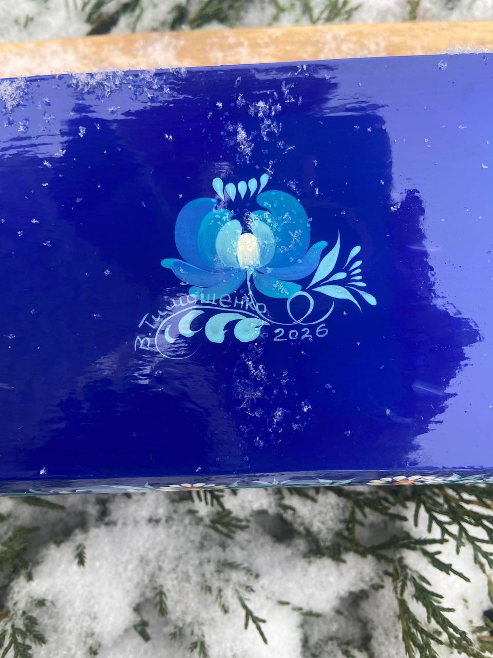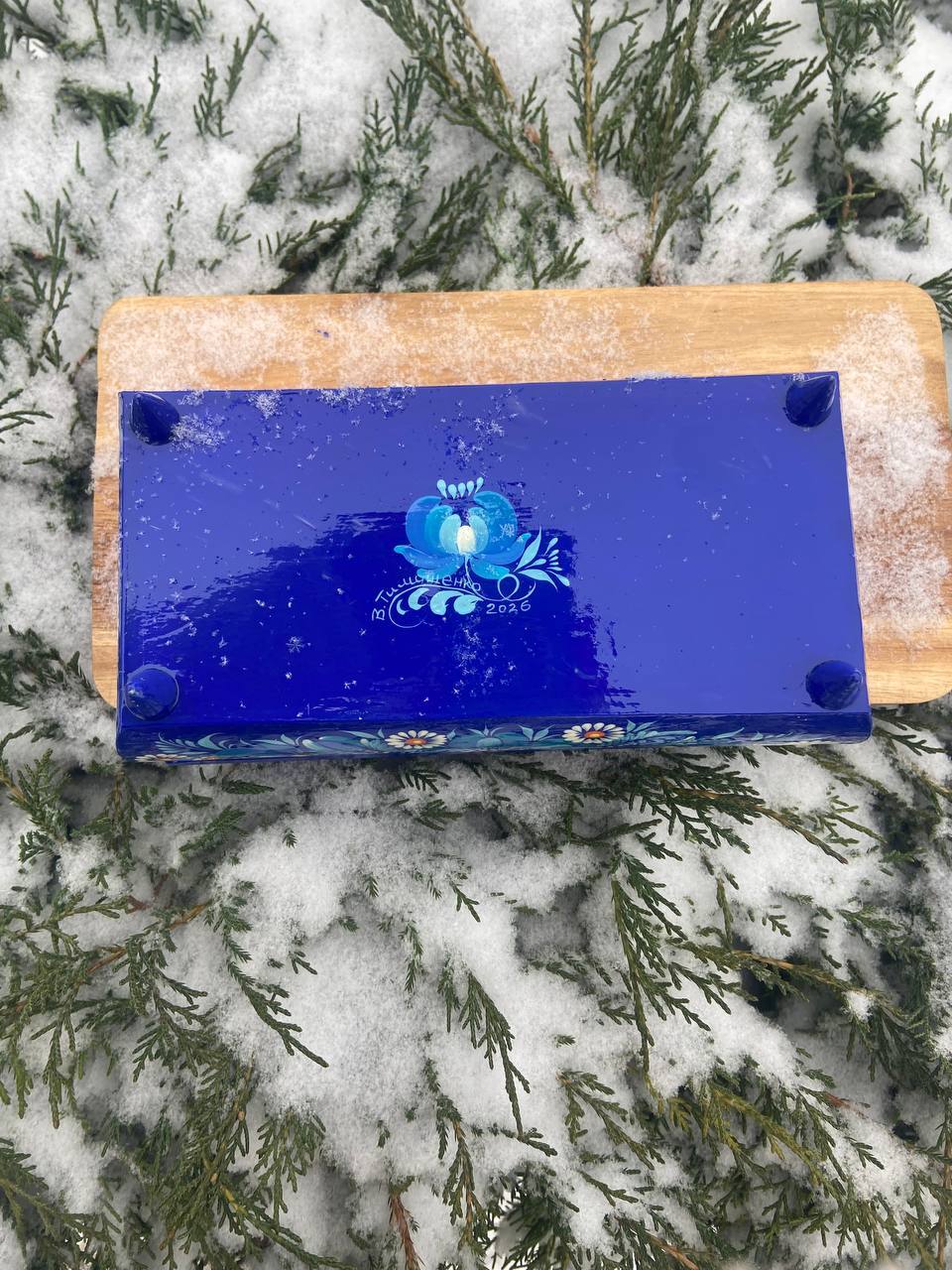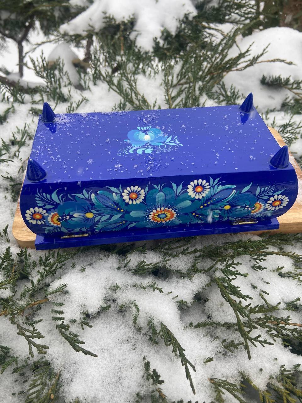 この美しいジュエリーボックスは、ペトリキフカ村のシナノキゾクの樹木から一から手作業で切り彫られ、細部にわたって丁寧に仕上げられています。シナノキの木材は、ウクライナでは御守りとしての意味を持ち、幸運と安全をもたらすと信じられています。