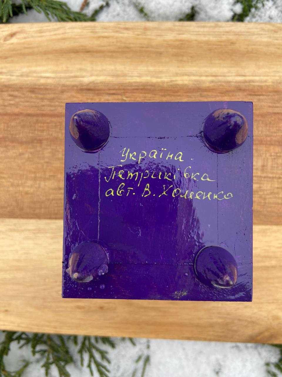 ペトリキフカ・ジュエリーボックスは、ウクライナの伝統的な芸術、ペトリキフカ塗りの精粋を表現する逸品です。この芸術は、ドニプロ近郊のペトリキフカ村にて代々受け継がれてきたペトリーヴナ家の手によって生み出されています。ホメンコ・ヴァレンティーナ・ペトリーヴナは、その伝統を受け継ぐ現代の名工です。
