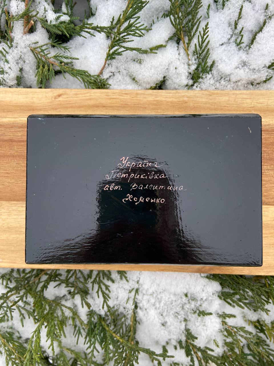 ペトリキフカ・ジュエリーボックスは、ウクライナの伝統的な芸術、ペトリキフカ塗りの精粋を表現する逸品です。この芸術は、ドニプロ近郊のペトリキフカ村にて代々受け継がれてきたペトリーヴナ家の手によって生み出されています。ホメンコ・ヴァレンティーナ・ペトリーヴナは、その伝統を受け継ぐ現代の名工です。