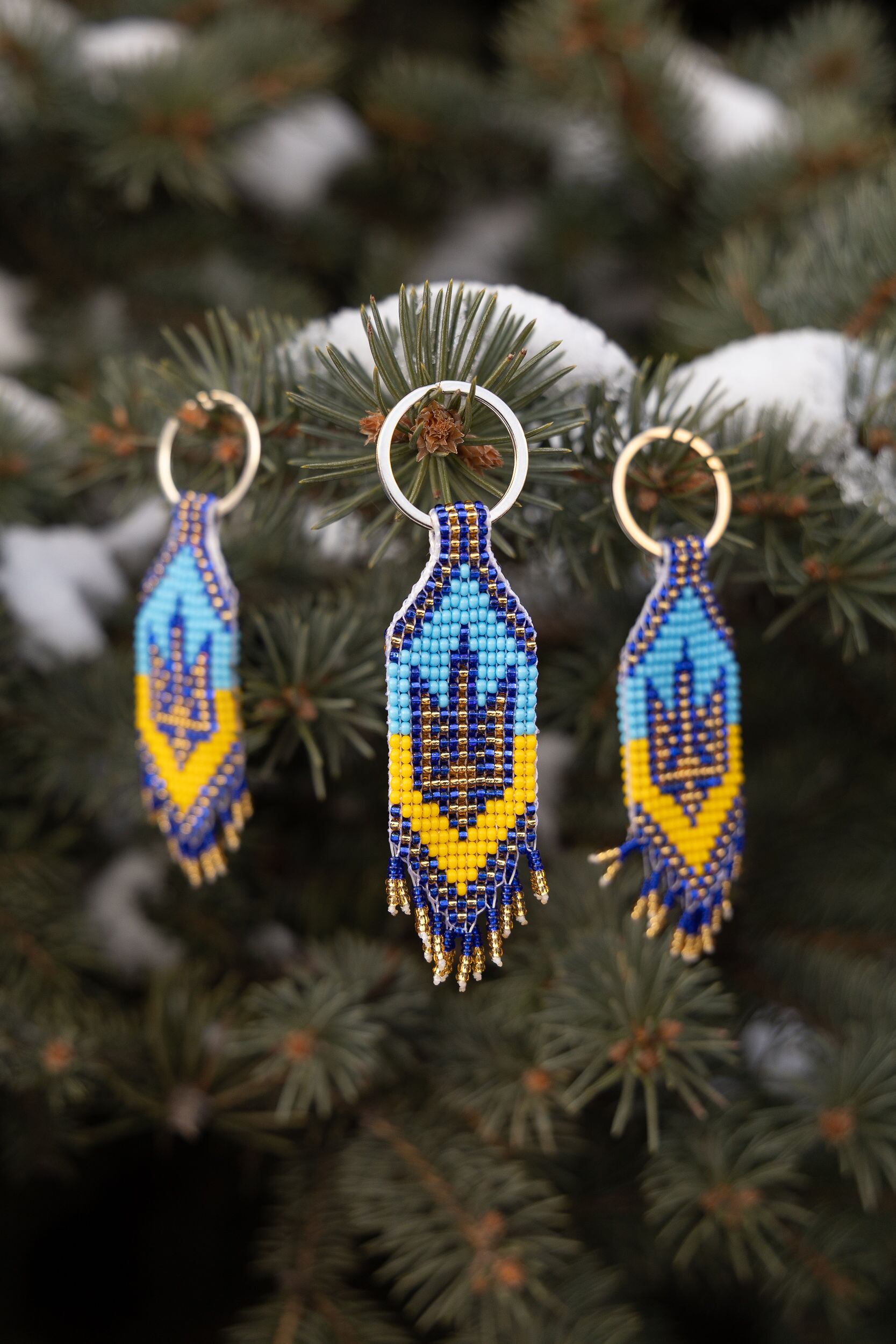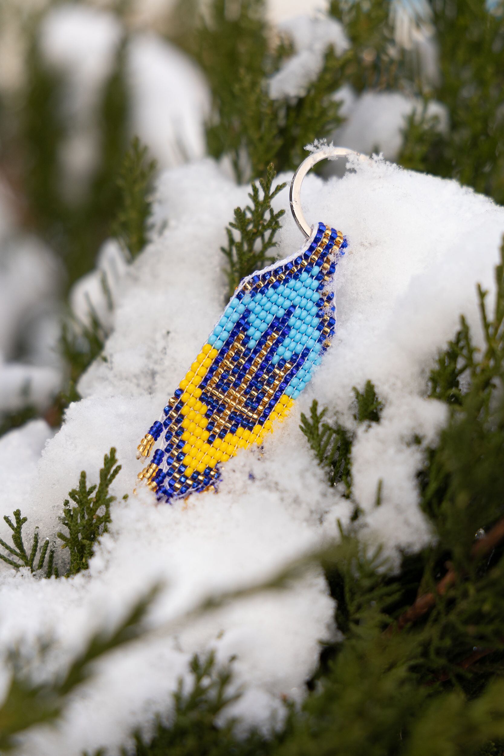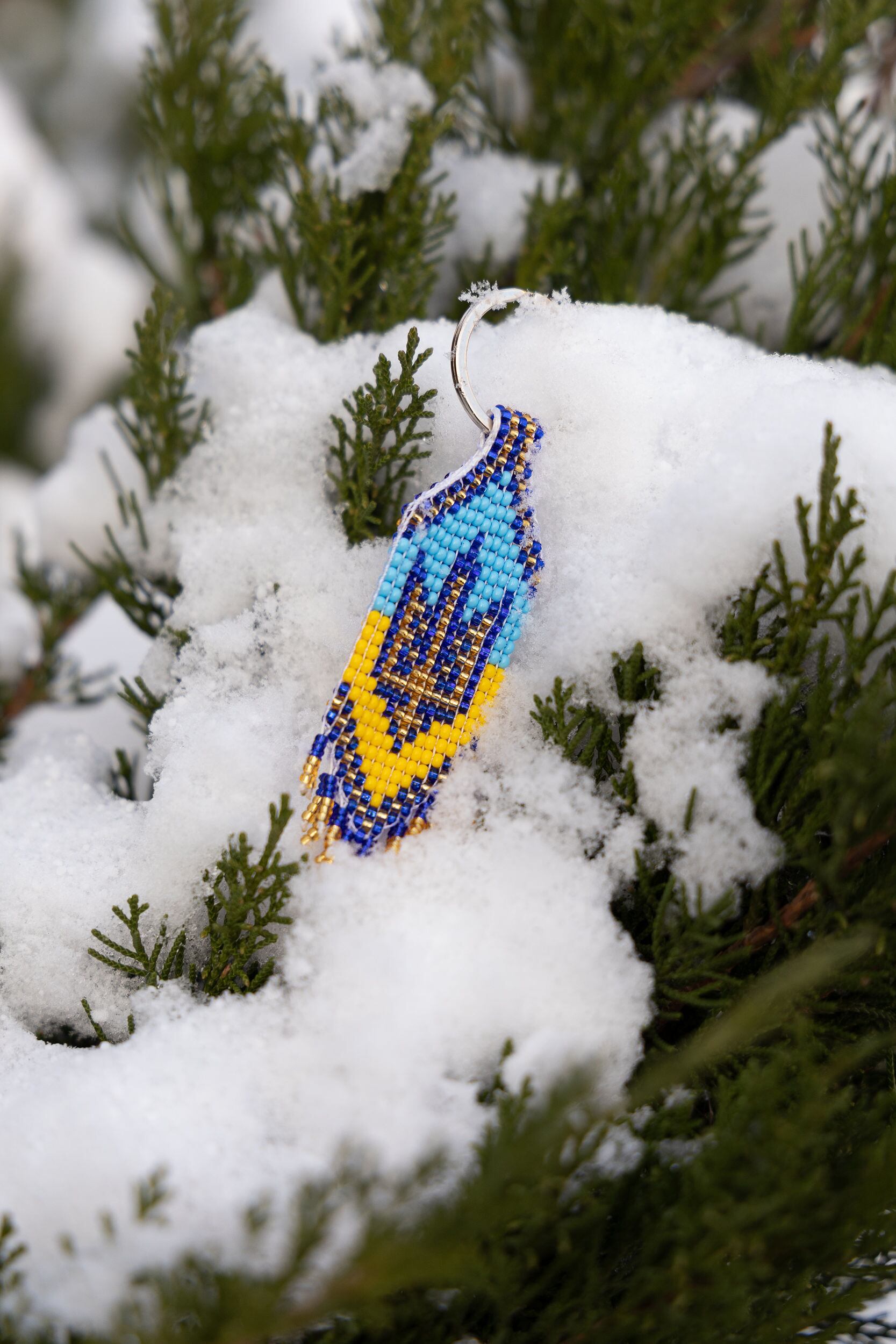 UA.Designerオリジナル手作りビーズ ウクライナ国章 キーホルダー