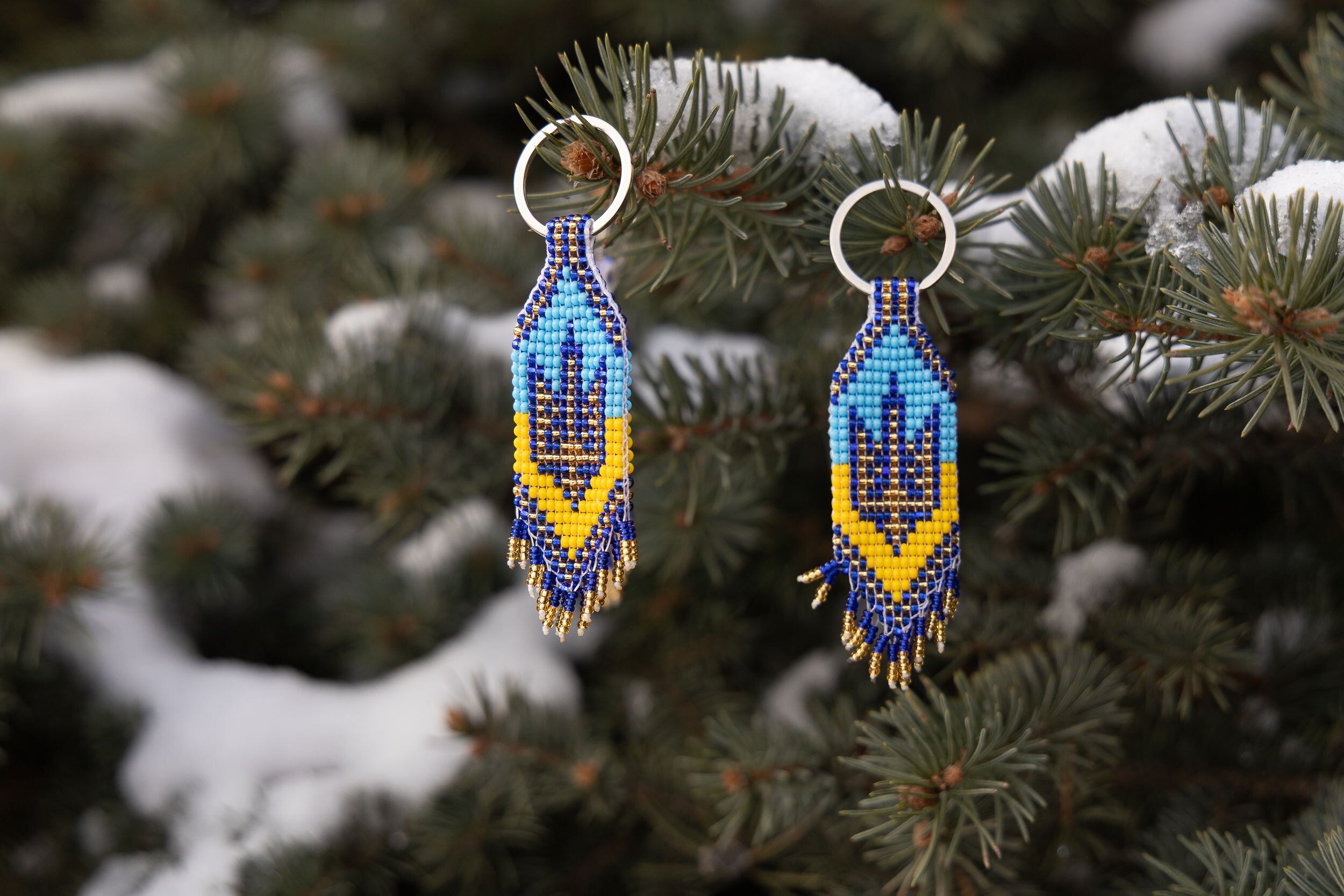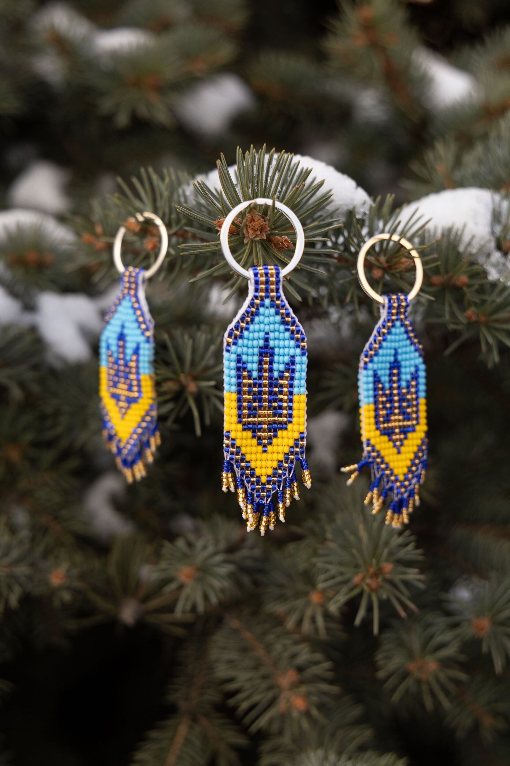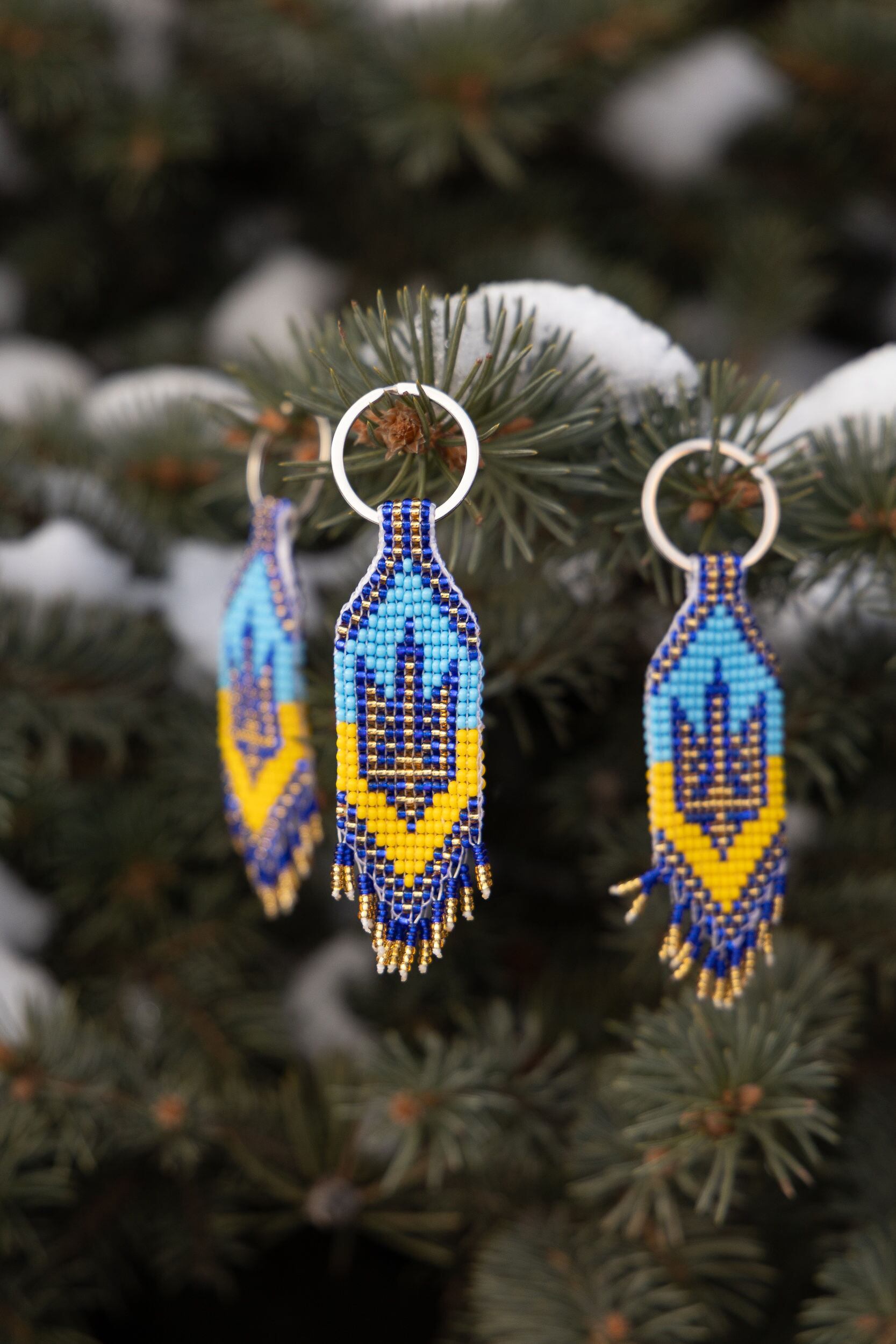 UA.Designerオリジナル手作りビーズ ウクライナ国章 キーホルダー