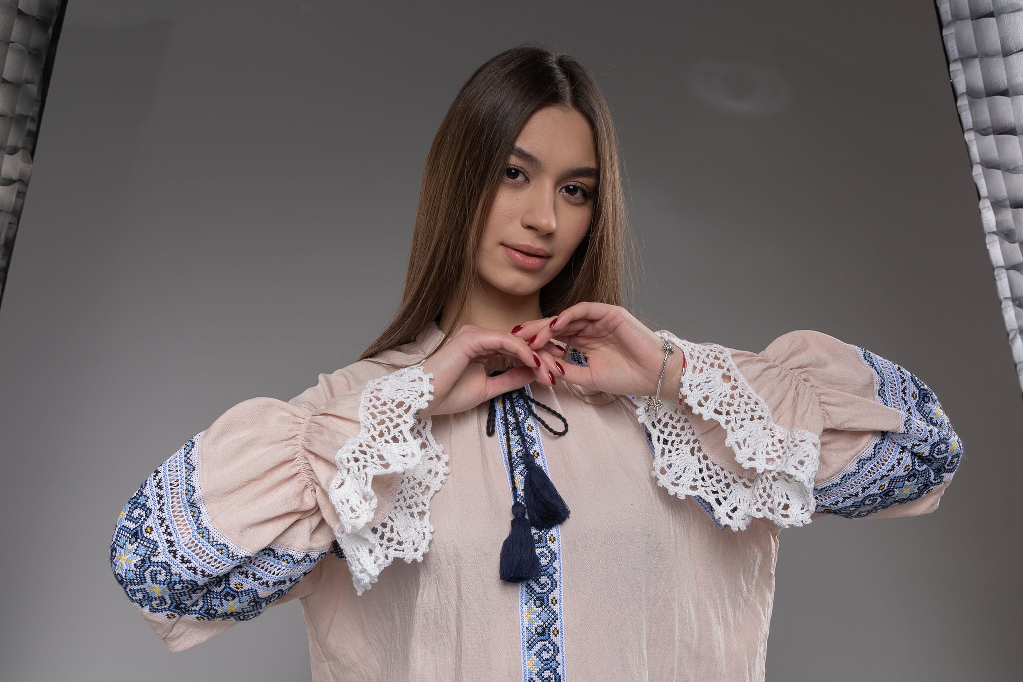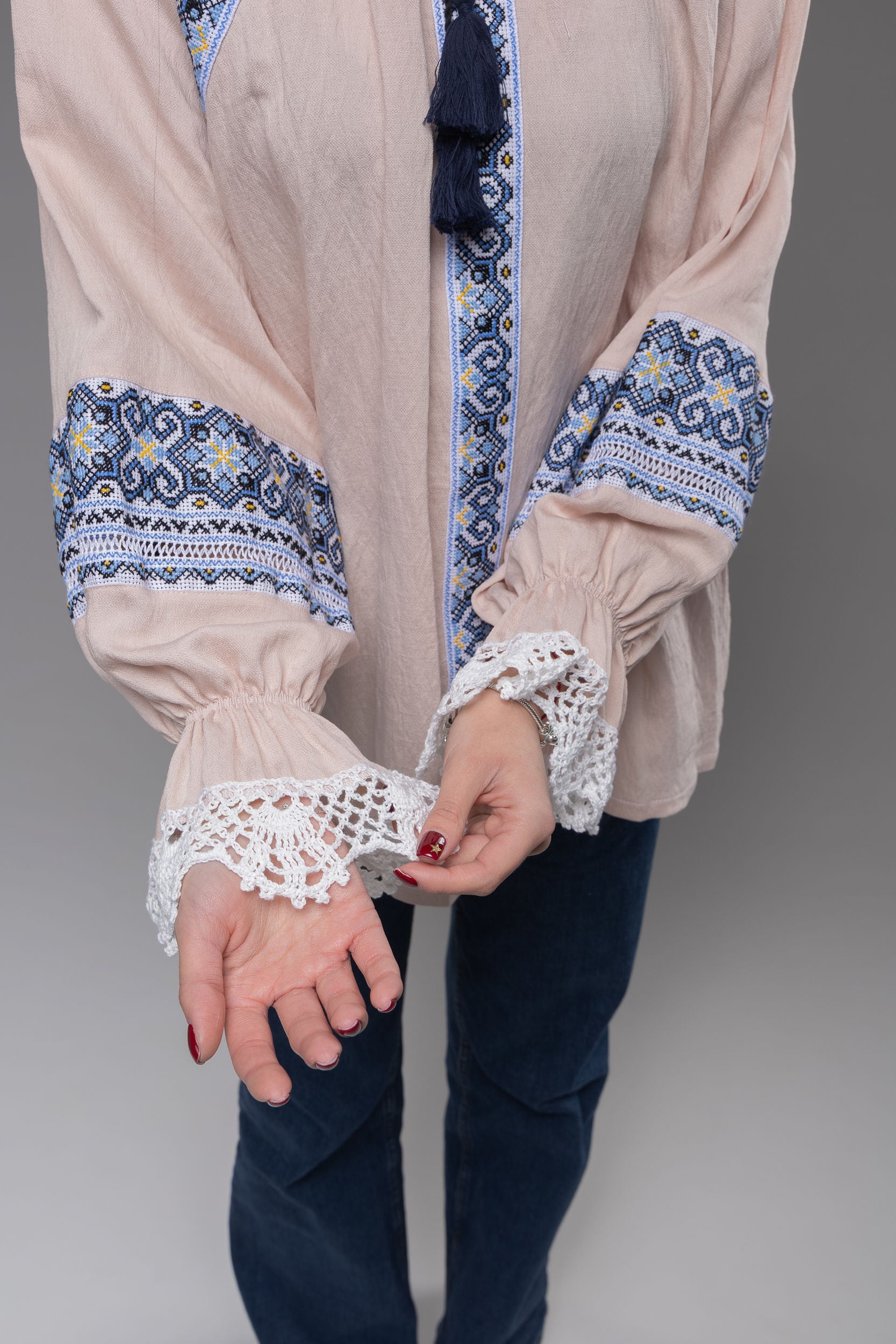 伝統を大切にし、数十年のキャリアのあるウクライナ人デザイナーが一から手縫いで作っています。そのため、二点と存在しないオリジナルとなります。