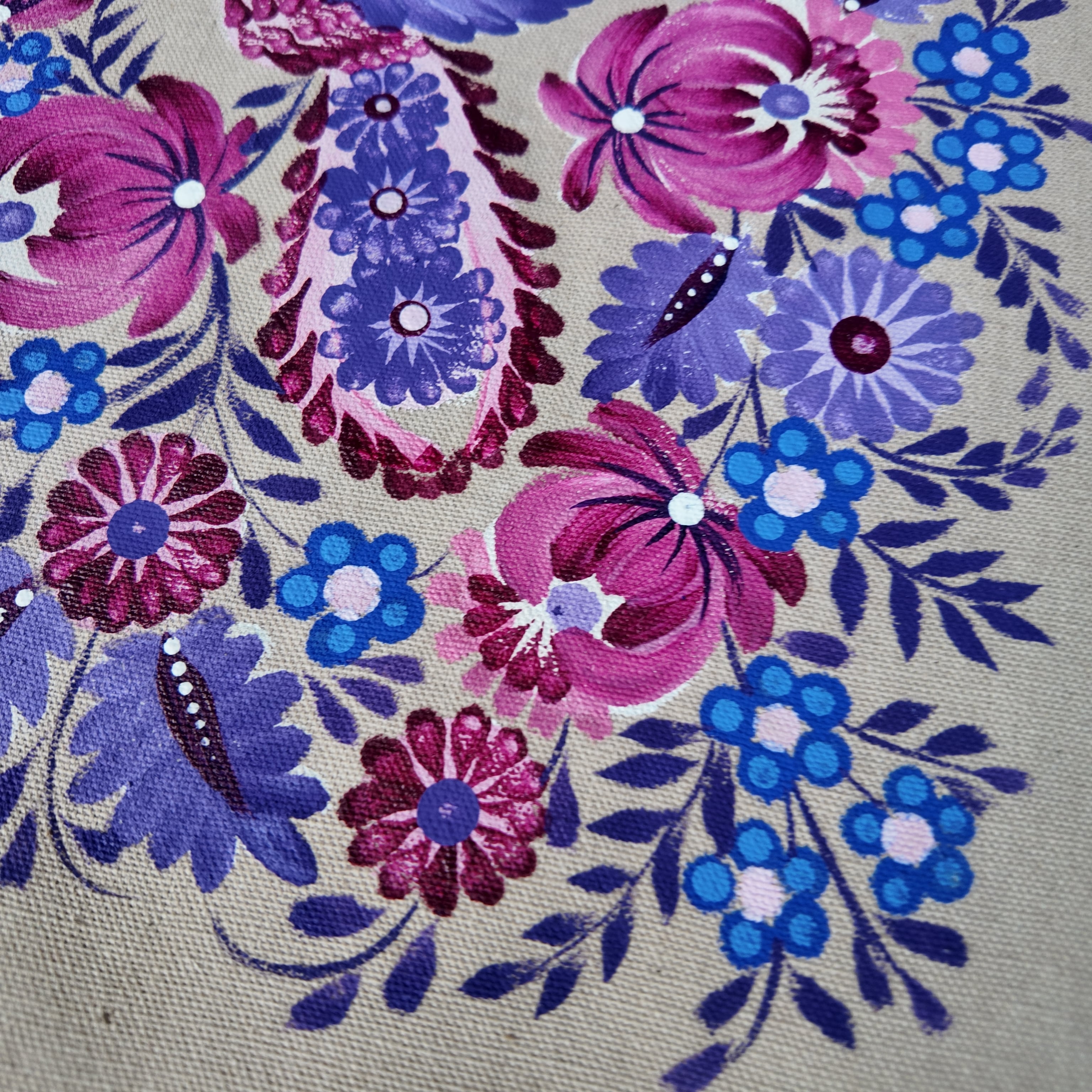 ウクライナに300年続く愛猫の抜け毛を集めた毛の筆で描くペトリキウカ塗りが描かれた手書きのマットです。