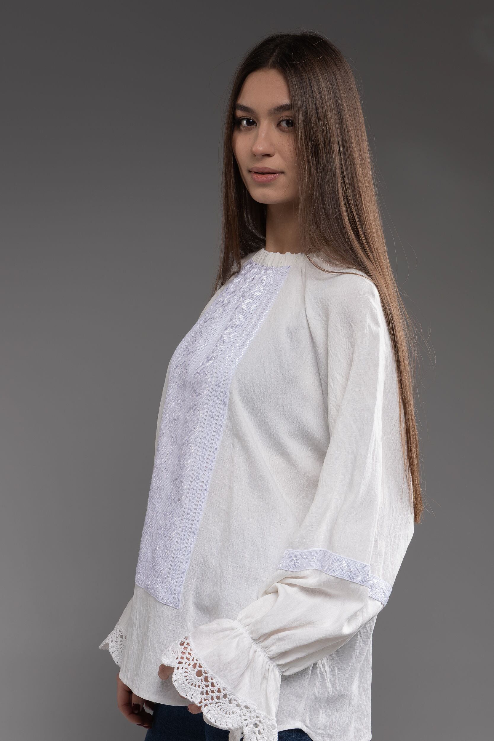 この作品は、ウクライナの伝統と美しさを象徴するヴィシヴァンカの刺繍を採用しています。過度な派手さを追求せず、日本の日常生活に自然に溶け込むデザインとなっております。しかし、それでいて洗練された高級感とカジュアルな雰囲気を両立させ、見る人を魅了する一着となっています。