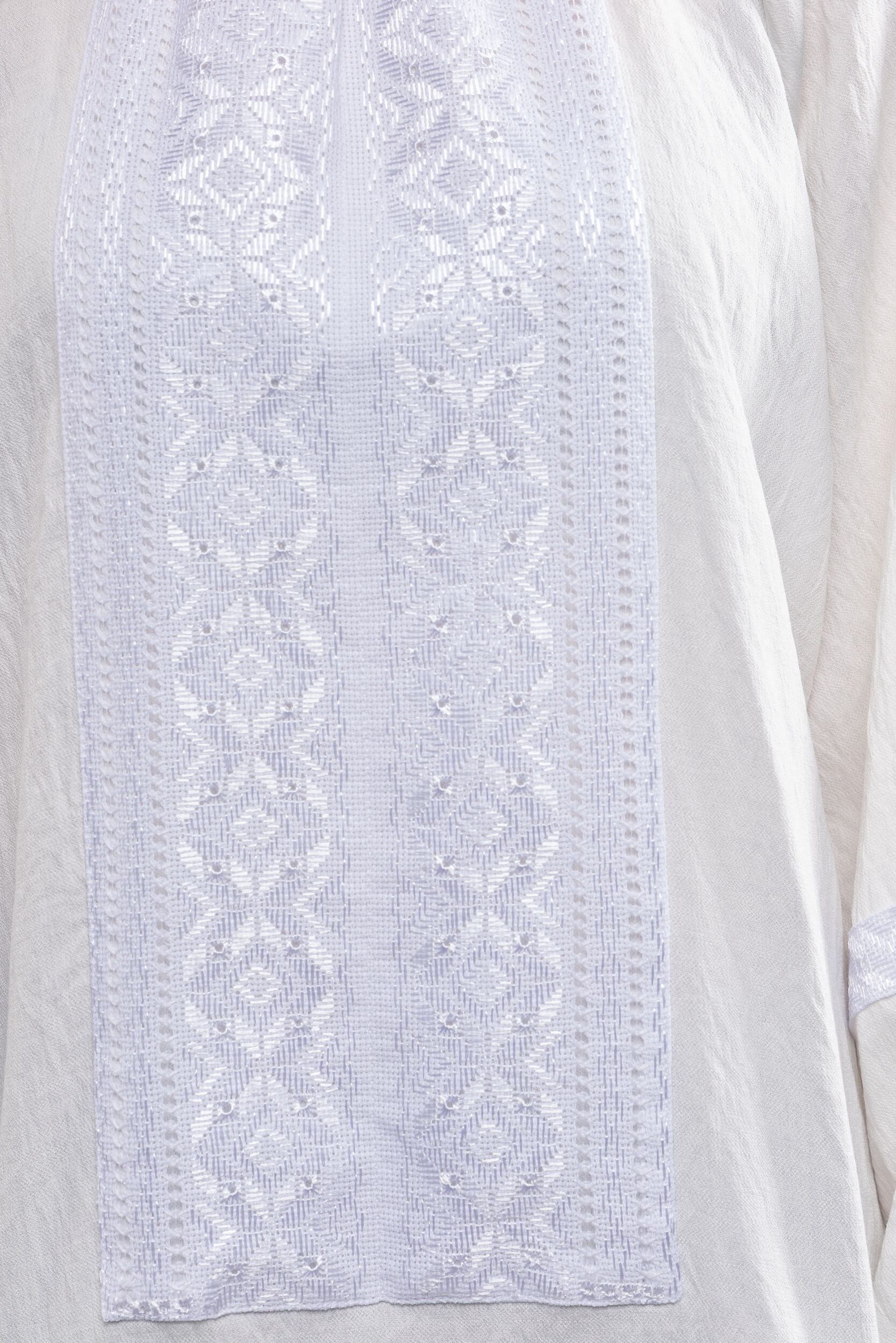 ウクライナ刺繍ヴィシヴァンカ シルク手刺繍 グラージュ・ニジンカ ボヘミアンリネン レディース・フリーサイズ