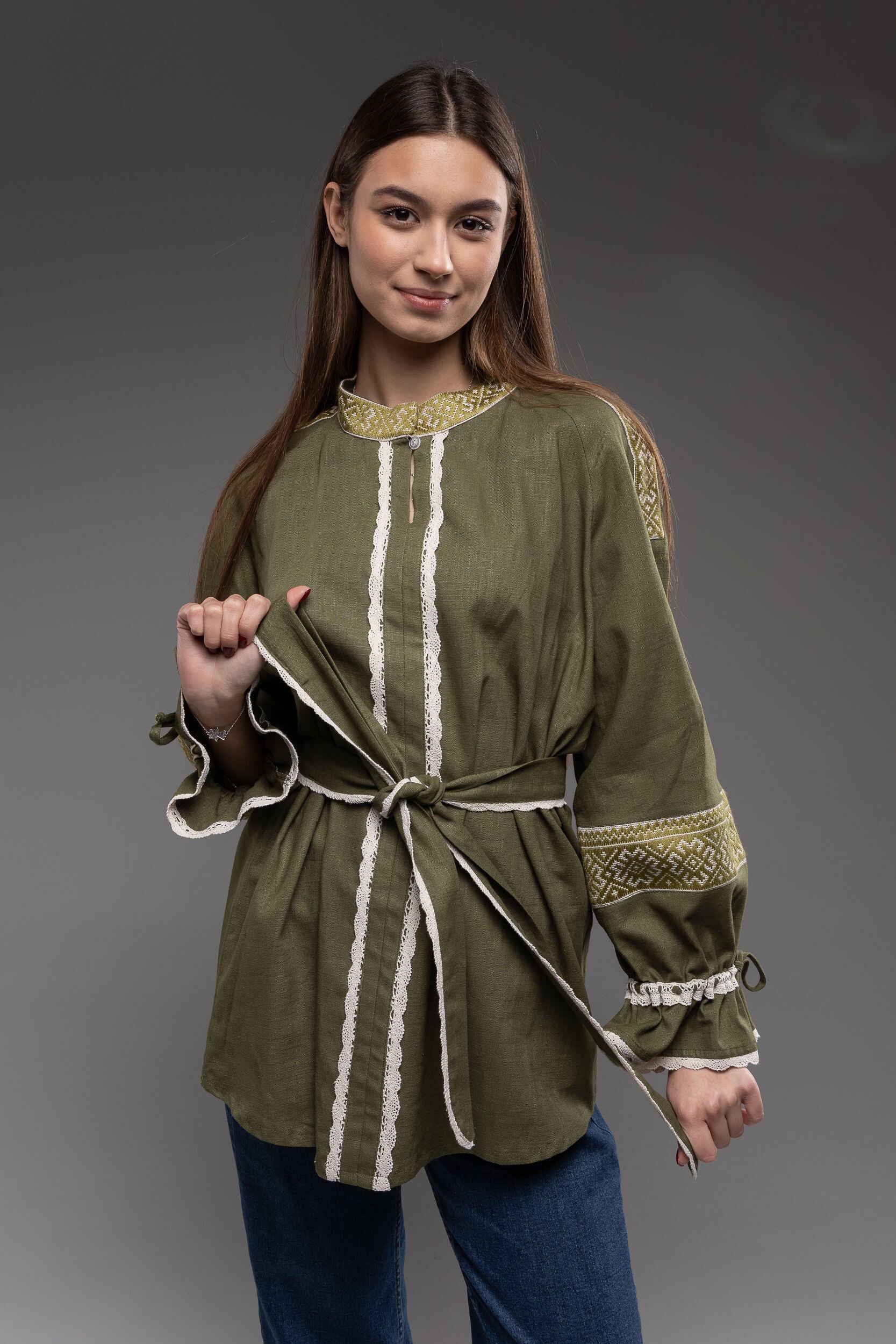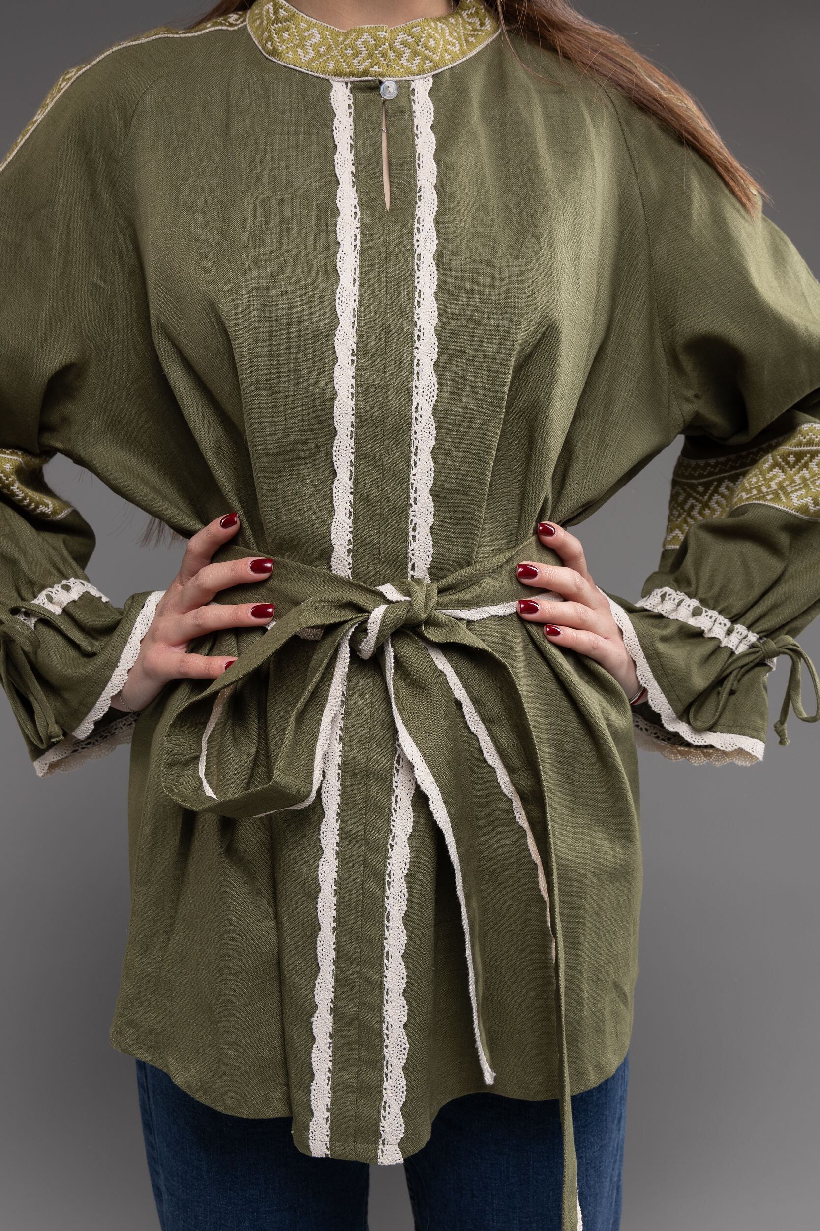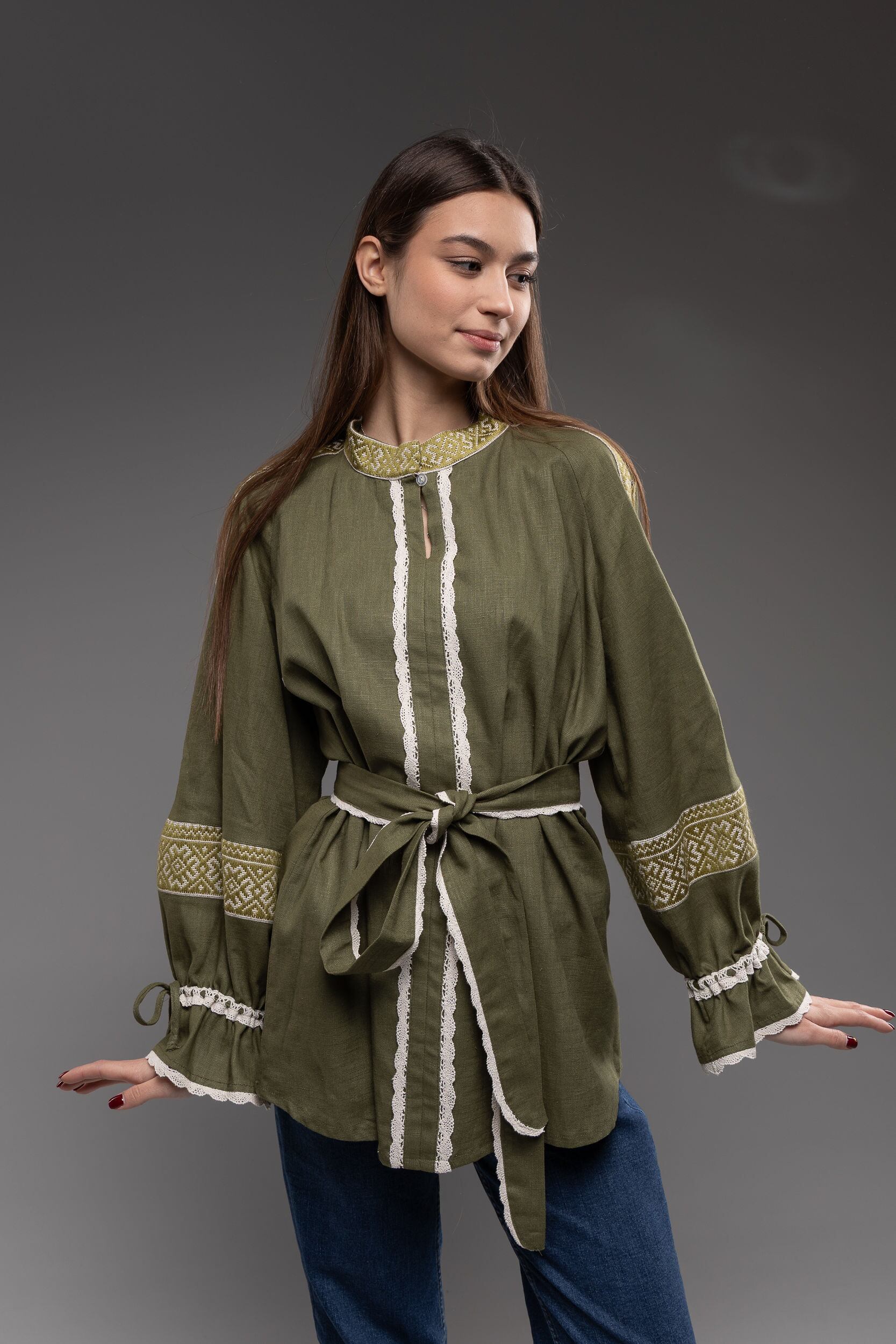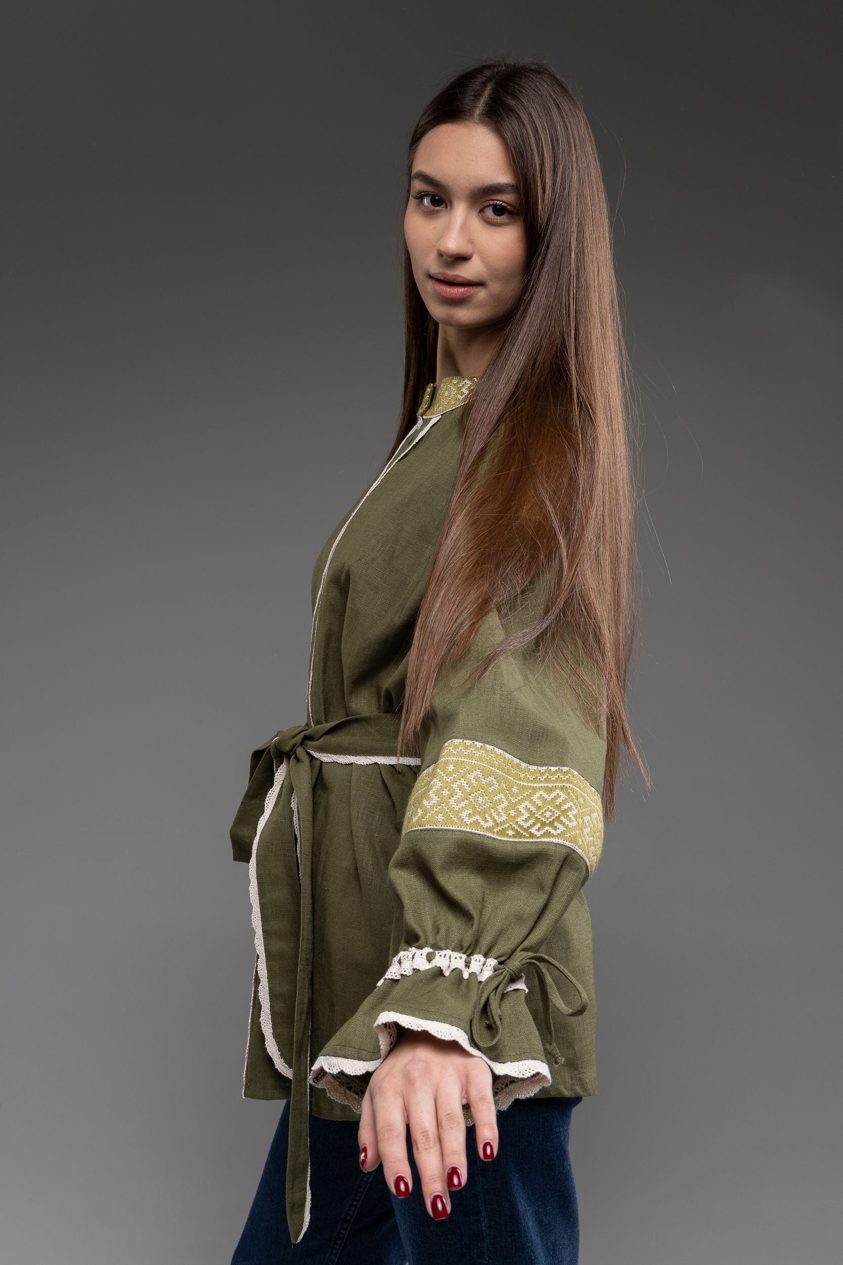この作品は、ウクライナの伝統と美しさを象徴するヴィシヴァンカの刺繍を採用しています。過度な派手さを追求せず、日本の日常生活に自然に溶け込むデザインとなっております。しかし、それでいて洗練された高級感とカジュアルな雰囲気を両立させ、見る人を魅了する一着となっています。