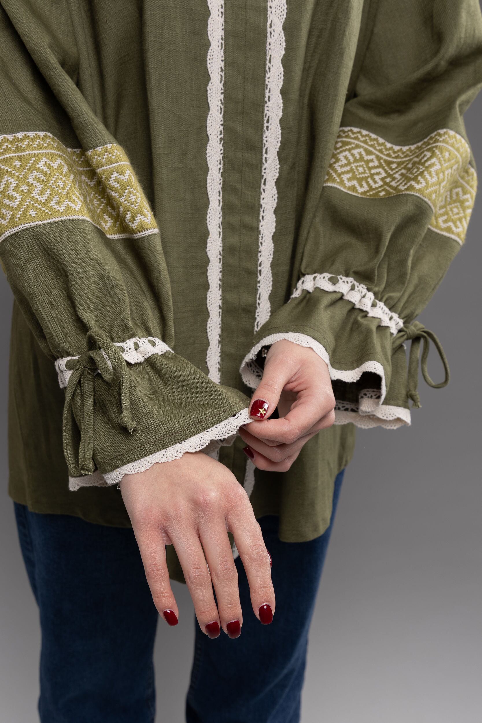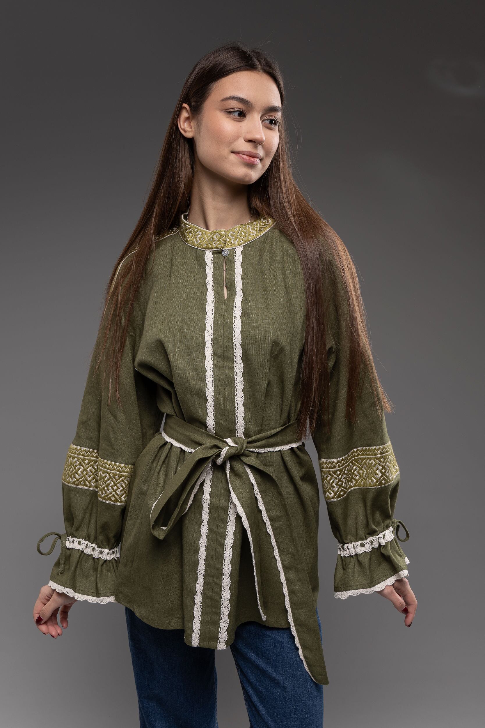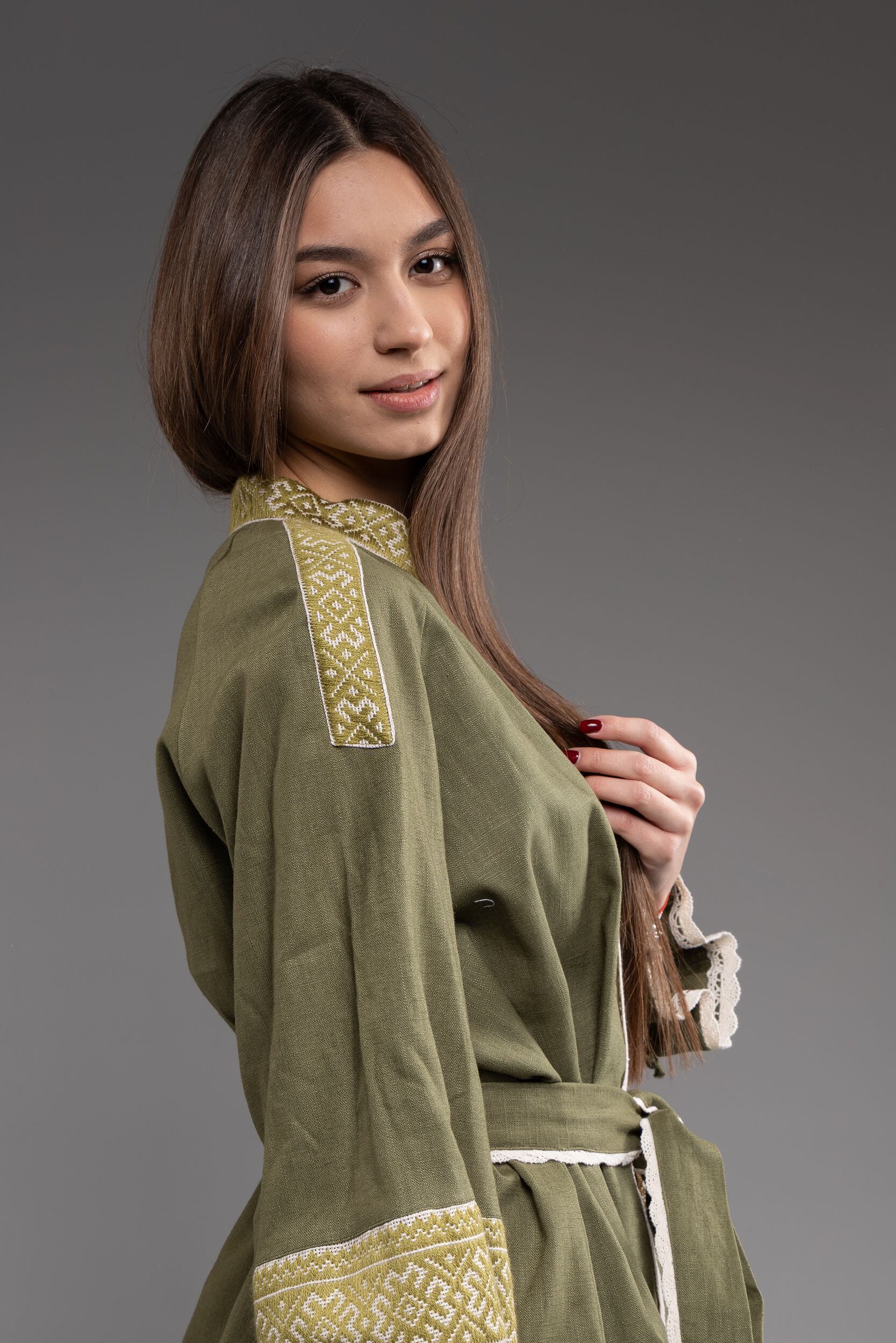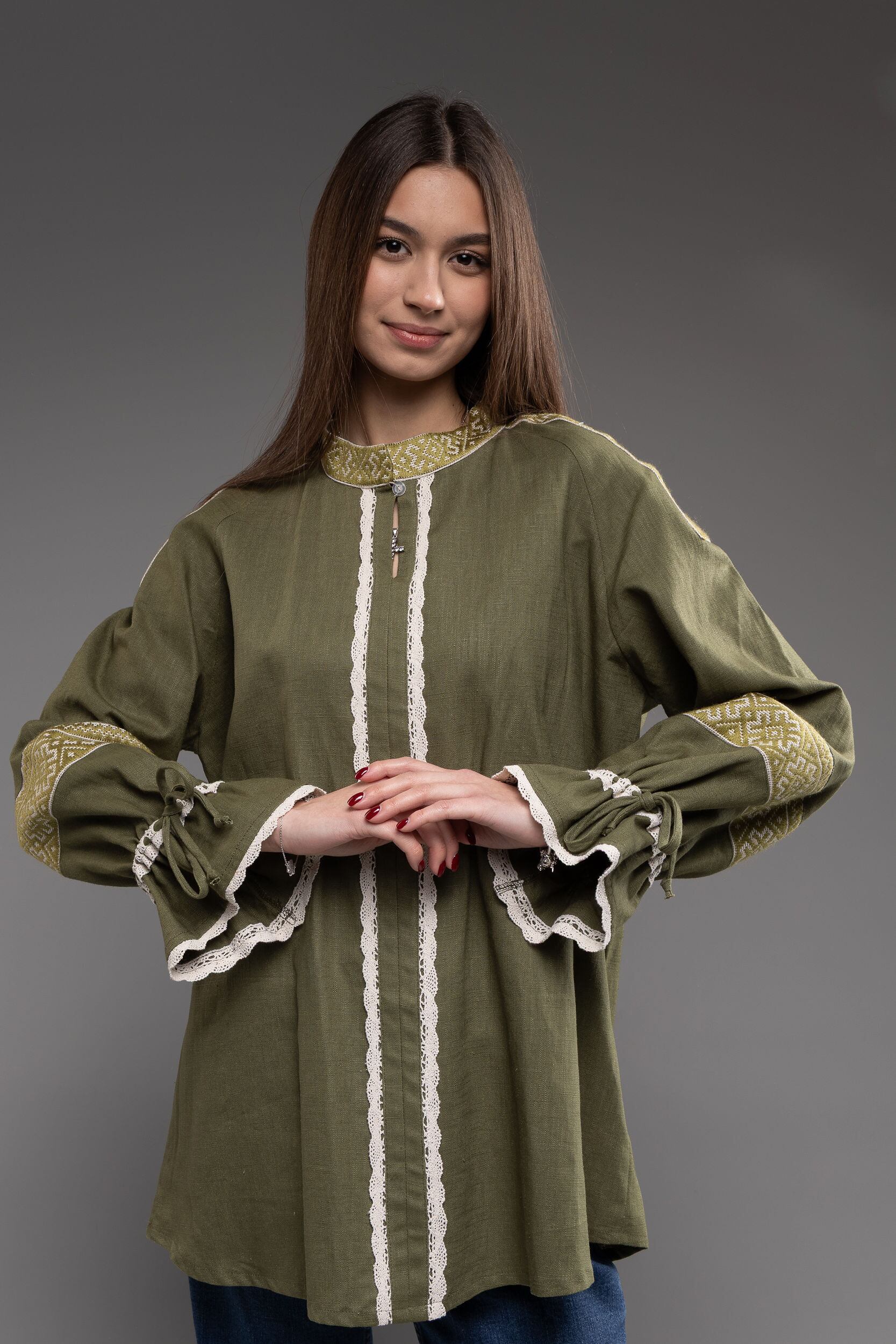 この作品は、ウクライナの伝統と美しさを象徴するヴィシヴァンカの刺繍を採用しています。過度な派手さを追求せず、日本の日常生活に自然に溶け込むデザインとなっております。しかし、それでいて洗練された高級感とカジュアルな雰囲気を両立させ、見る人を魅了する一着となっています。