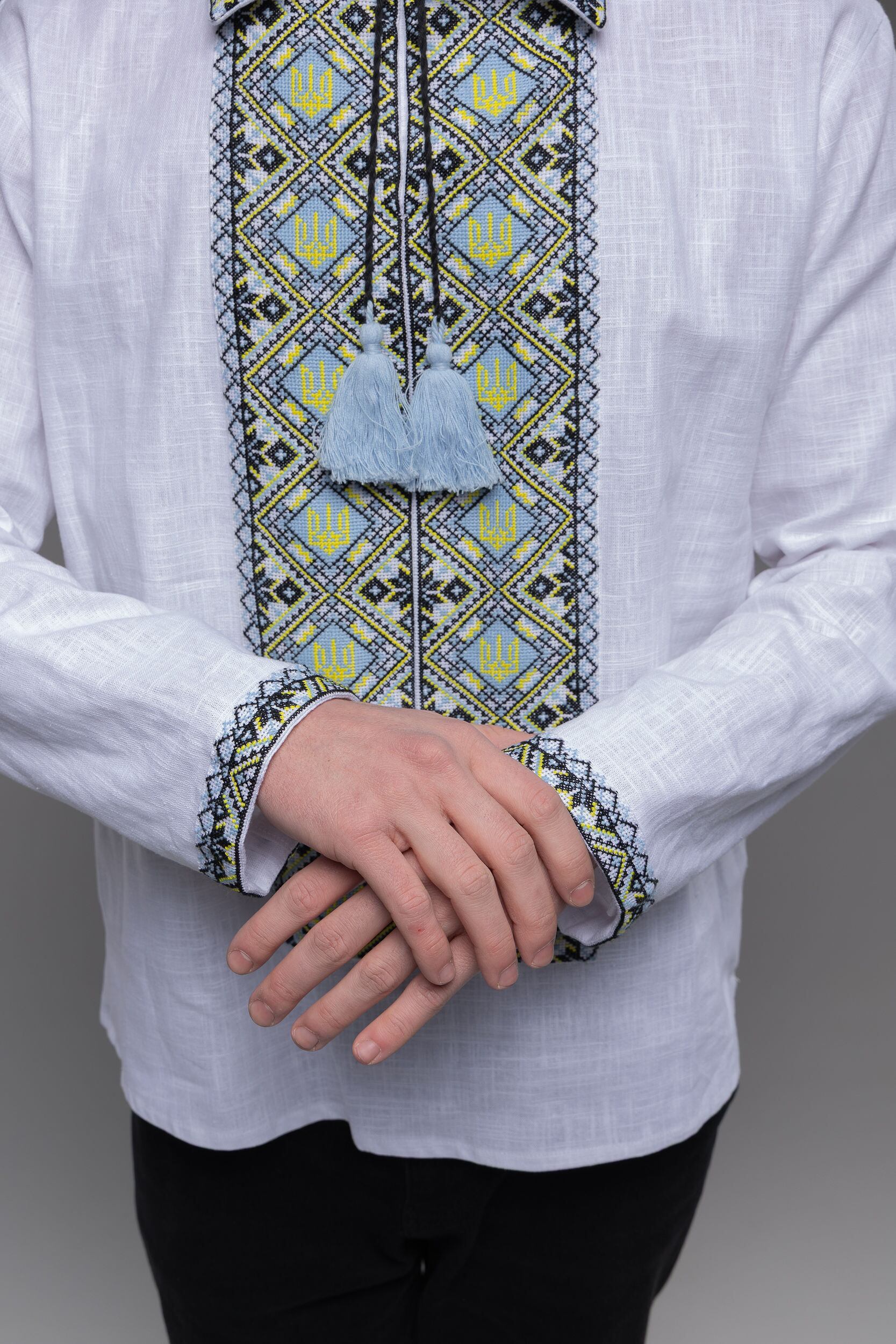ウクライナ刺繍ヴィシヴァンカ 国章 クロスステッチ手刺繍 Lサイズ メンズ