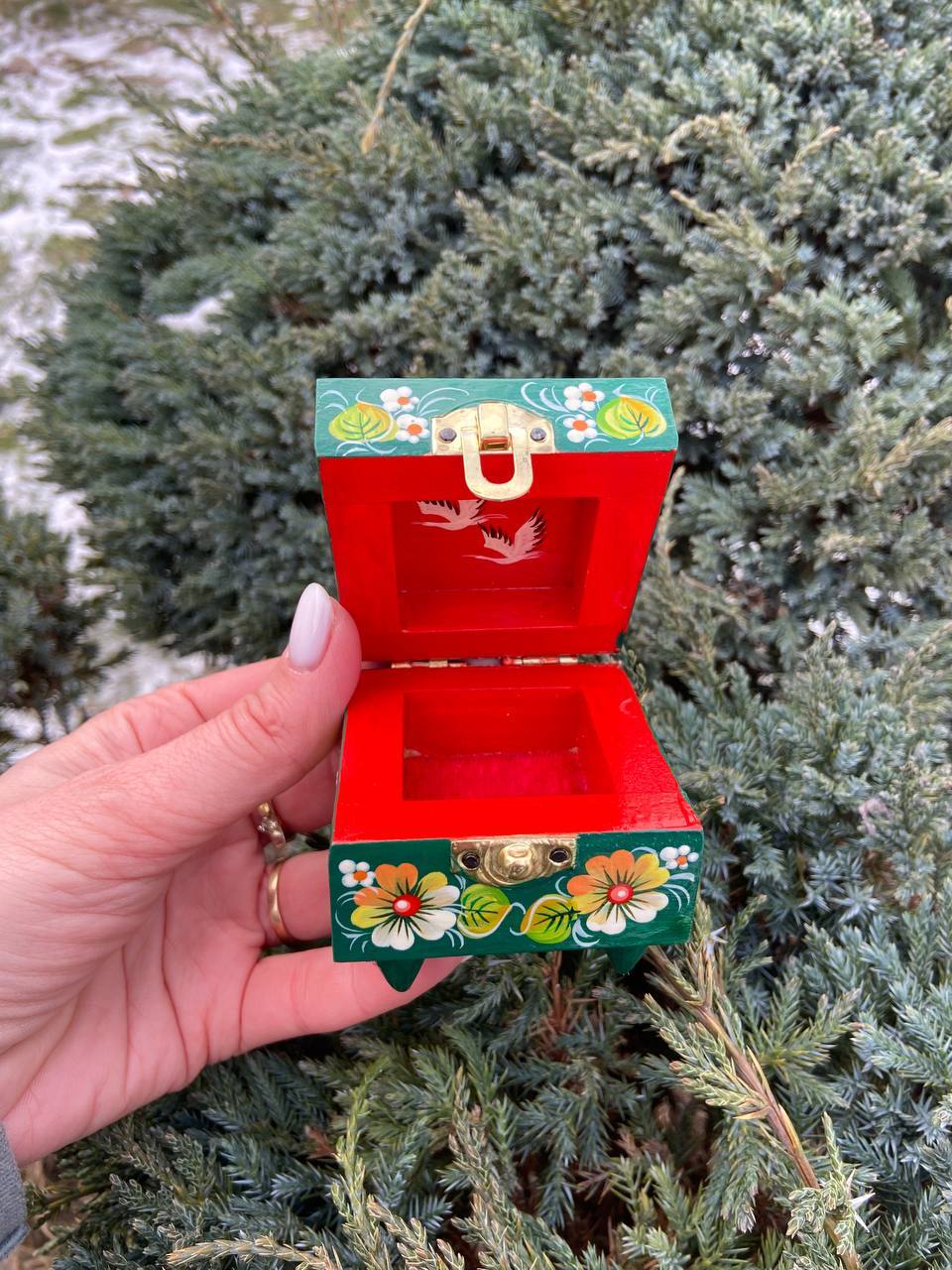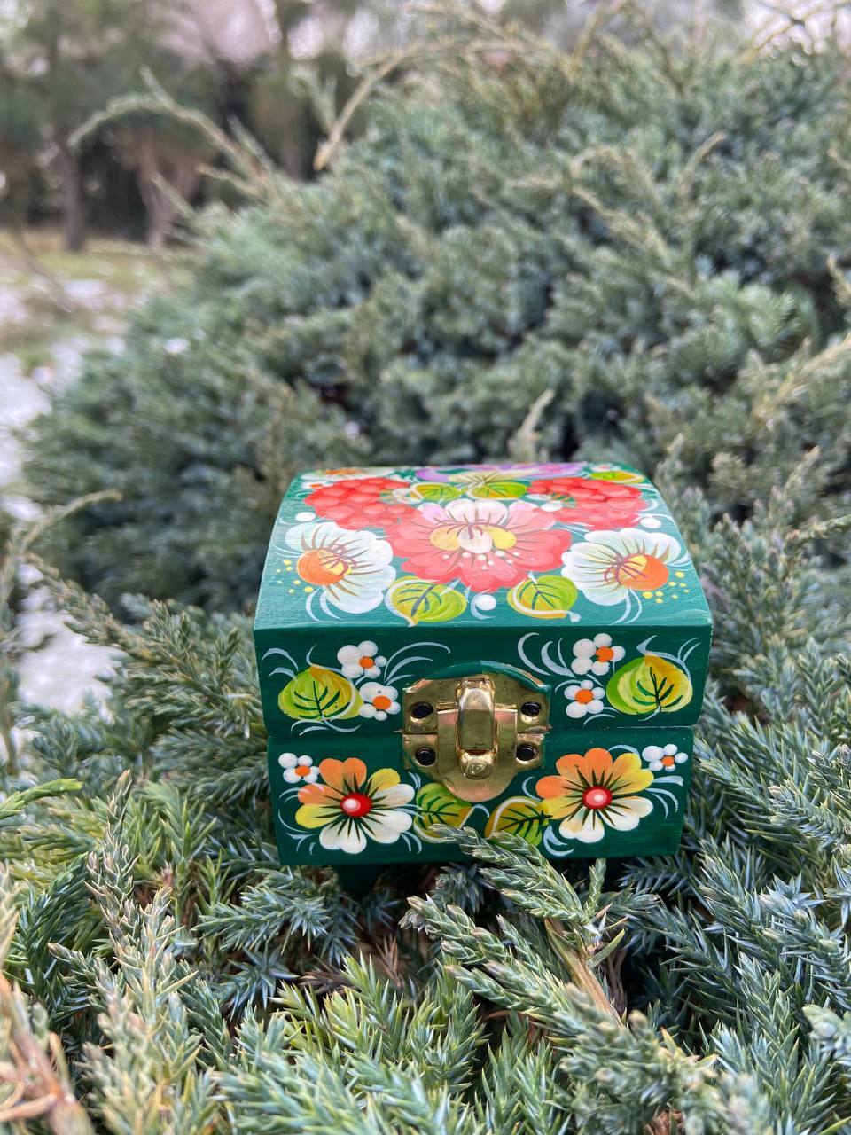 この美しいジュエリーボックスは、ペトリキフカ村のシナノキゾクの樹木から一から手作業で切り彫られ、細部にわたって丁寧に仕上げられています。シナノキの木材は、ウクライナでは御守りとしての意味を持ち、幸運と安全をもたらすと信じられています。