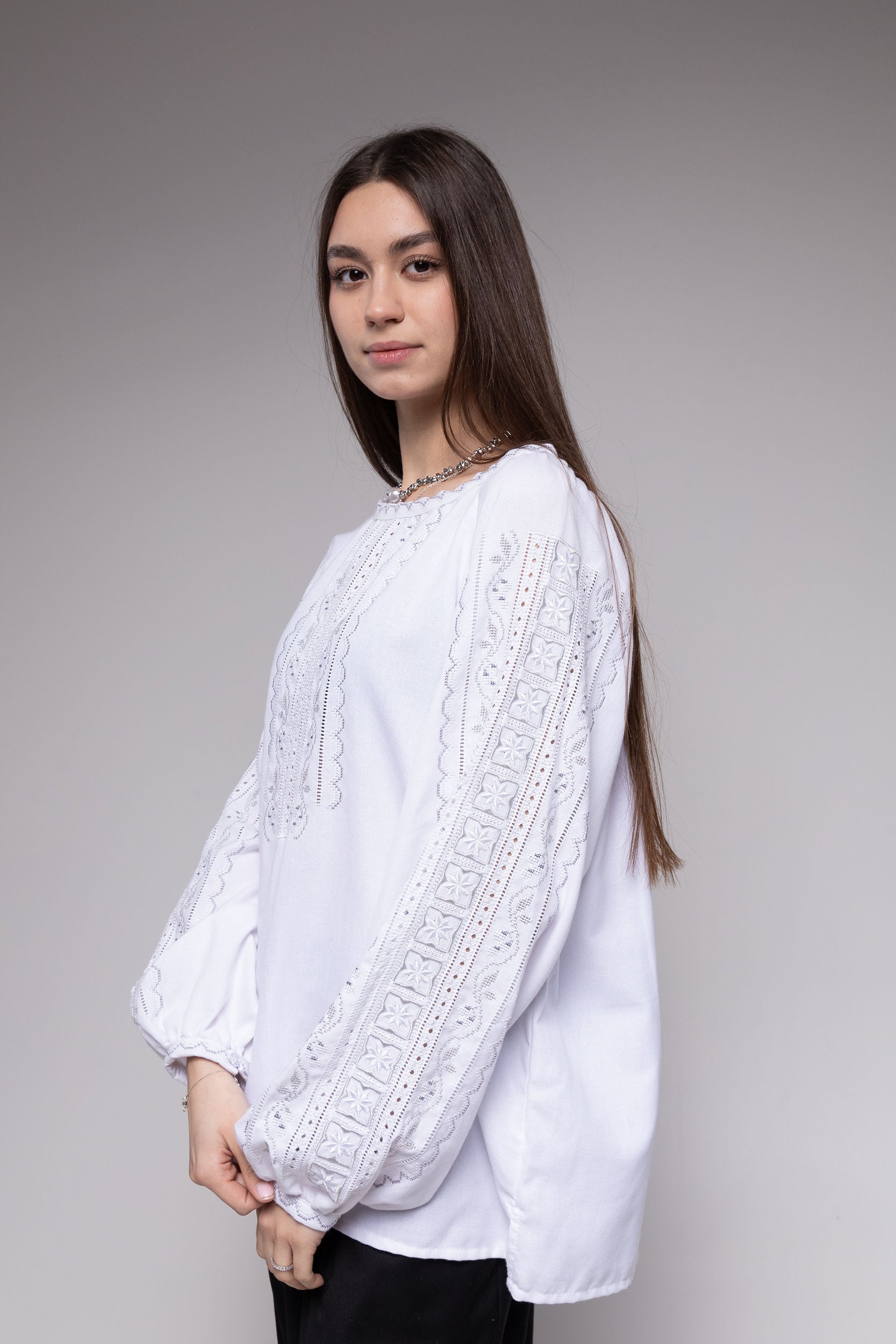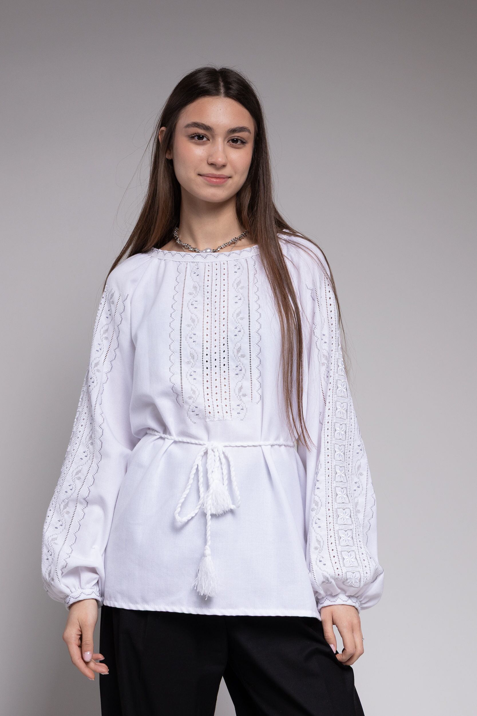ウクライナ刺繍ヴィシヴァンカ・クラシック 手刺繍 麻 レディース・フリーサイズ