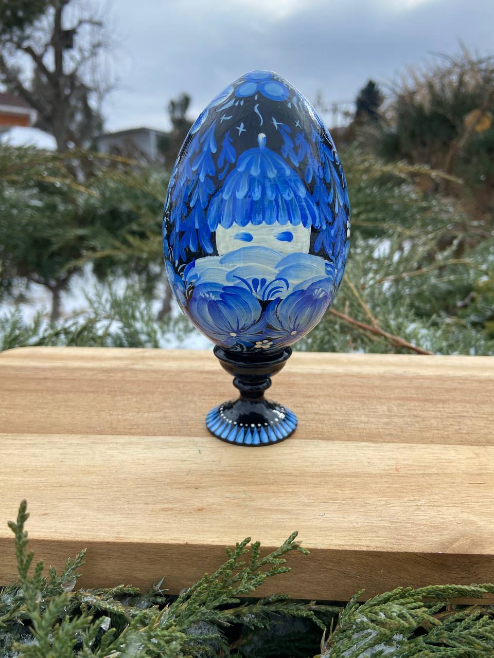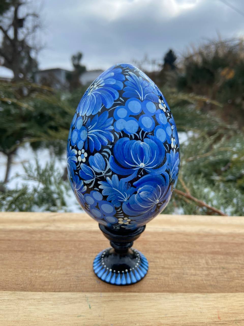 当店のプィサンカは、ウクライナのドニプロに位置するペトリキフカ村で、熟練の職人によってハンドペイントで制作されたイースターエッグです。スタンド付きでシーンを選ばずすぐに飾ることが可能です。