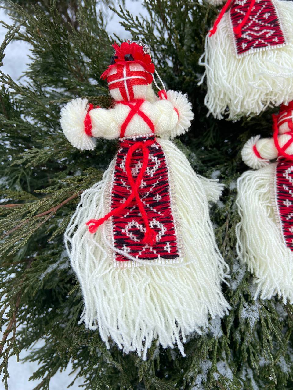 モタンカは「мотати(モターティ)」という動詞から名付けられ、針やハサミを使わずに布地を結んで作られる伝統的な人形です。これは、人形に目がないことにも繋がり、子供の魂が目を通して人形の中に入ることを防ぐための習慣です。