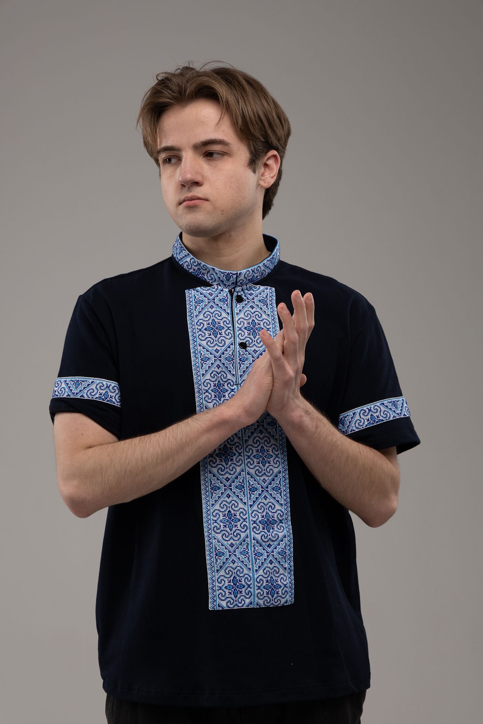 この作品は、ウクライナの伝統と美しさを象徴するヴィシヴァンカに用いられる手縫い刺繍を採用しています。過度な派手さを追求せず、日本の日常生活に自然に溶け込むデザインとなっております。しかし、それでいて洗練された高級感とカジュアルな雰囲気を両立させ、見る人を魅了する一着となっています。