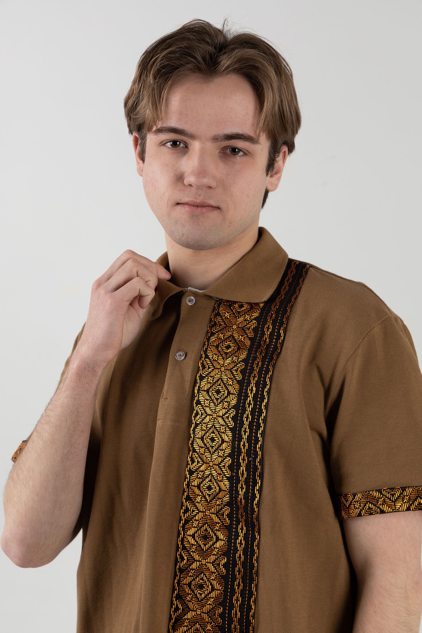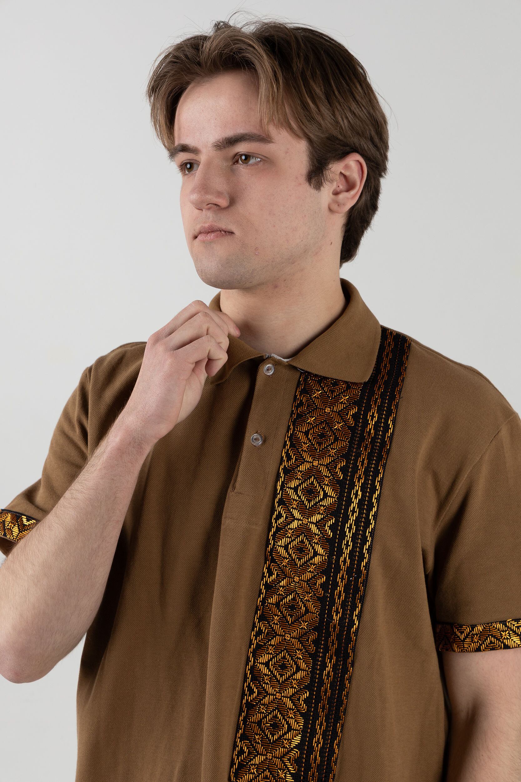 この作品は、ウクライナの伝統と美しさを象徴するヴィシヴァンカに用いられる手縫い刺繍を採用しています。過度な派手さを追求せず、日本の日常生活に自然に溶け込むデザインとなっております。しかし、それでいて洗練された高級感とカジュアルな雰囲気を両立させ、見る人を魅了する一着となっています。