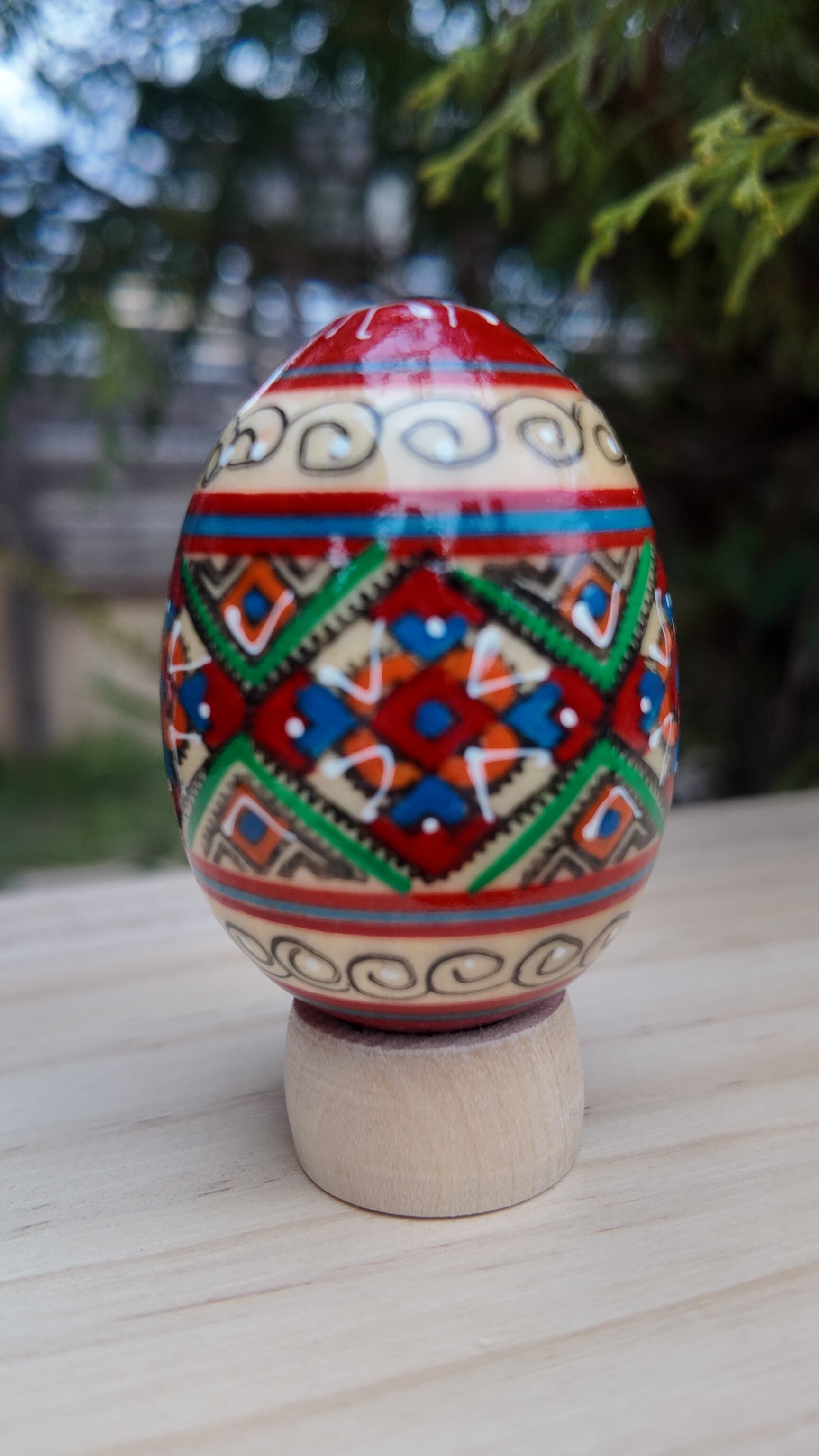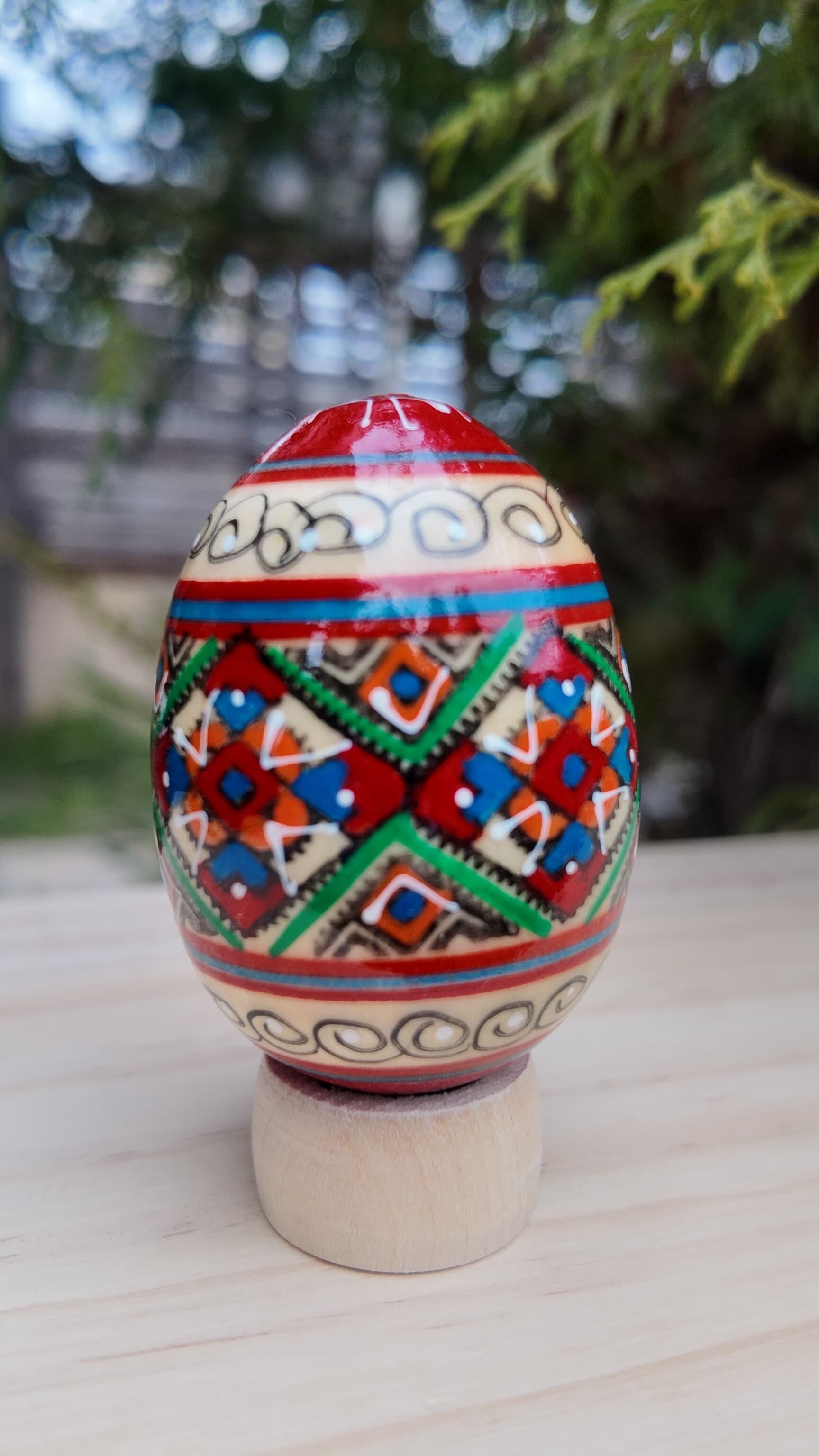 装飾用木製プィサンカ(イースターエッグ)with stand コロミヤモデル