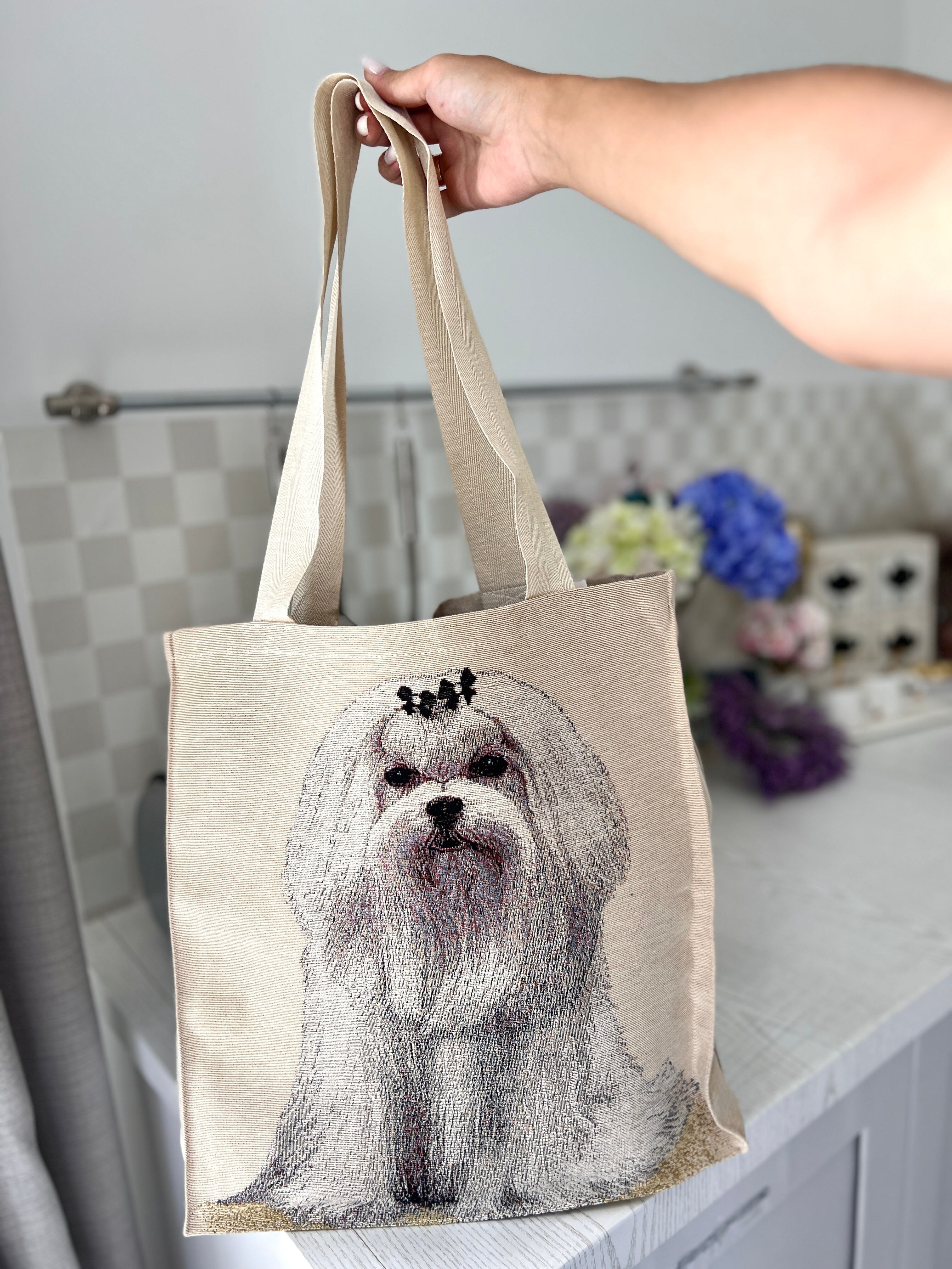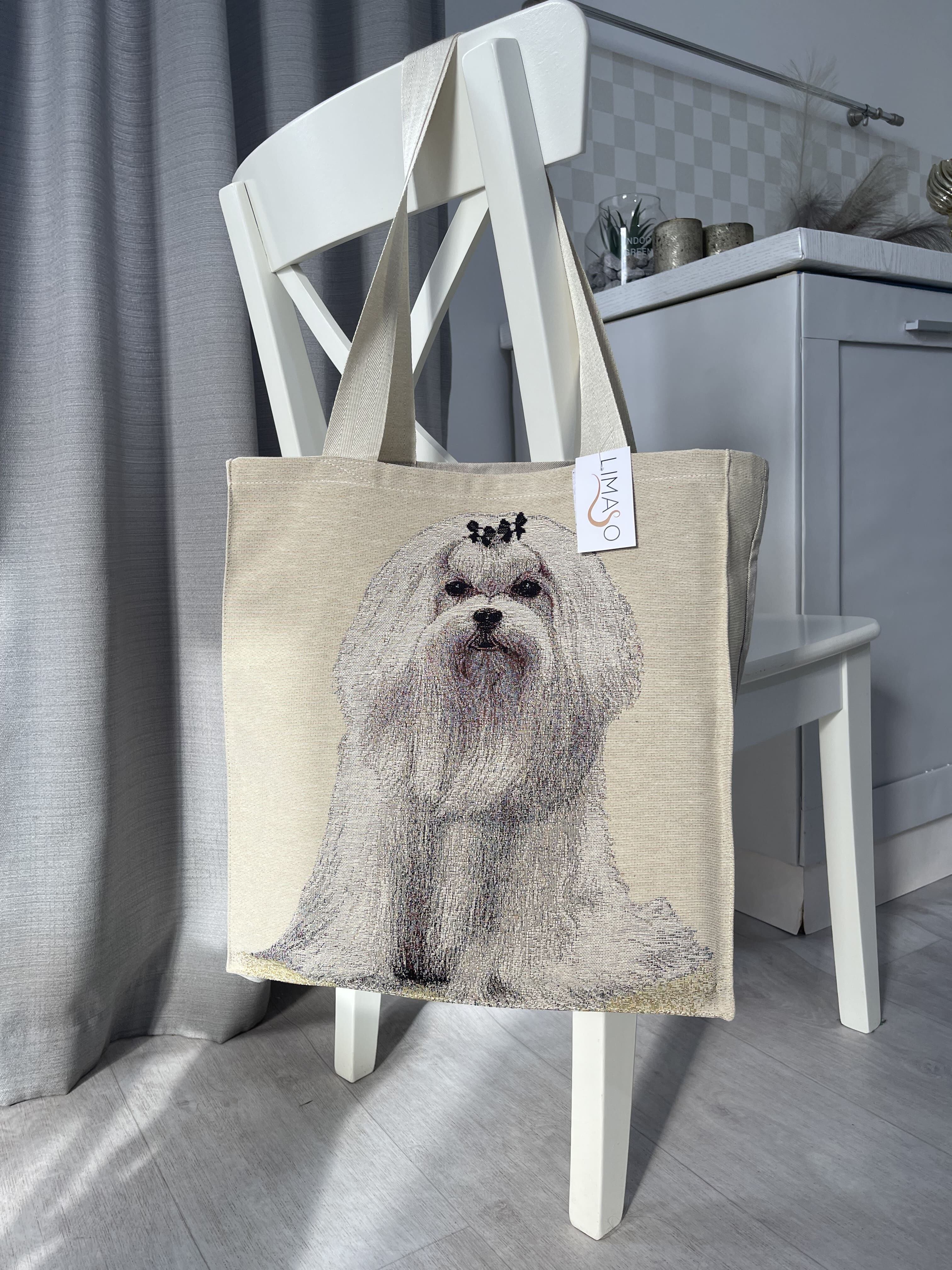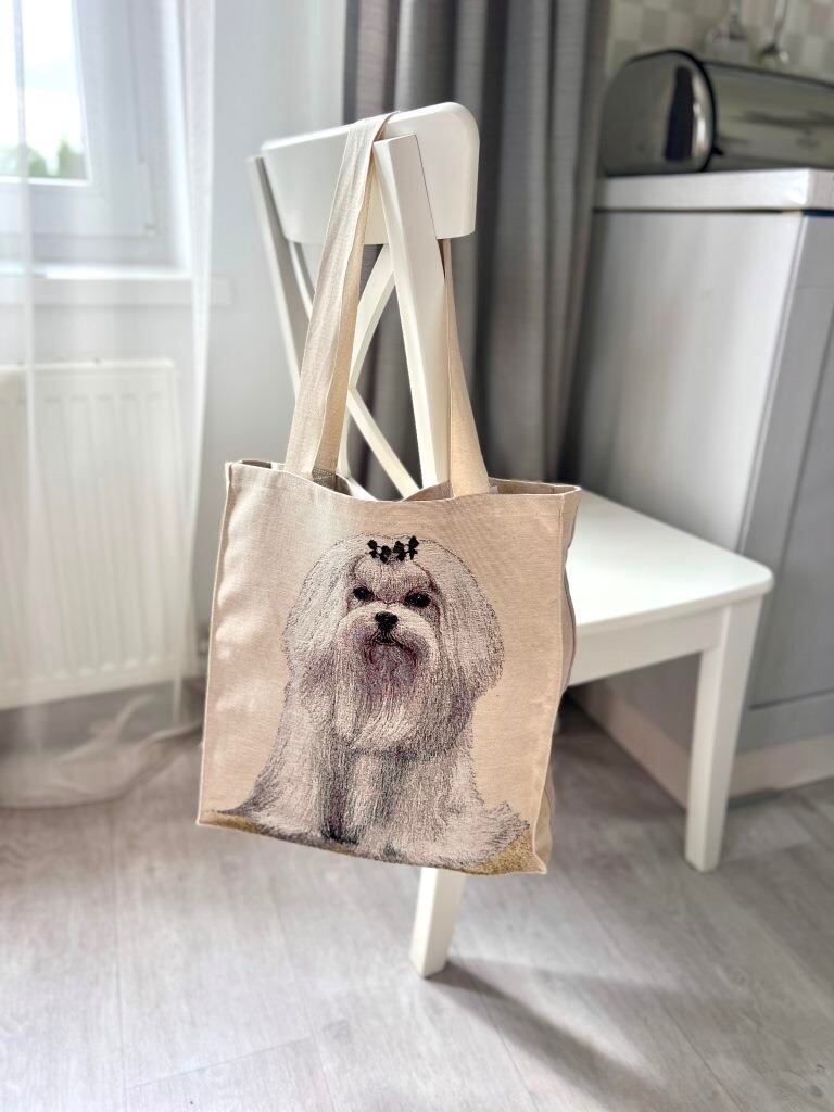 タペストリーショッピングバッグ ウクライナ製 MALTES マルチーズ 犬 ドッグ柄