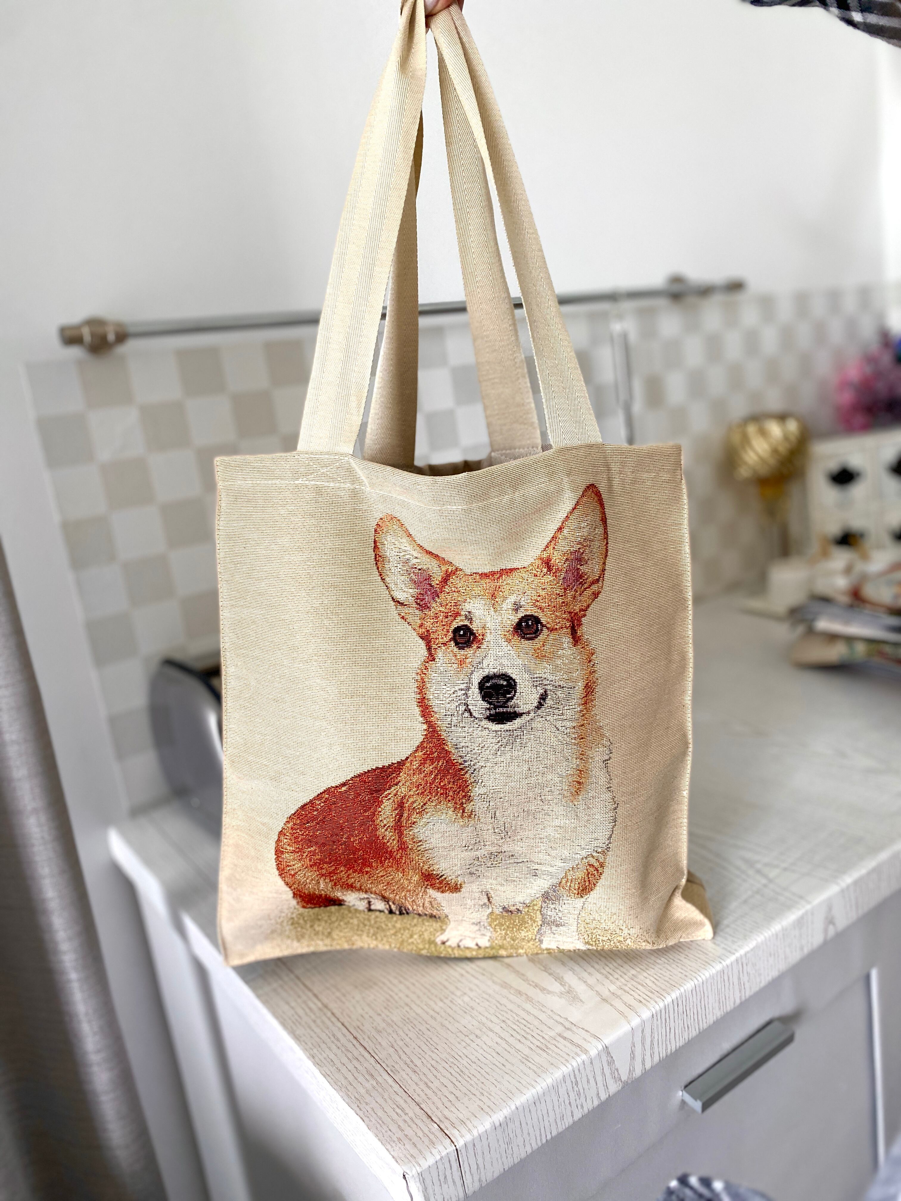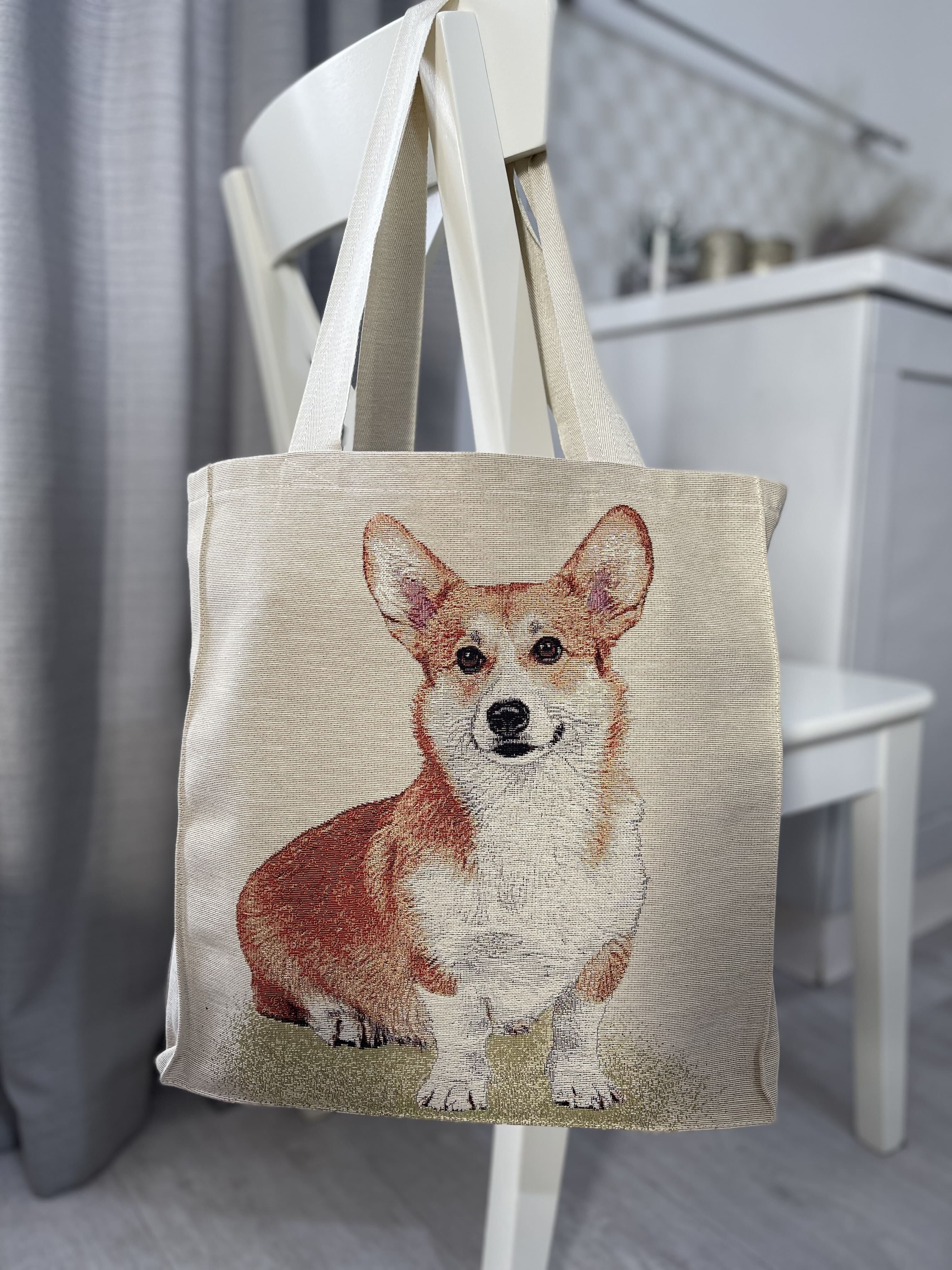 タペストリーショッピングバッグ ウクライナ製 CORGI コーギー 犬 ドッグ柄