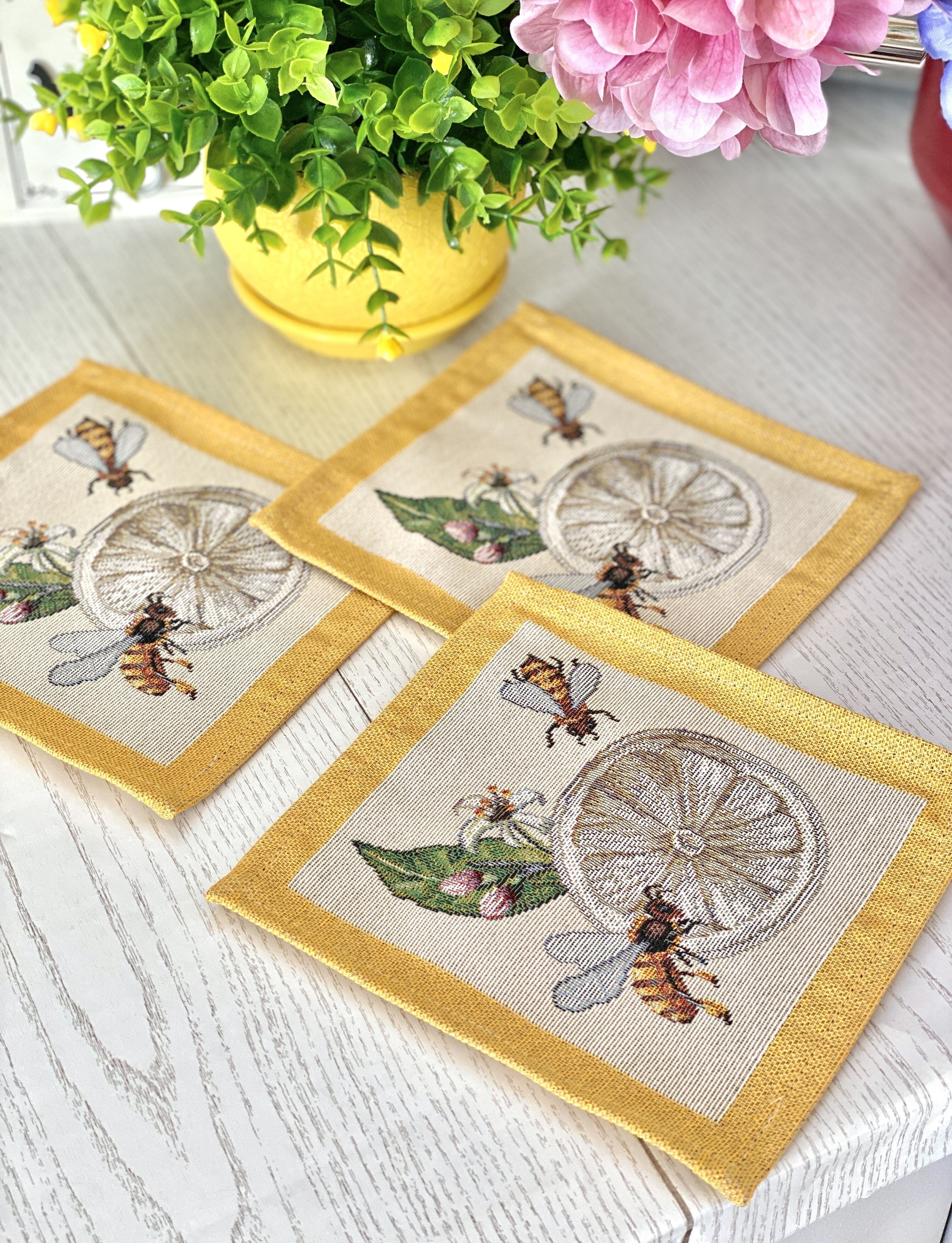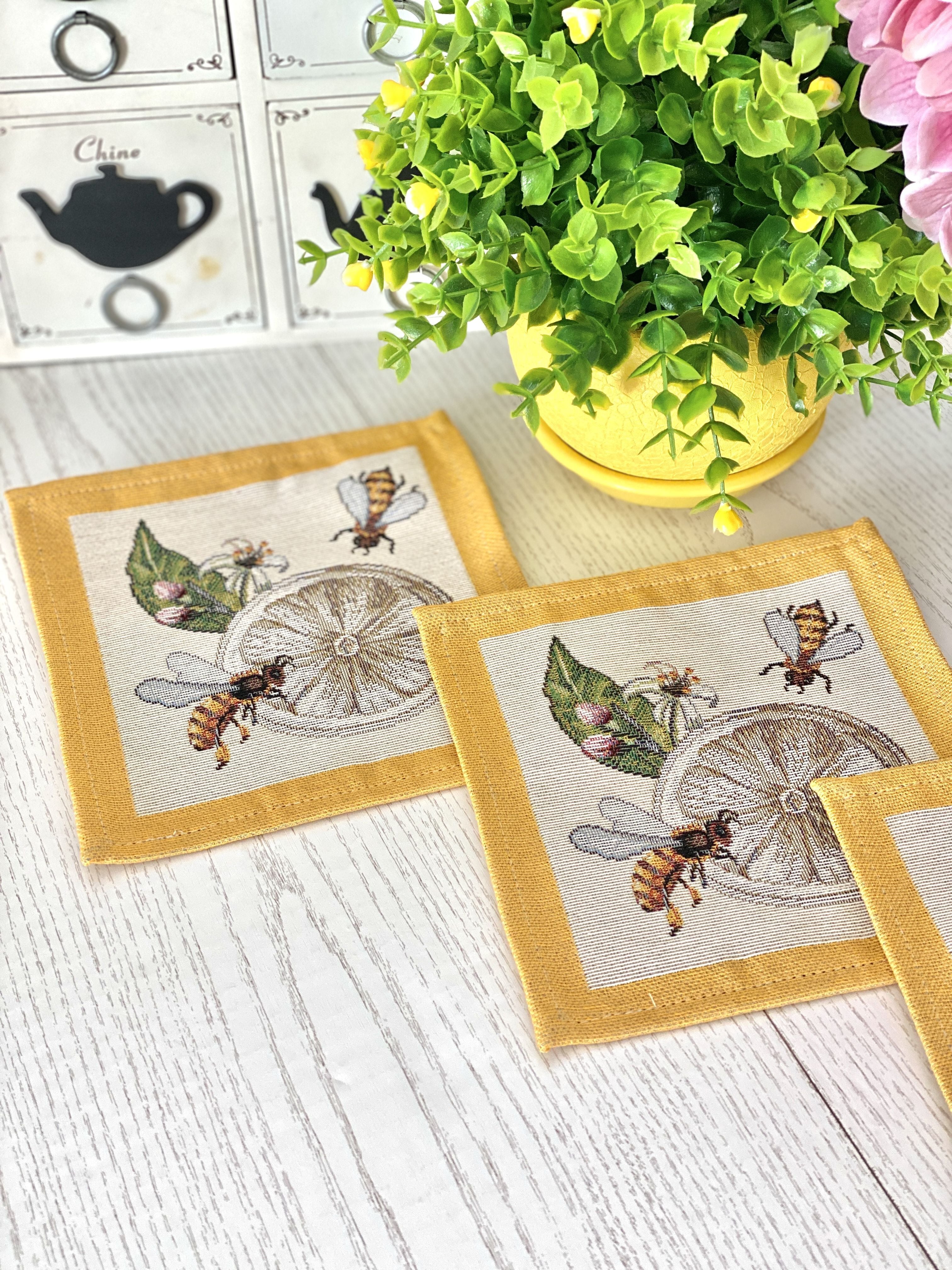 タペストリースクエアマット ウクライナ製 みつばち ビー 花 テーブルセンター コースター