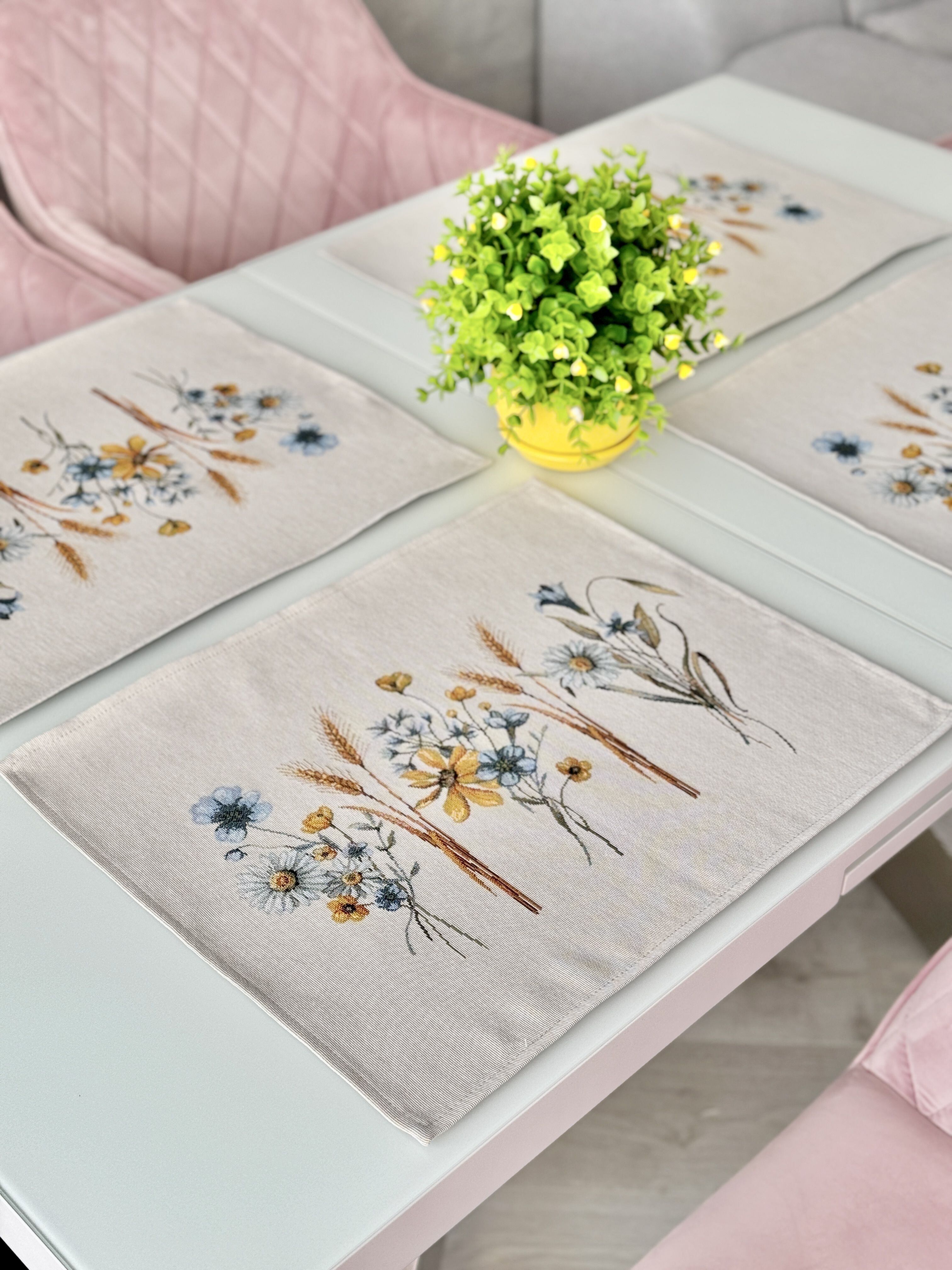 タペストリースクエアマット 小麦 花 ウクライナ製 テーブルセンター