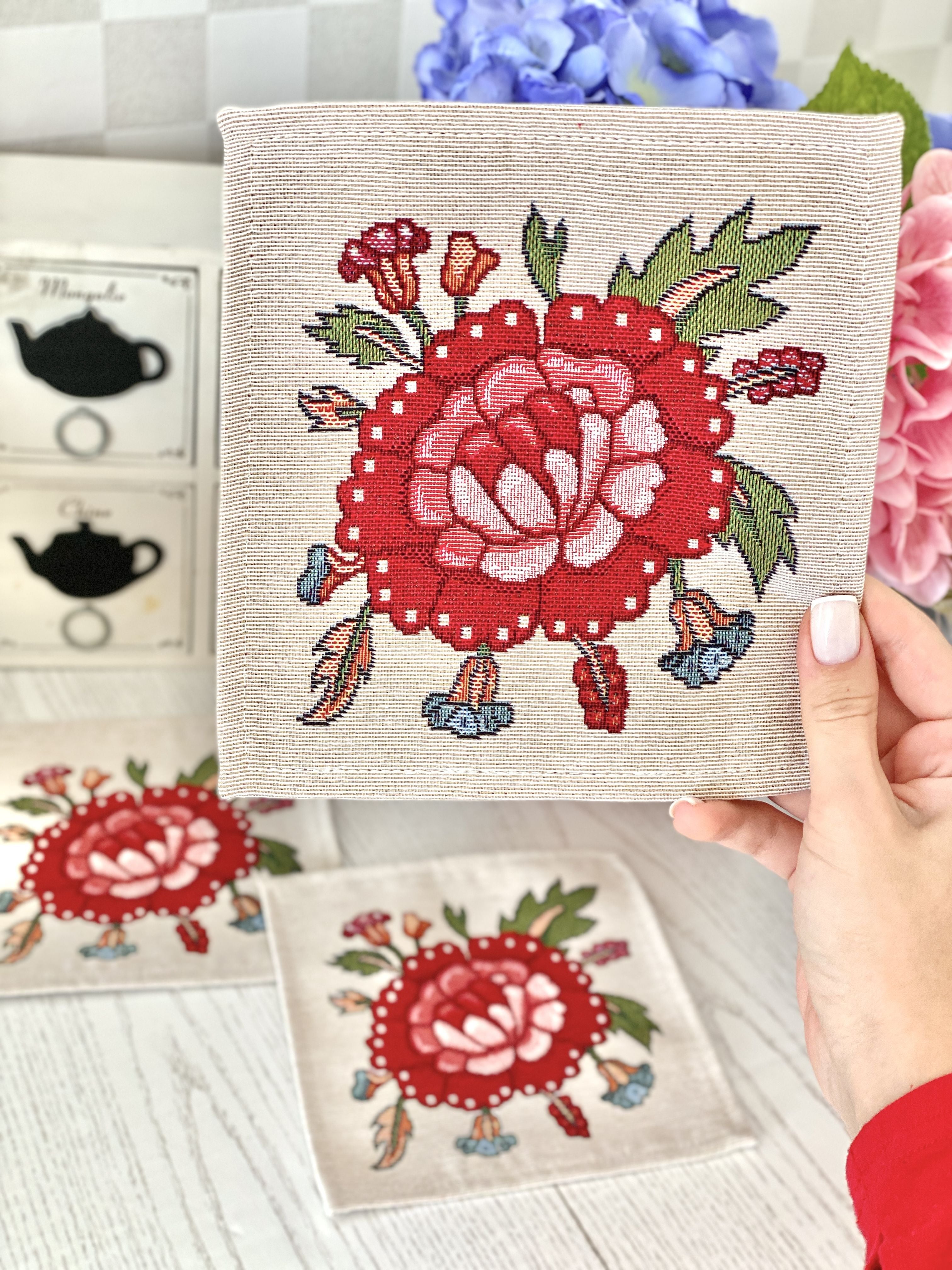 タペストリースクエアマット 花 ウクライナ製 テーブルセンター コースター