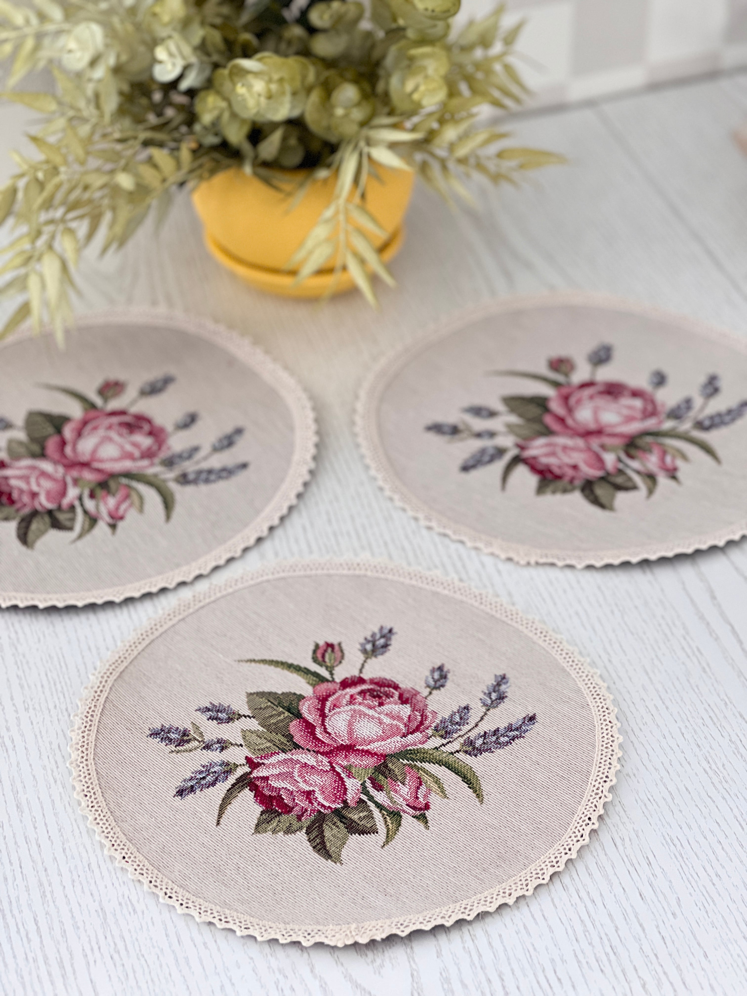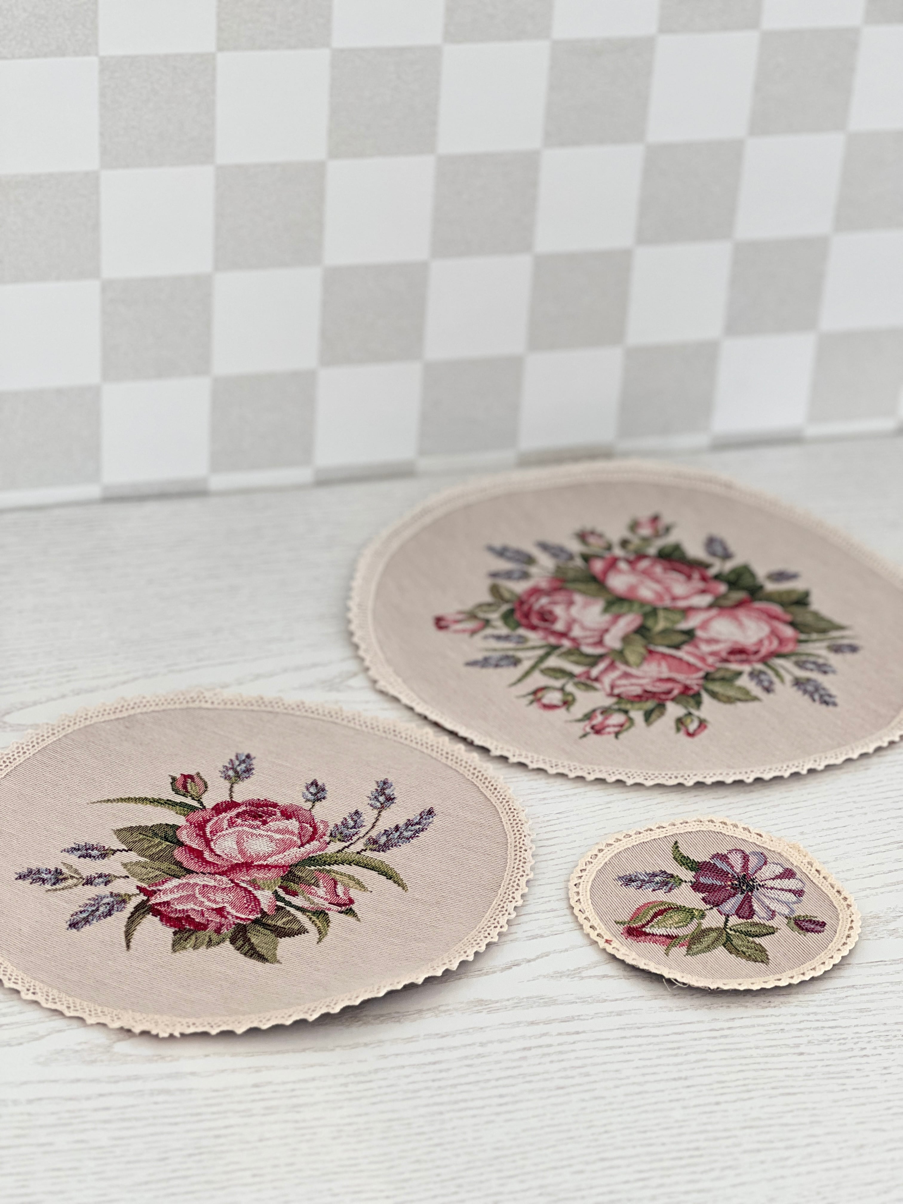 タペストリーラウンドマットは、一年を通してご自宅に温かみと華やかさを添えてくれます。優れた品質と耐久性を誇り、特別なお手入れを必要としません。色落ちしにくく、汚れも簡単に落とせるため、日常使いにも最適です。また、アイロン掛けも手軽に行える実用的なアイテムです。