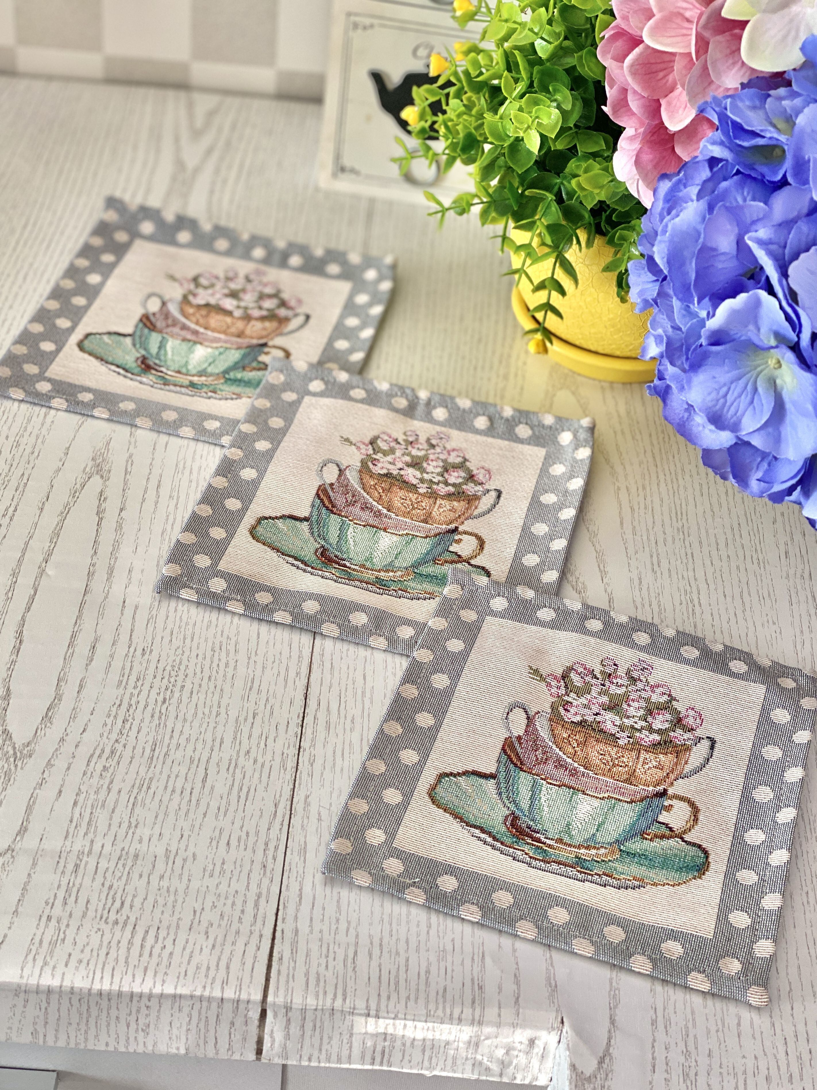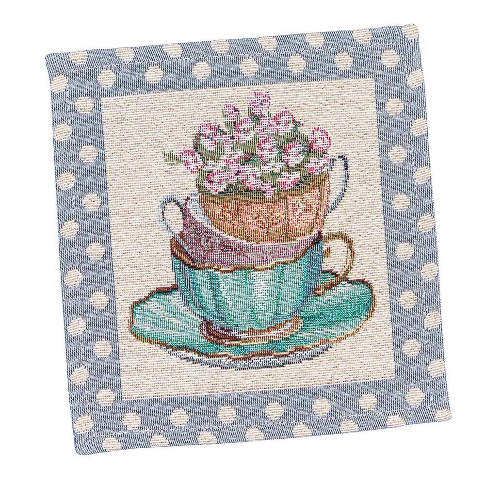 タペストリースクエアマット ティーカップ 花 ウクライナ製 テーブルセンター コースター