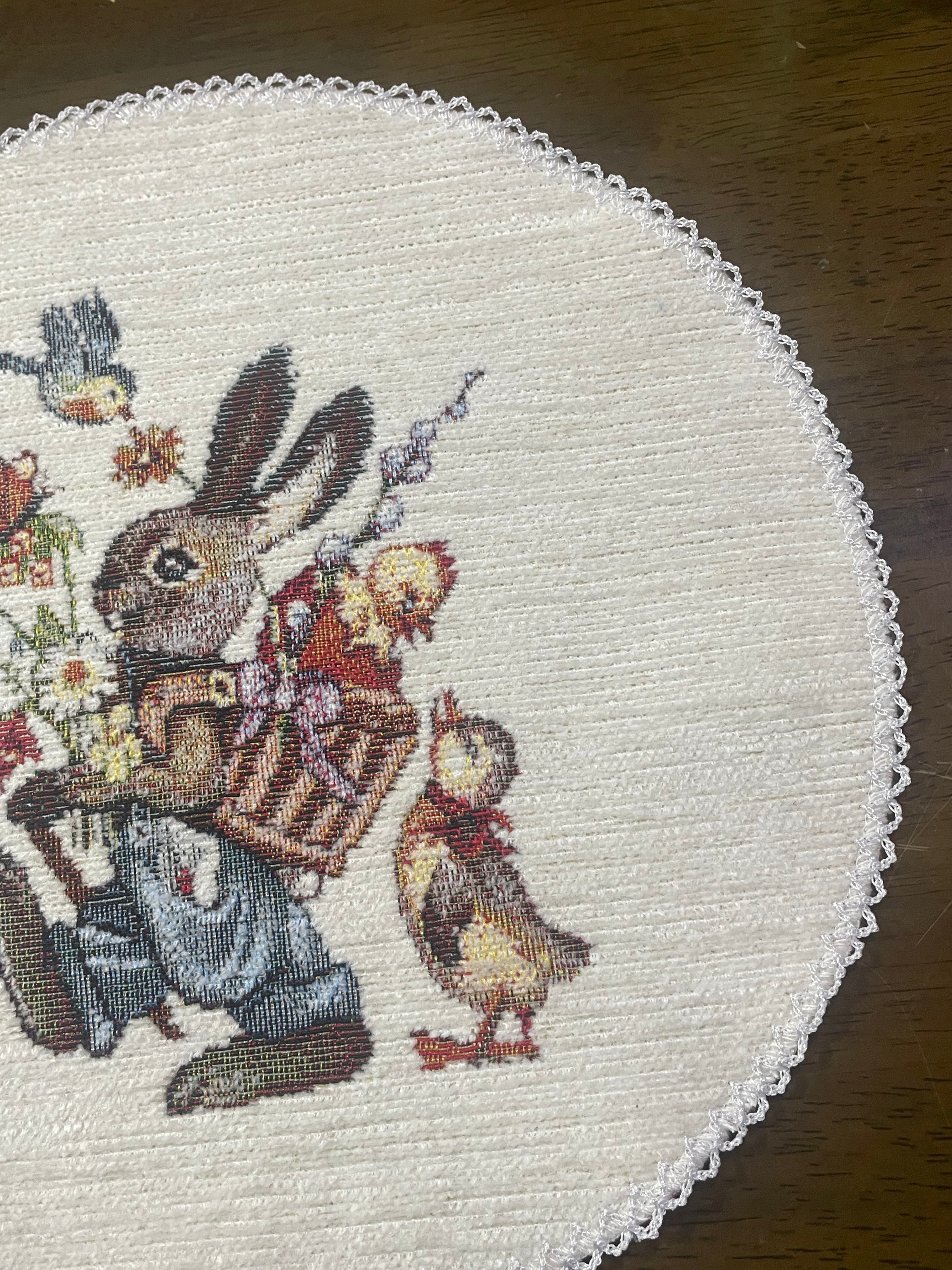 タペストリーラウンドマット ラビット バード ウクライナ製 テーブルセンター コースター
