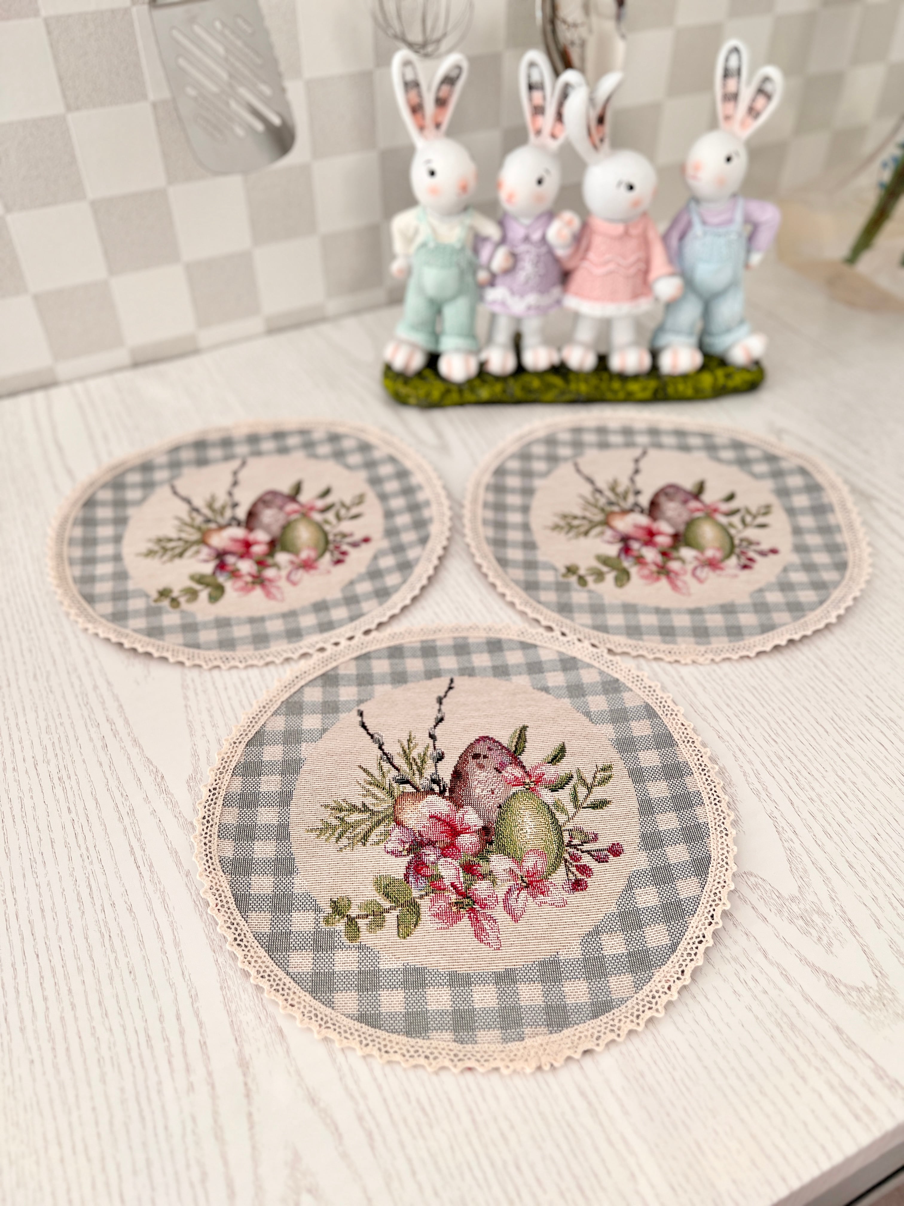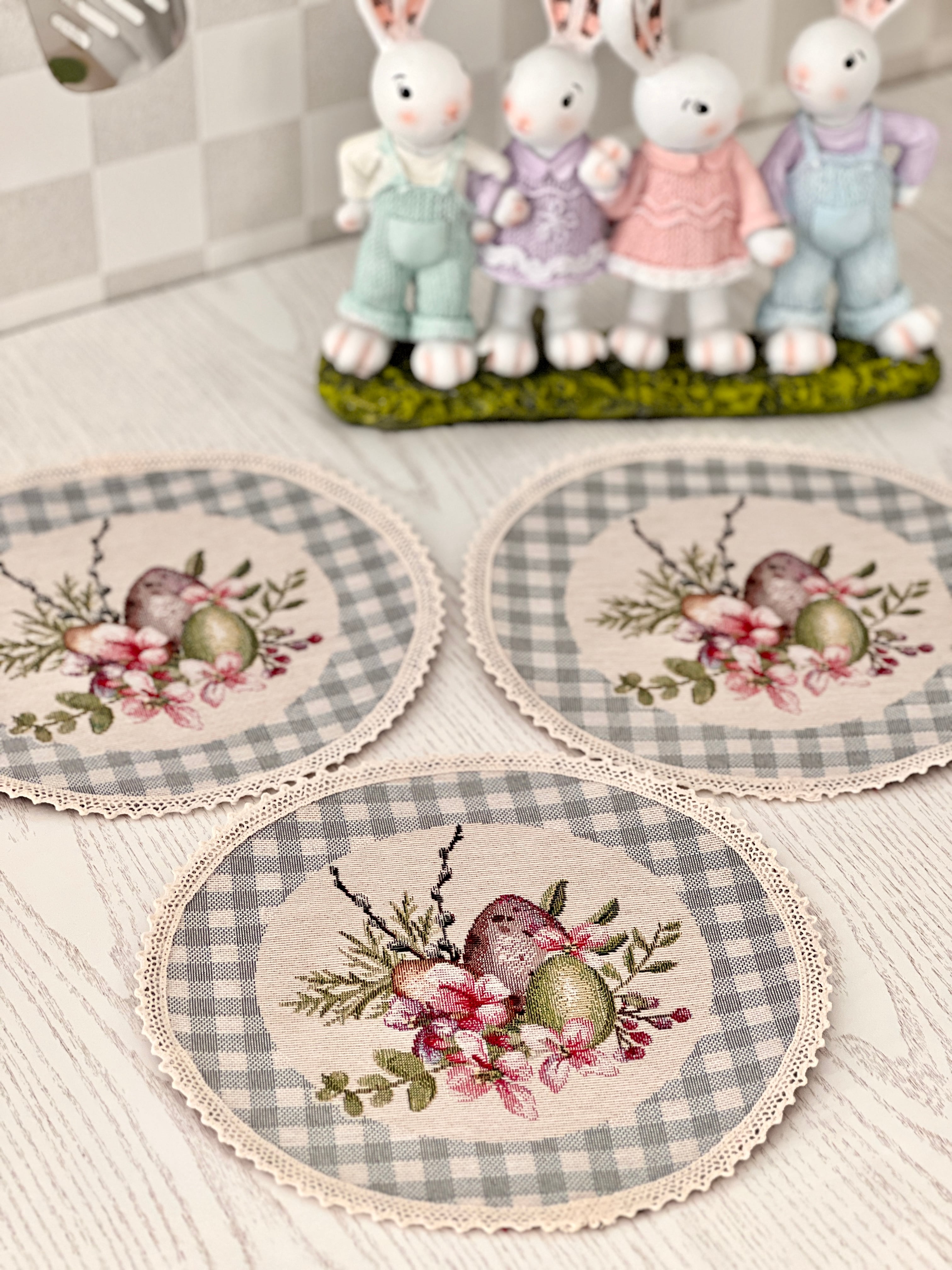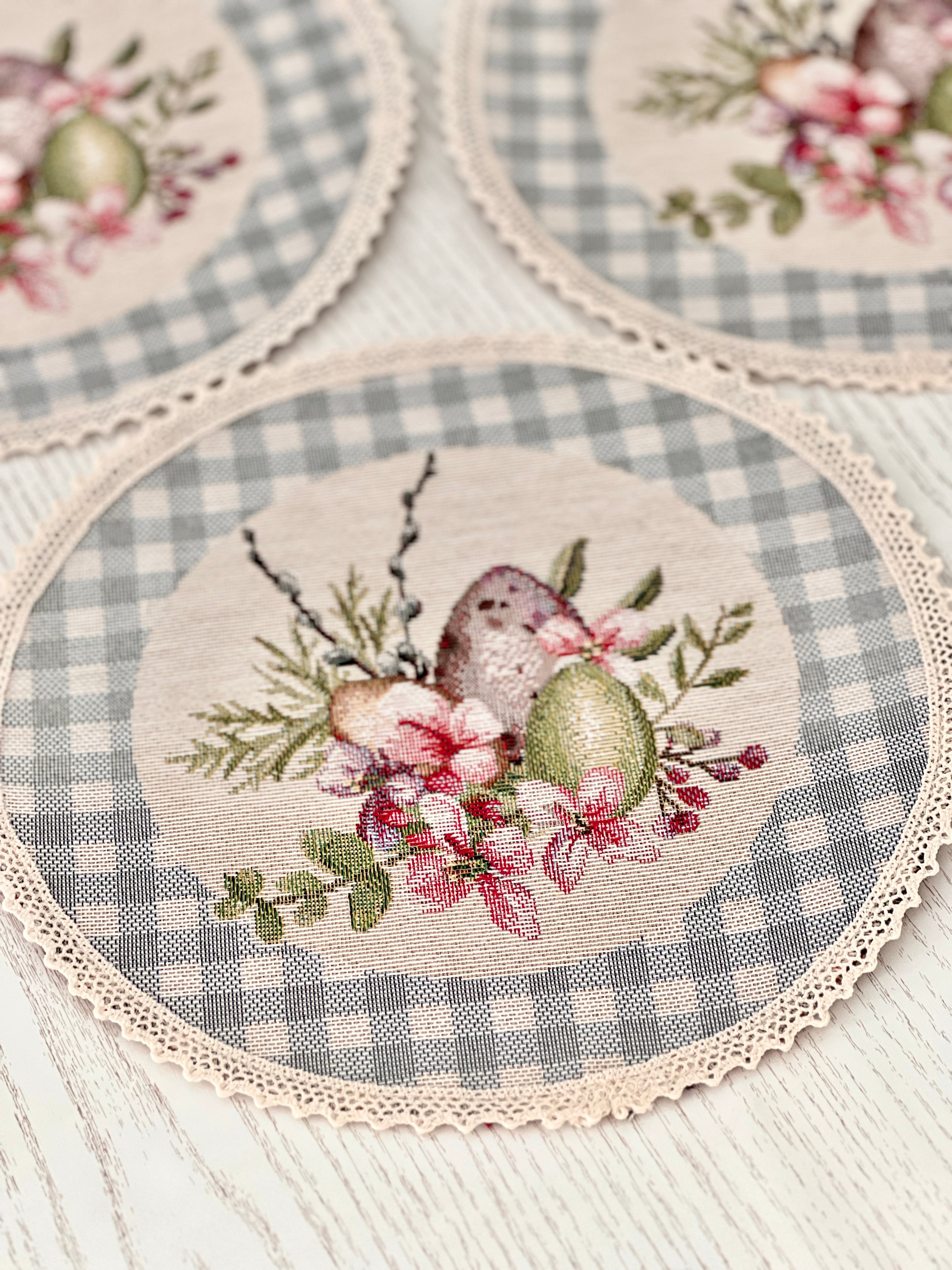 タペストリーラウンドマット イースターエッグ フラワー ウクライナ製 テーブルセンター コースター