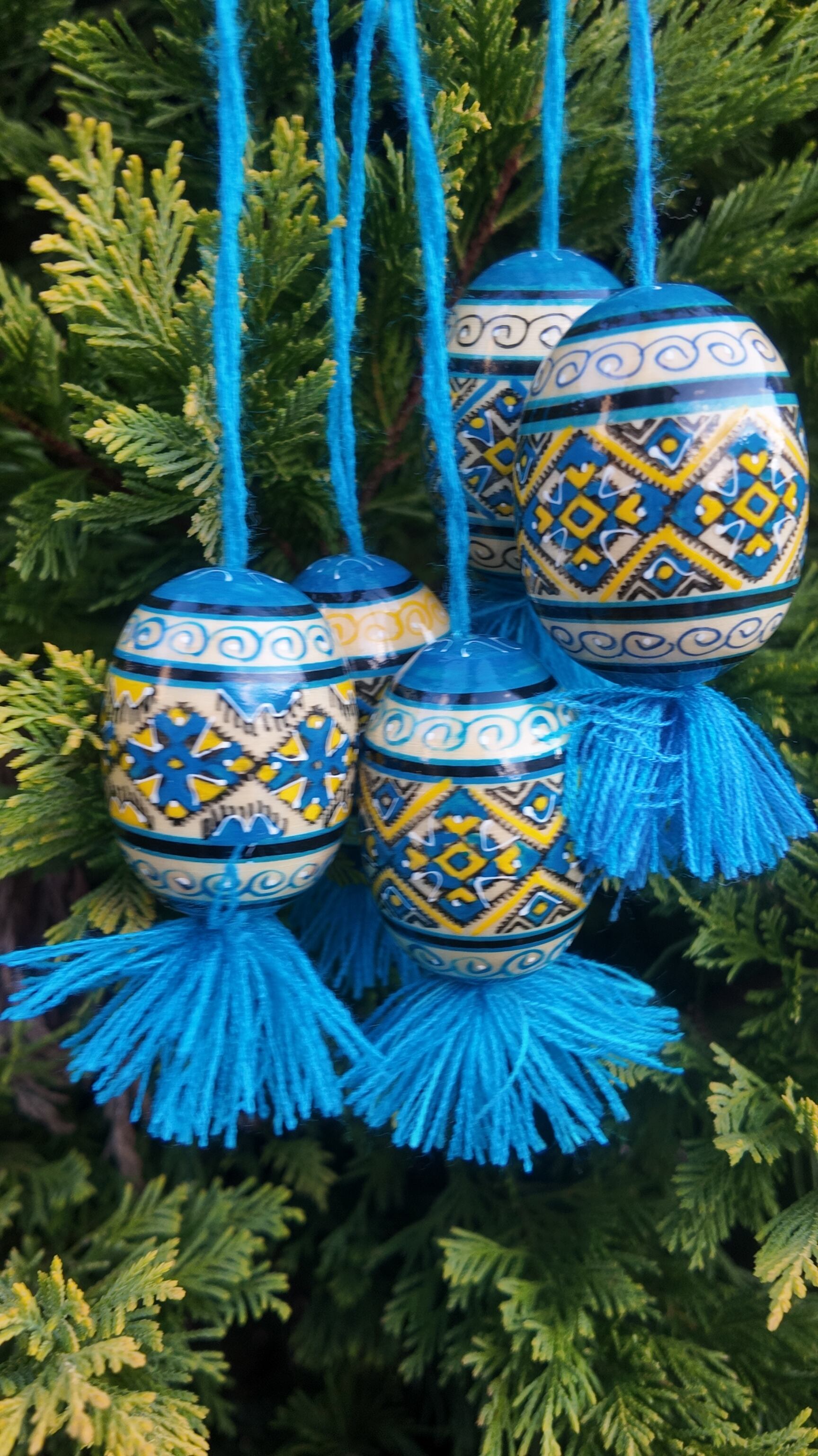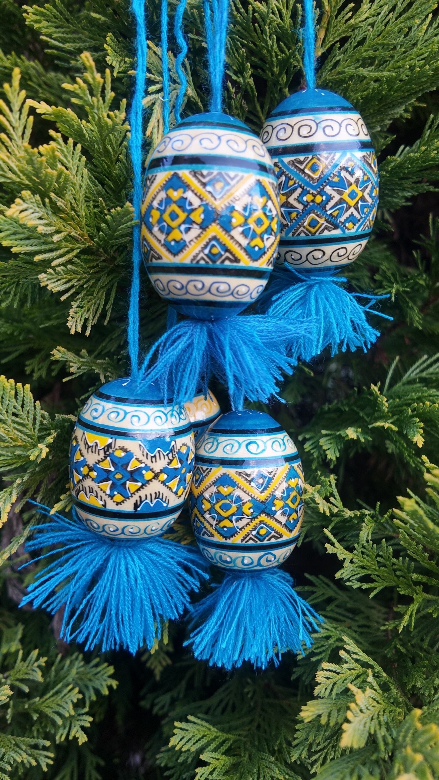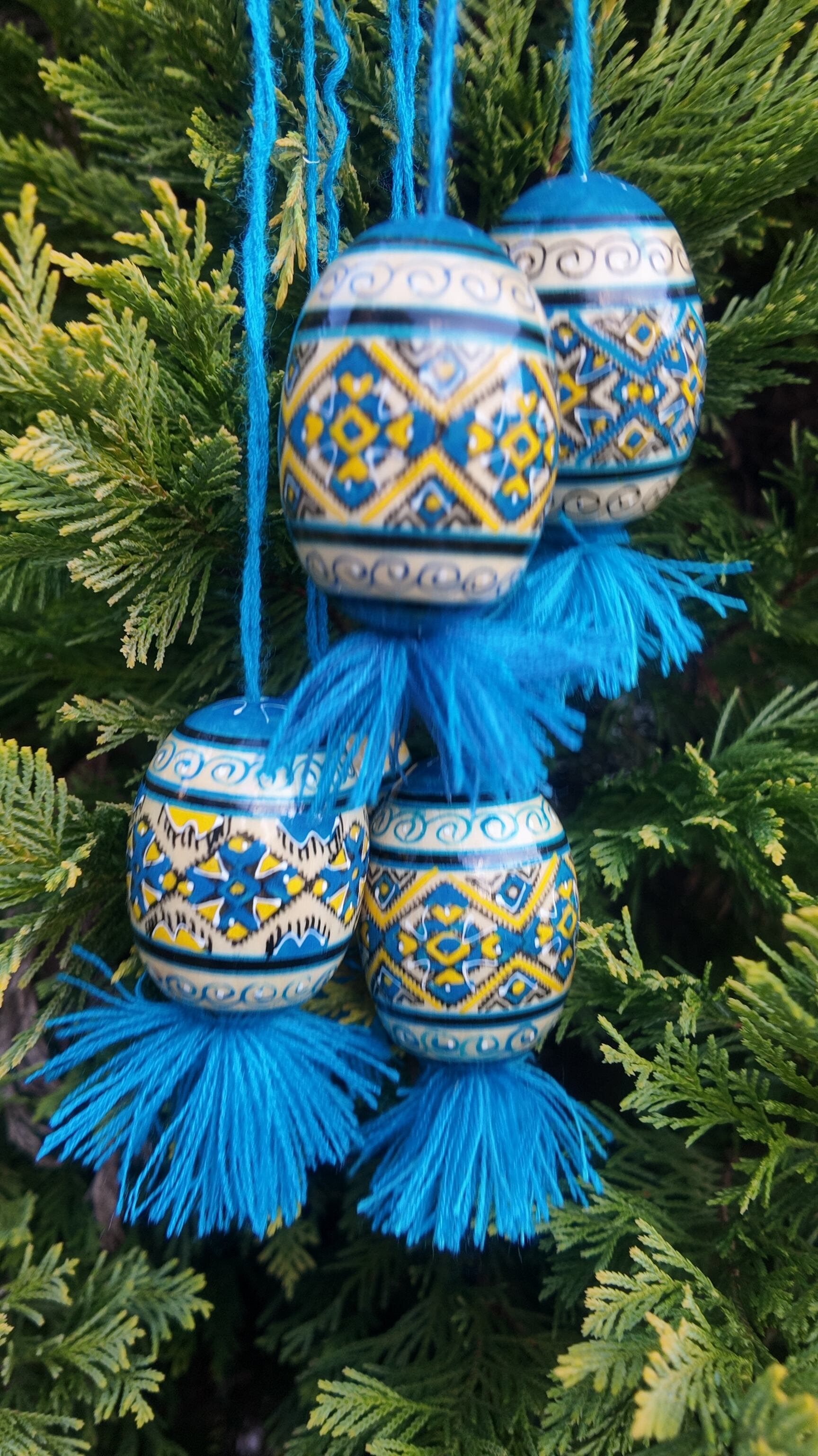 それぞれの卵は、ウクライナの熟練した職人によって手描きで描かれており、幾何学的なデザインが特徴です。これらのエッグは、ウクライナの伝統的な技術と芸術が融合した逸品であり、各々がユニークでありながらも、文化と歴史の深い繋がりを感じさせる作品です。