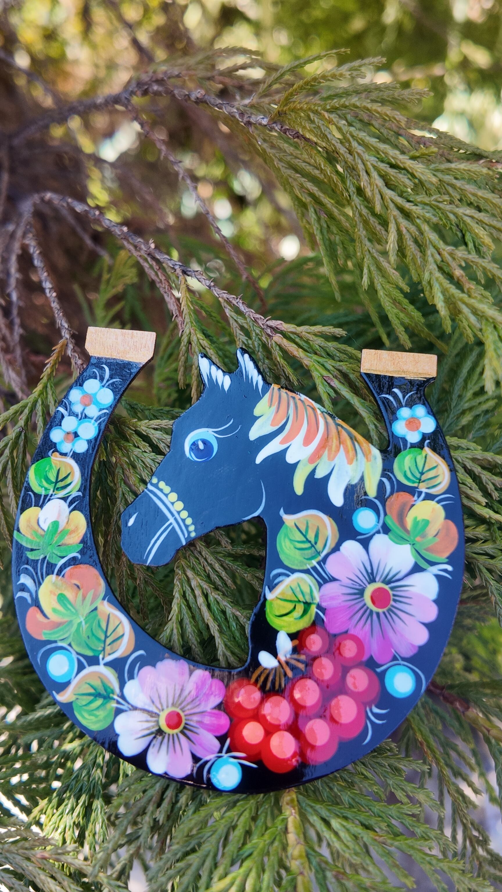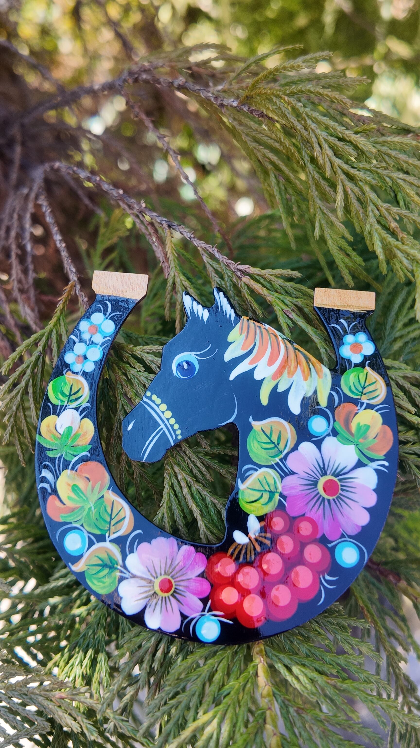 ウクライナ伝統絵画 ペトリキウカ塗り 木製ブローチ(ホメンコ作)馬