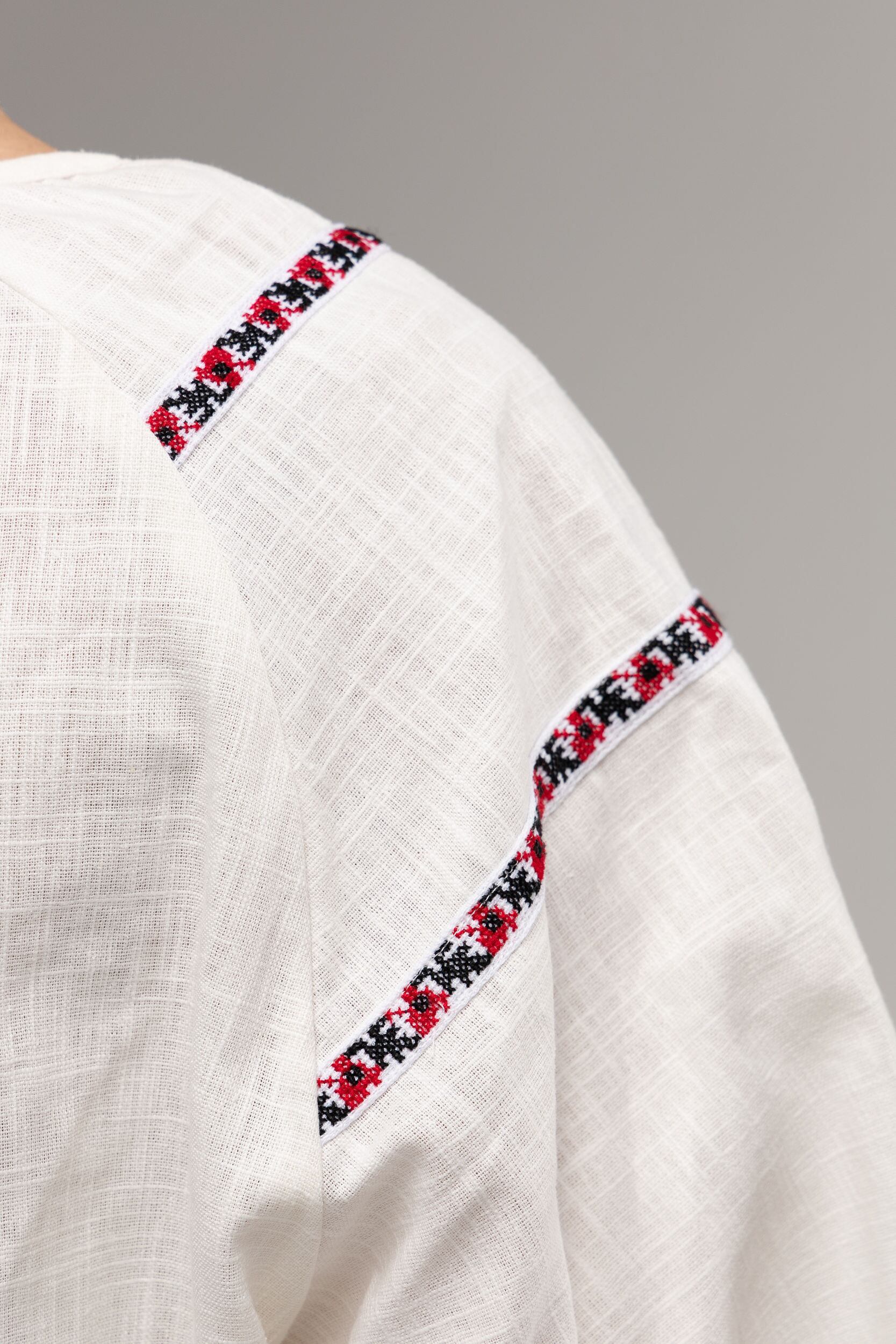 この作品は、ウクライナの伝統と美しさを象徴するヴィシヴァンカの刺繍を採用しています。過度な派手さを追求せず、日本の日常生活に自然に溶け込むデザインとなっております。しかし、それでいて洗練された高級感とカジュアルな雰囲気を両立させ、見る人を魅了する一着となっています。