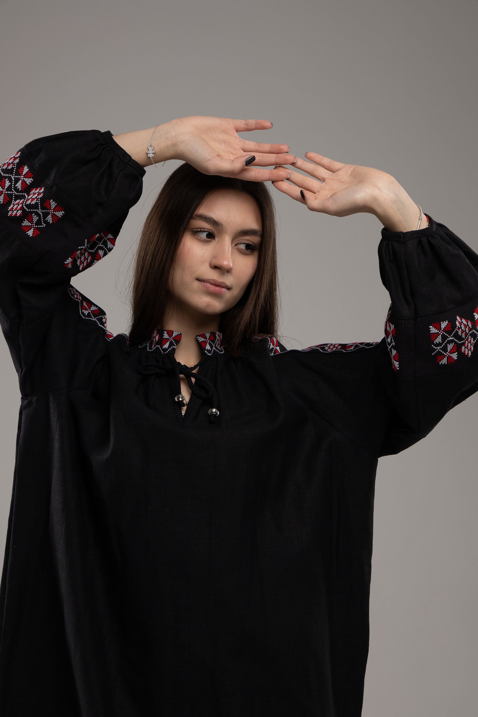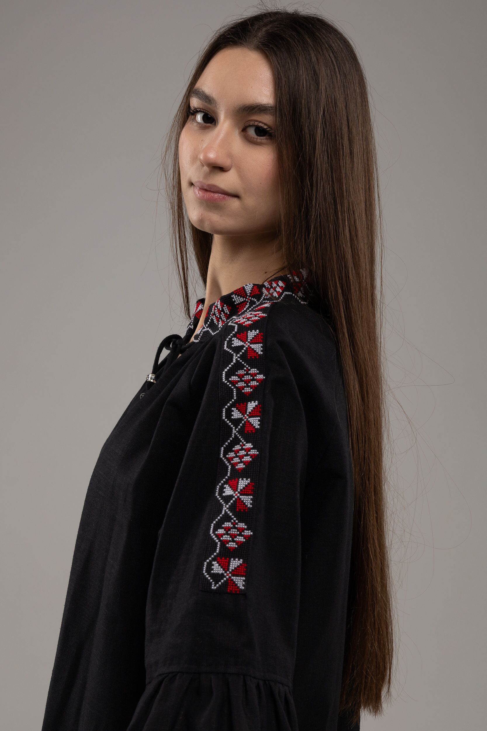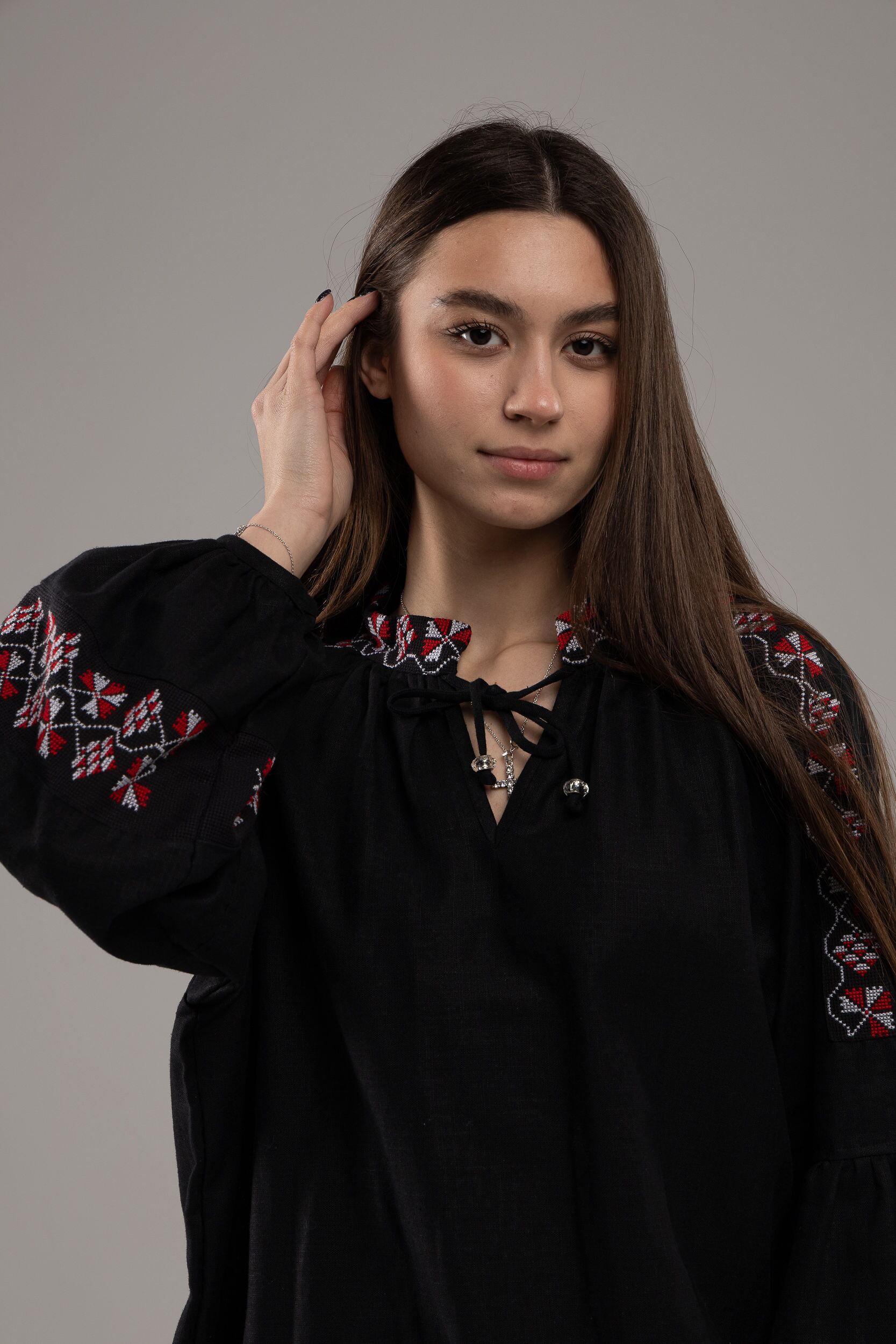 この作品は、ウクライナの伝統と美しさを象徴するヴィシヴァンカの刺繍を採用しています。過度な派手さを追求せず、日本の日常生活に自然に溶け込むデザインとなっております。しかし、それでいて洗練された高級感とカジュアルな雰囲気を両立させ、見る人を魅了する一着となっています。