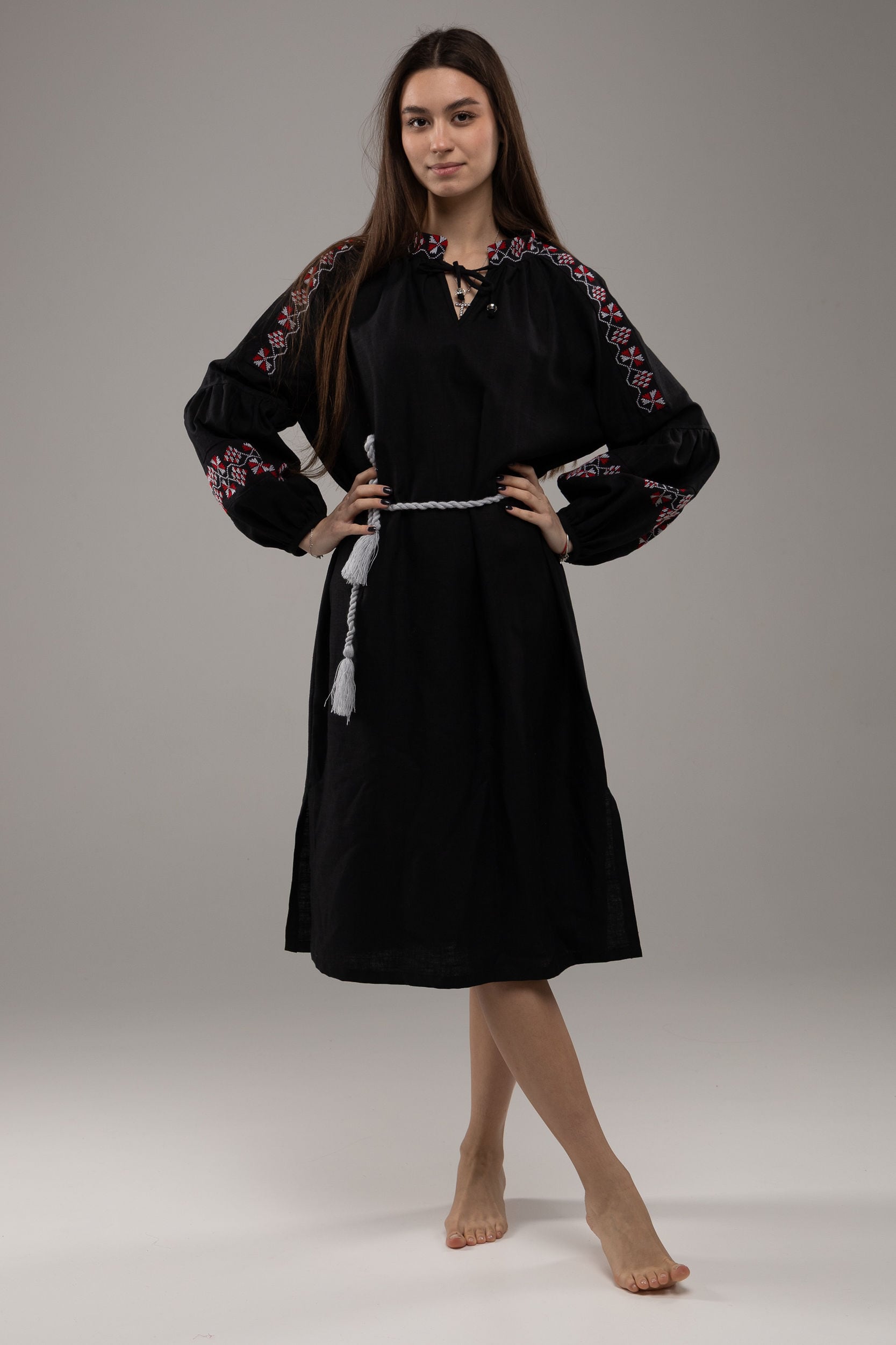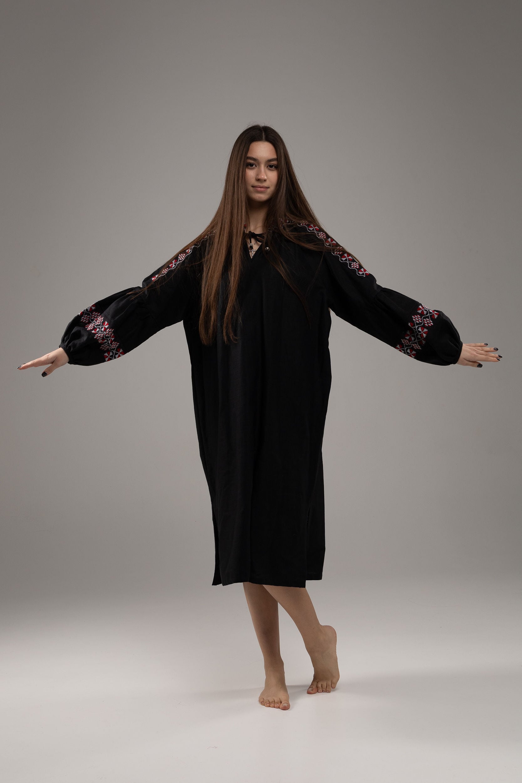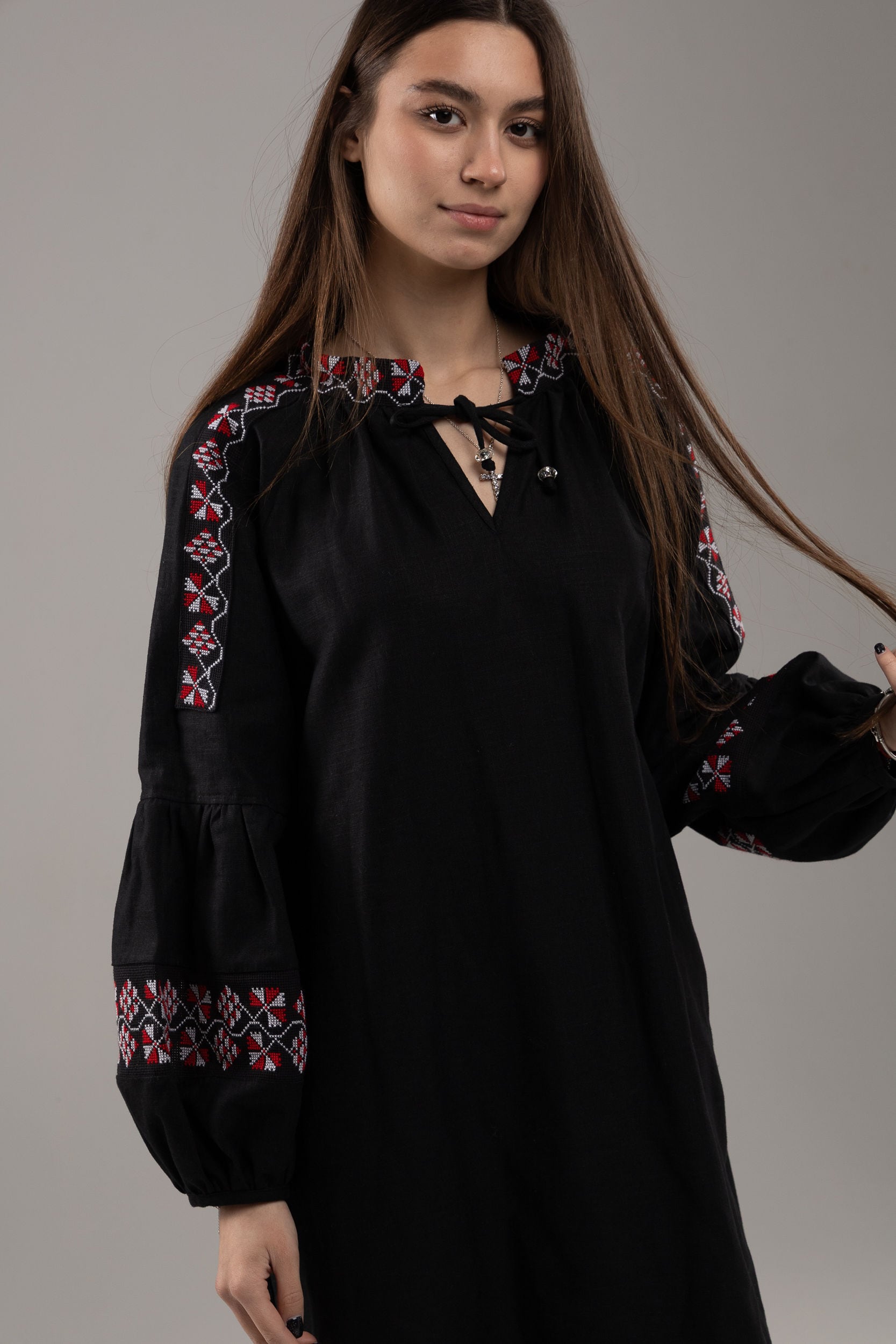 この作品は、ウクライナの伝統と美しさを象徴するヴィシヴァンカの刺繍を採用しています。過度な派手さを追求せず、日本の日常生活に自然に溶け込むデザインとなっております。しかし、それでいて洗練された高級感とカジュアルな雰囲気を両立させ、見る人を魅了する一着となっています。