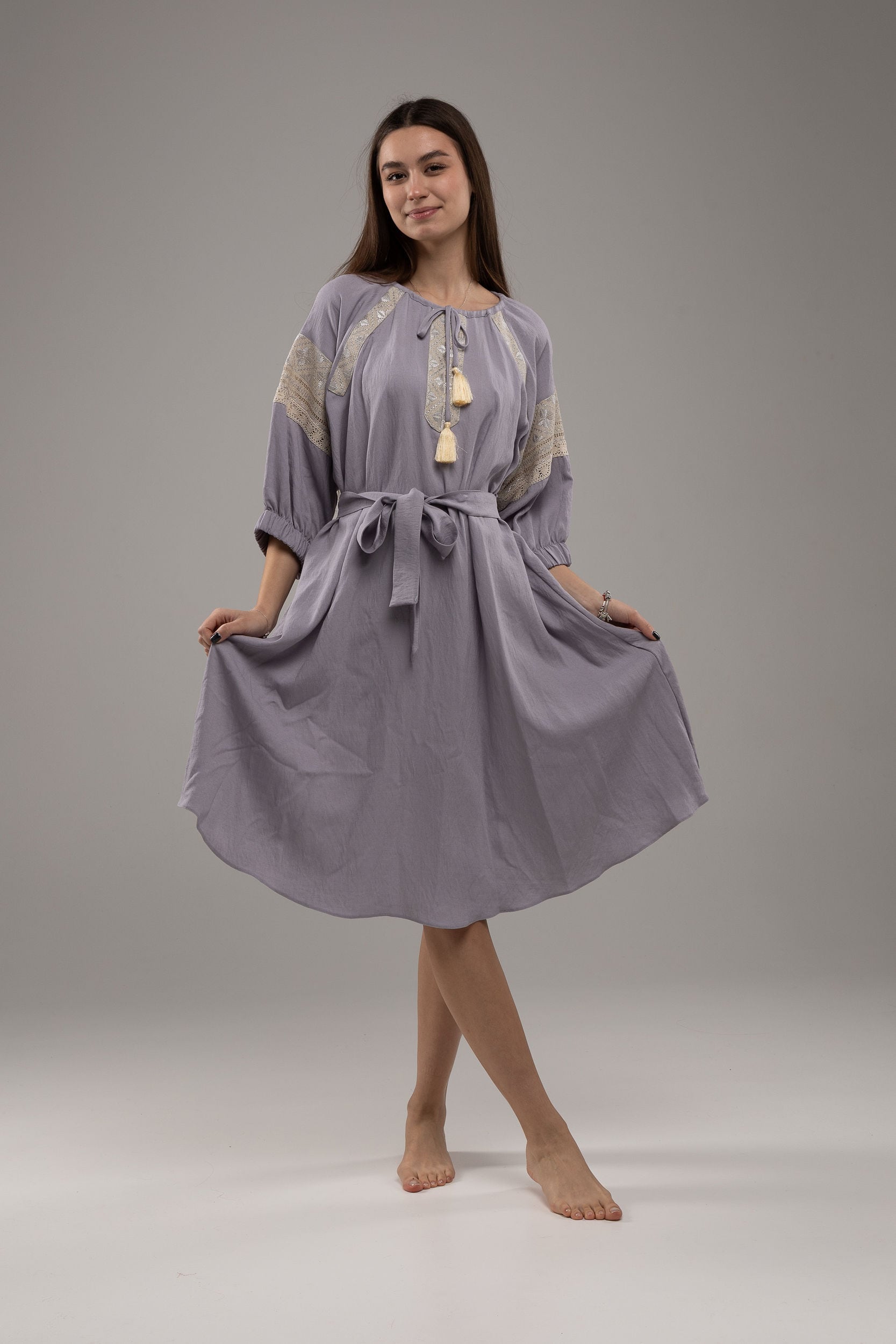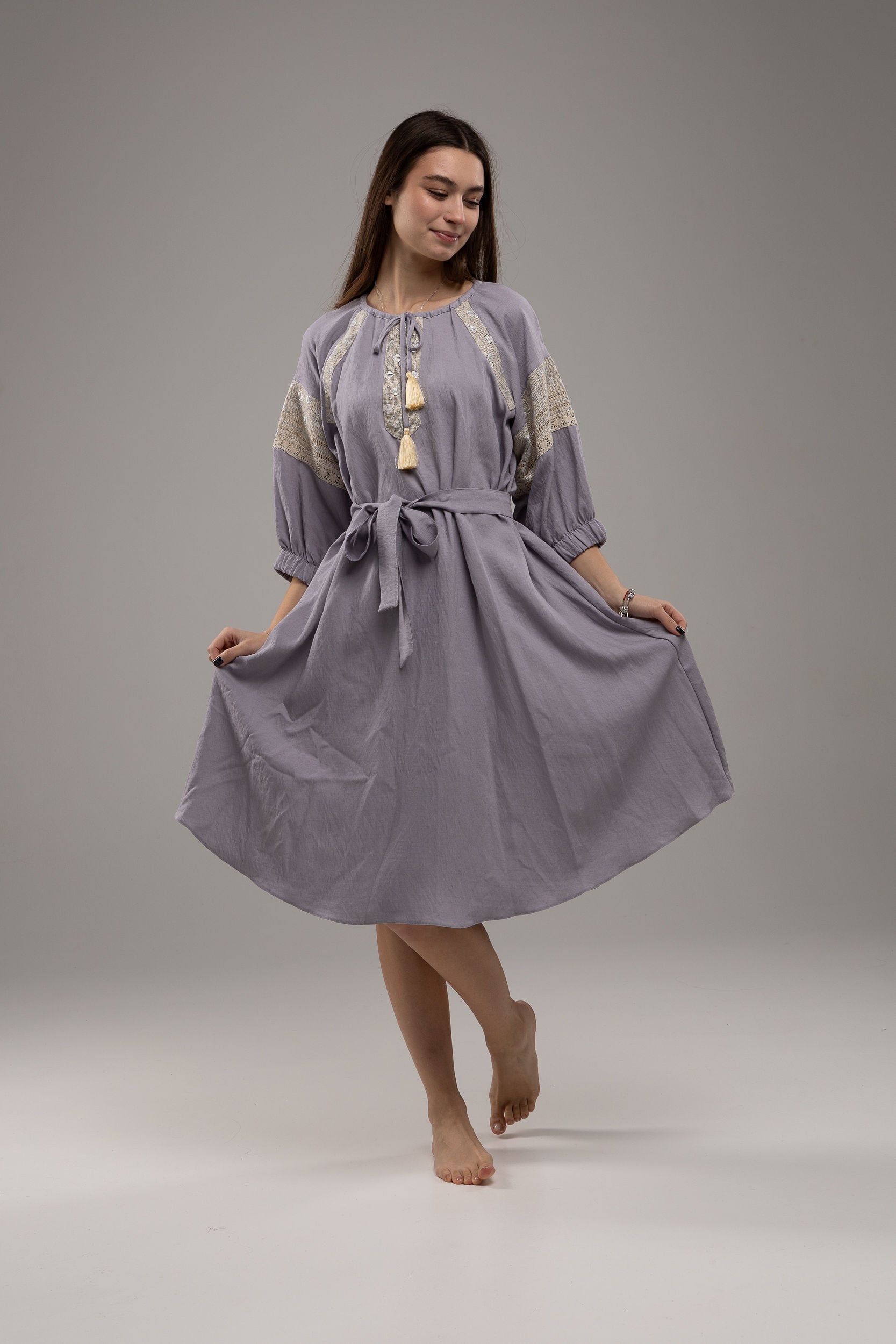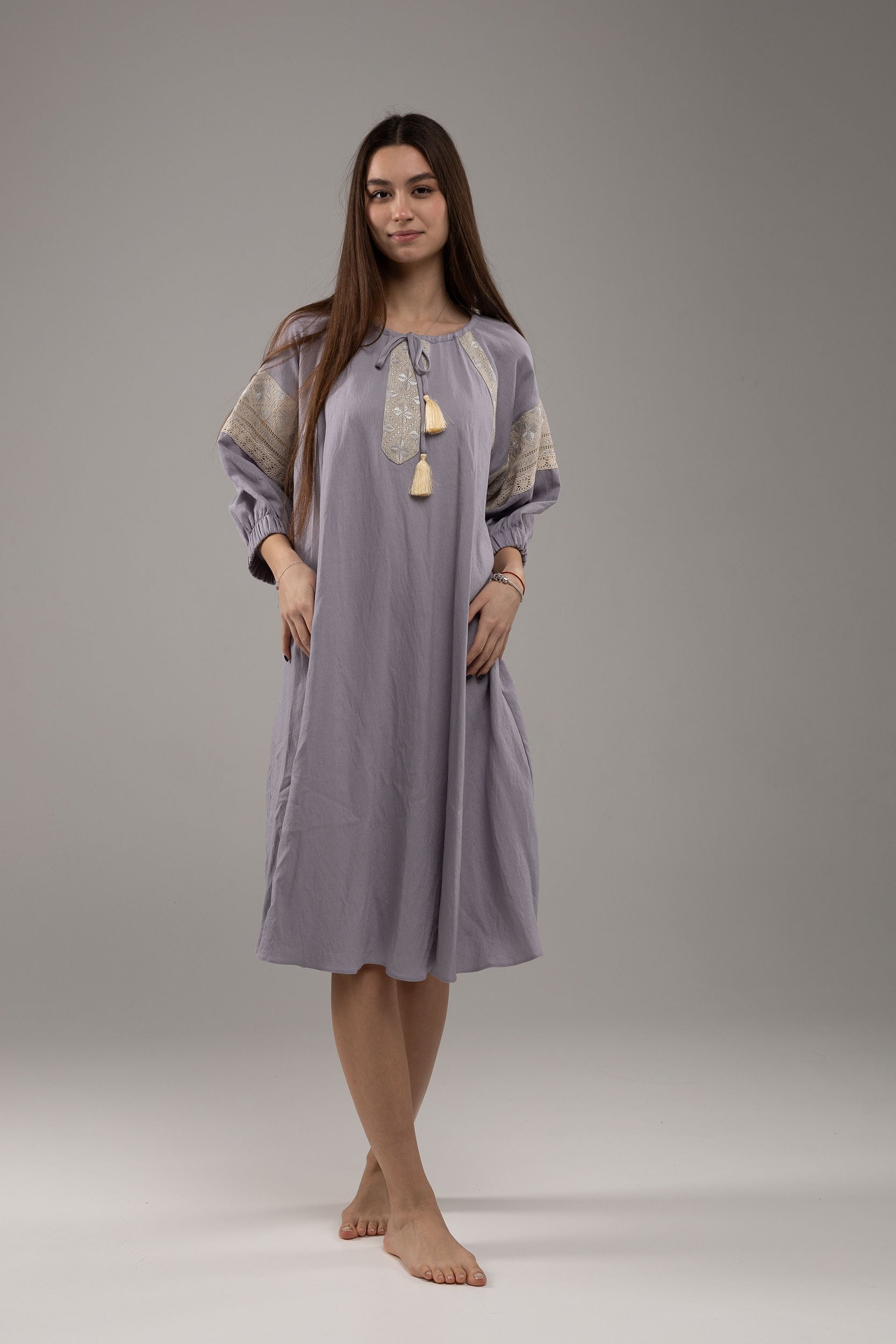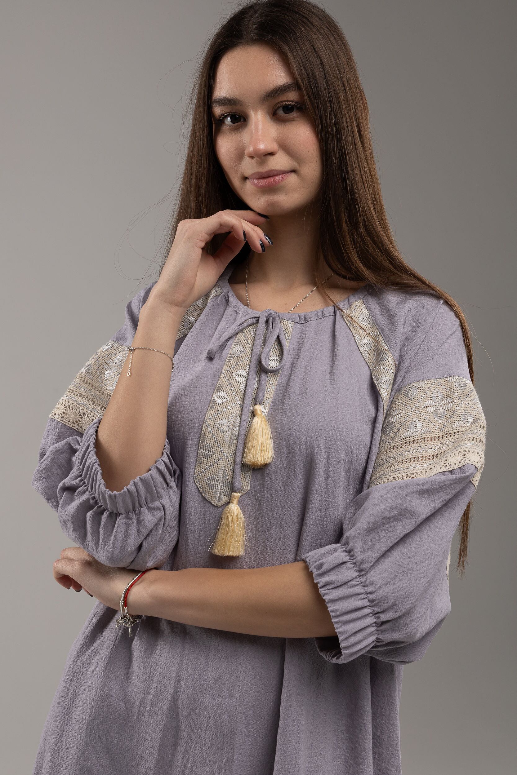 この作品は、ウクライナの伝統と美しさを象徴するヴィシヴァンカの刺繍を採用しています。過度な派手さを追求せず、日本の日常生活に自然に溶け込むデザインとなっております。しかし、それでいて洗練された高級感とカジュアルな雰囲気を両立させ、見る人を魅了する一着となっています。