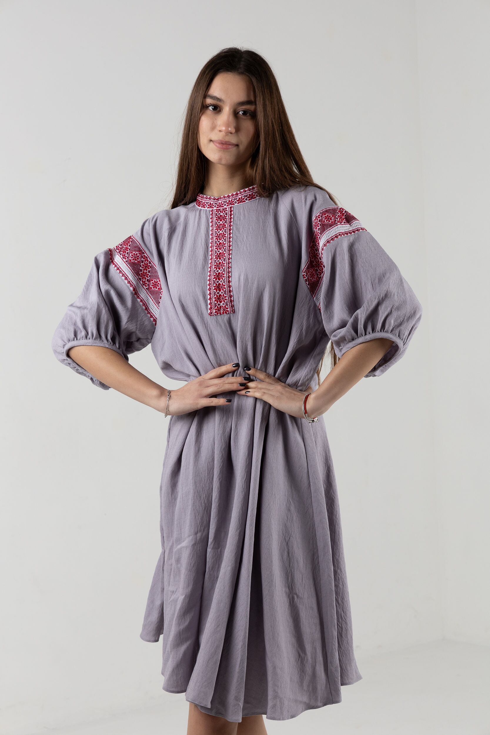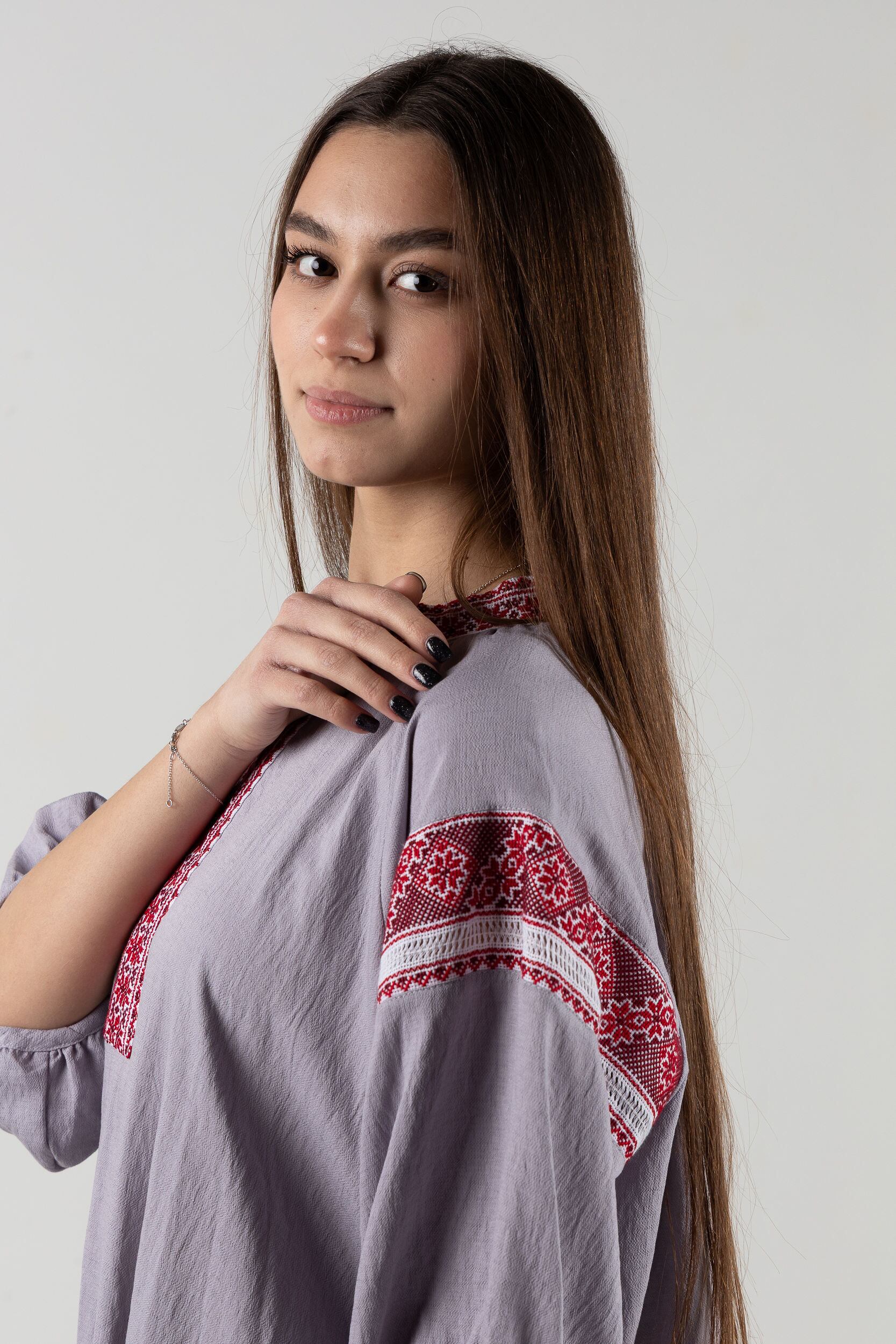 この作品は、ウクライナの伝統と美しさを象徴するヴィシヴァンカの刺繍を採用しています。過度な派手さを追求せず、日本の日常生活に自然に溶け込むデザインとなっております。しかし、それでいて洗練された高級感とカジュアルな雰囲気を両立させ、見る人を魅了する一着となっています。