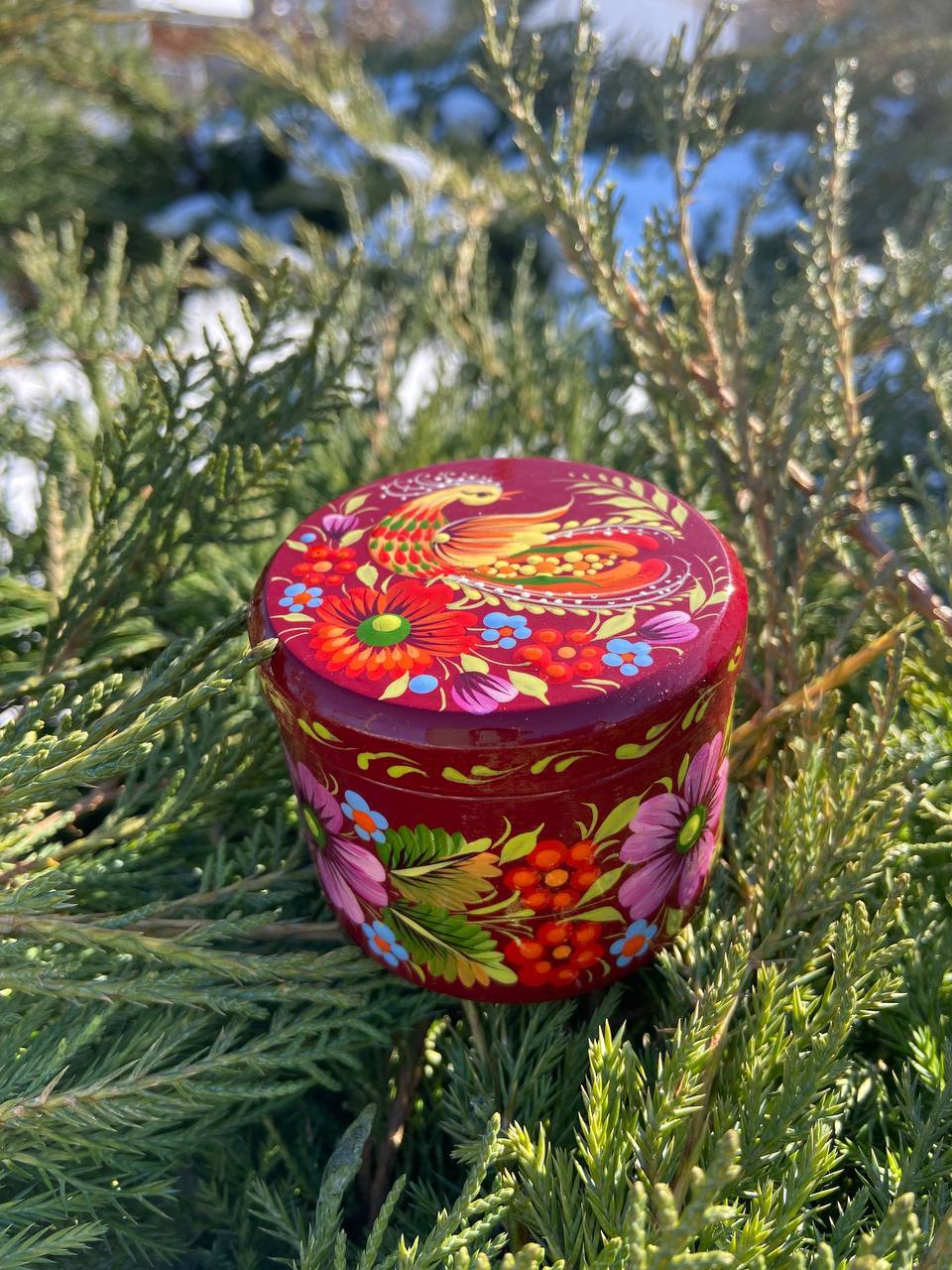 ペトリキウカ塗り 木製小物入れ・ジュエリーボックス(ティモシェンコ作)ウクライナ製