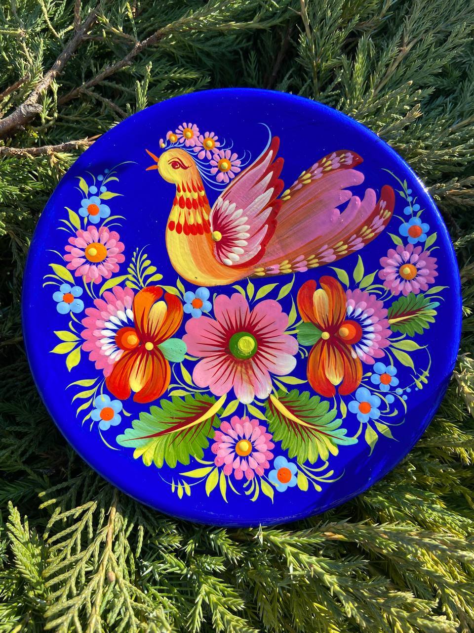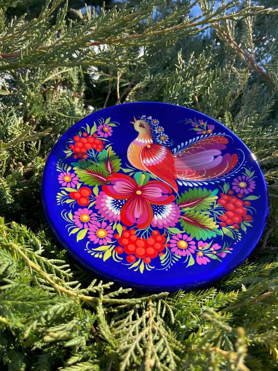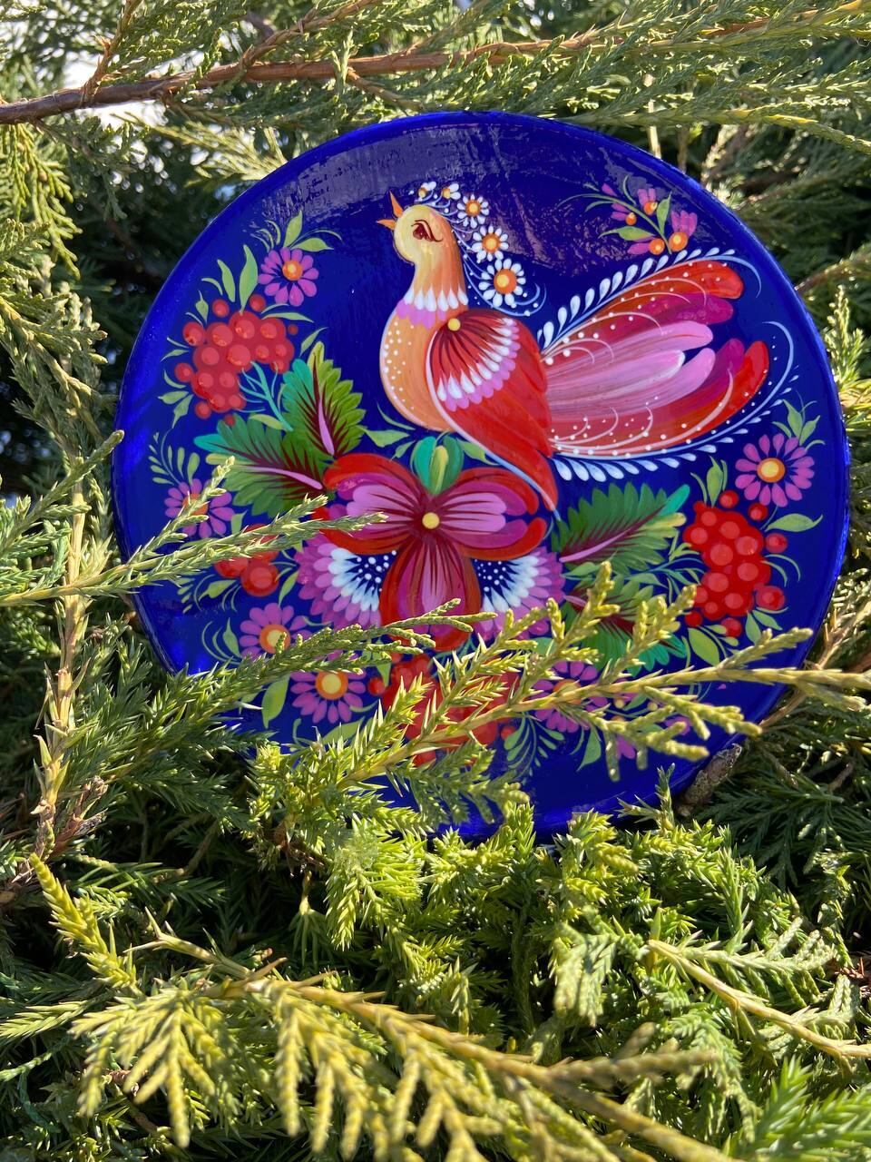 ペトリキフカ・プレートは、ウクライナの伝統的な芸術、ペトリキフカ塗りの精粋を表現する逸品です。この芸術は、ドニプロ近郊のペトリキフカ村にて代々受け継がれてきた名家の手によって生み出されています。