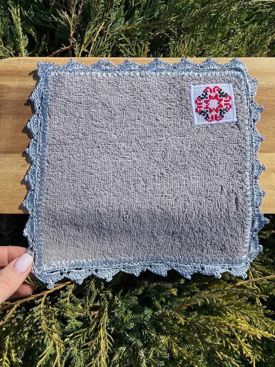 ウクライナ暗号手刺繍入りハンカチー手編みレース(平和)Мир ハンドタオル